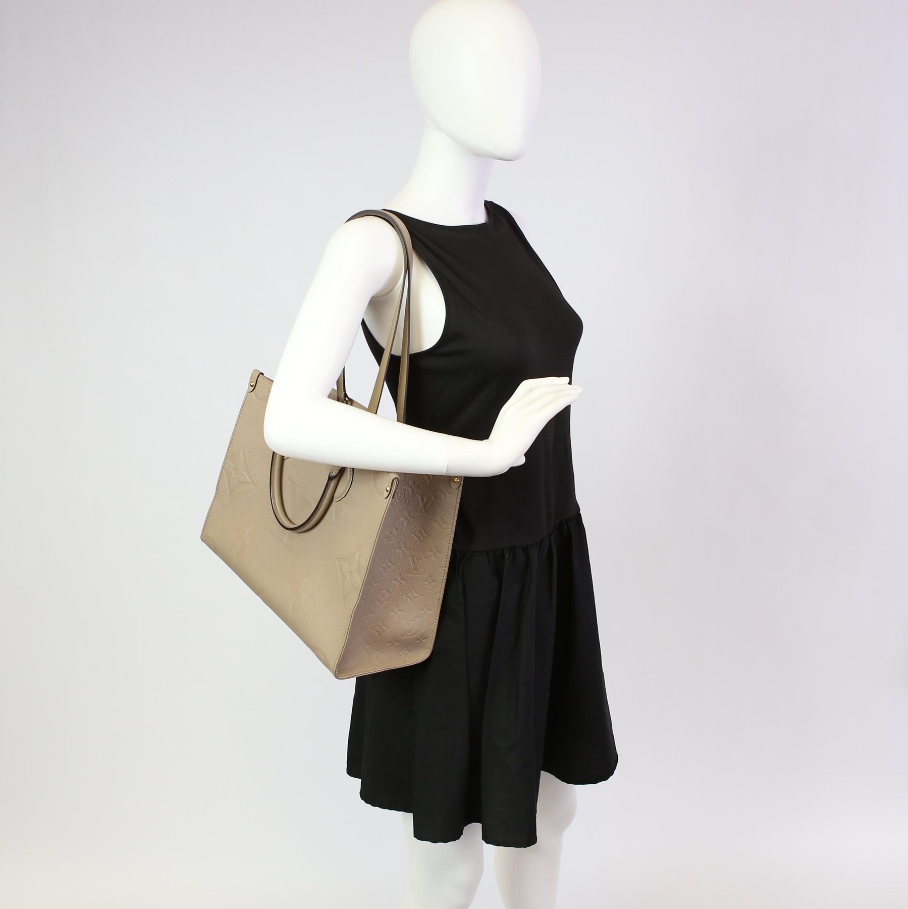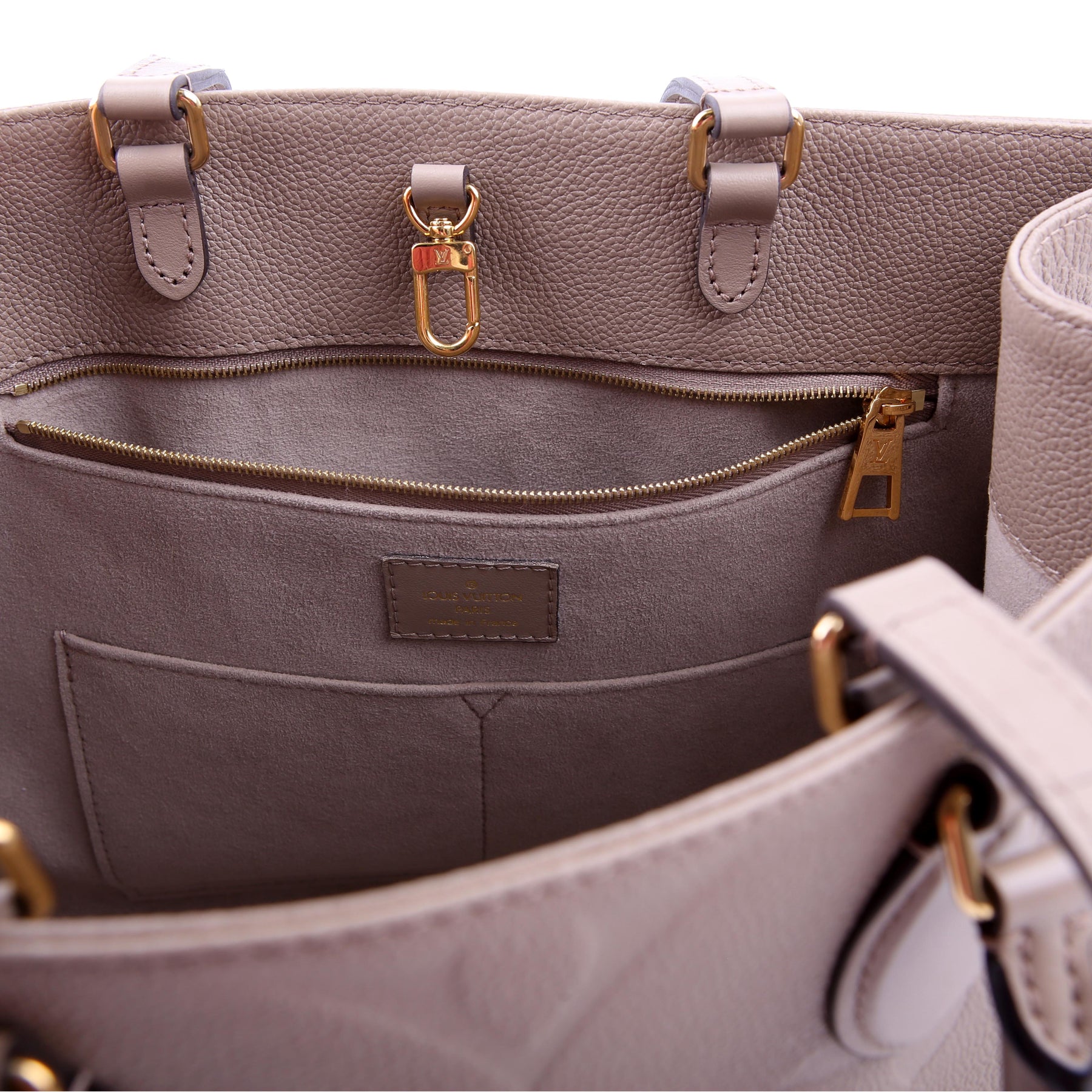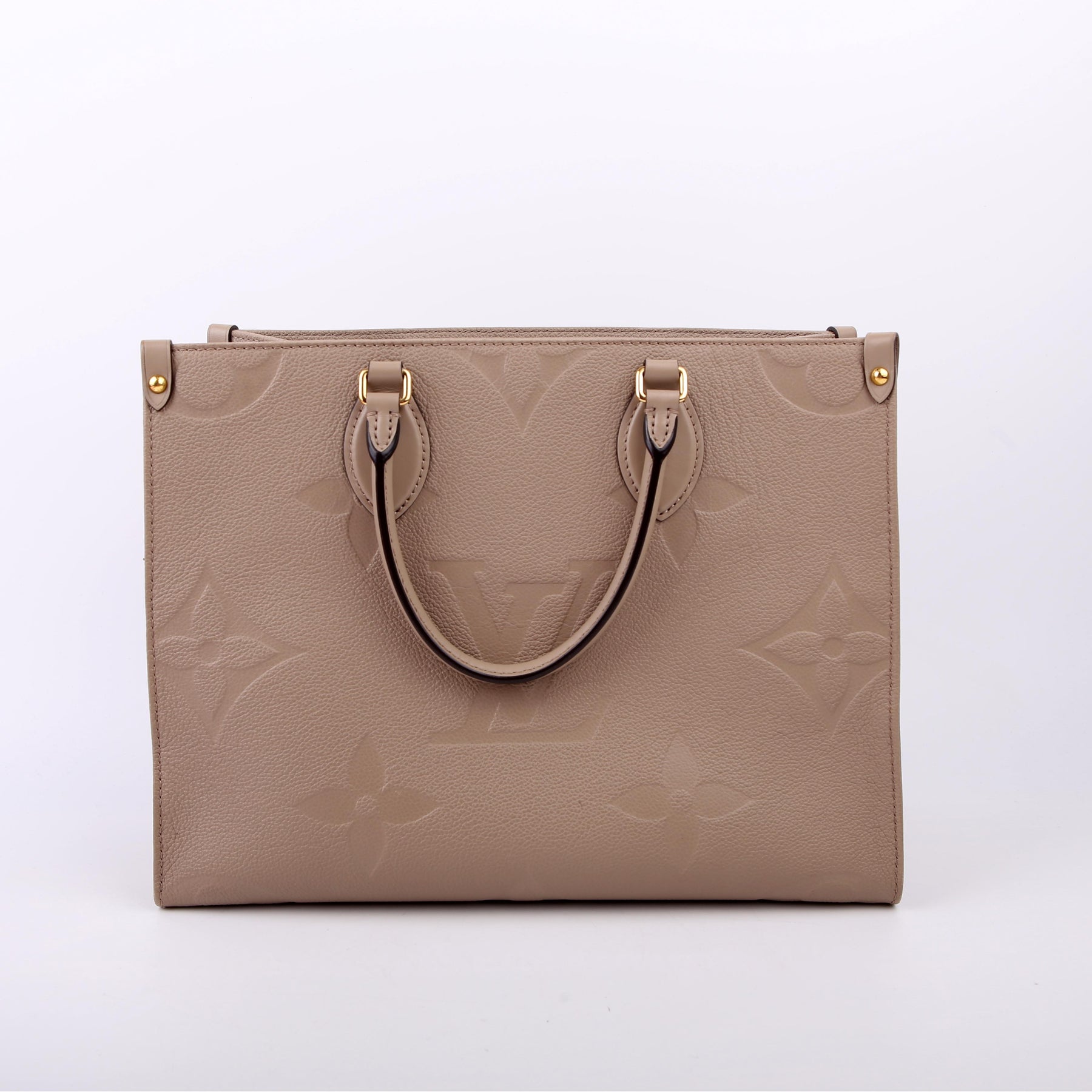 This pre-owned Louis Vuitton ONTHEGO MM is guaranteed 100% authentic. The exterior is in the classic Louis Vuitton Empreinte leather.