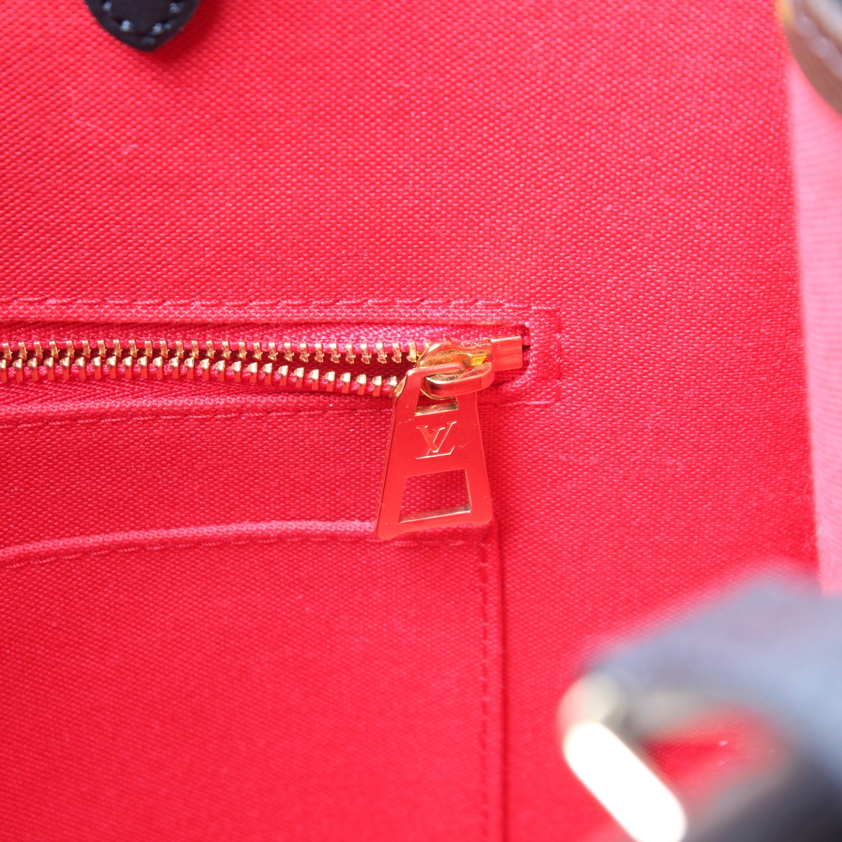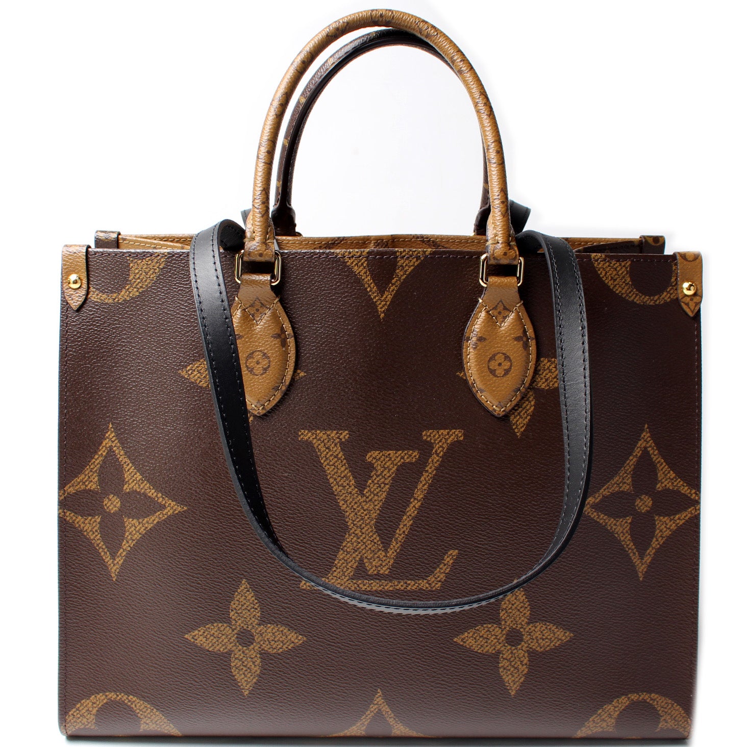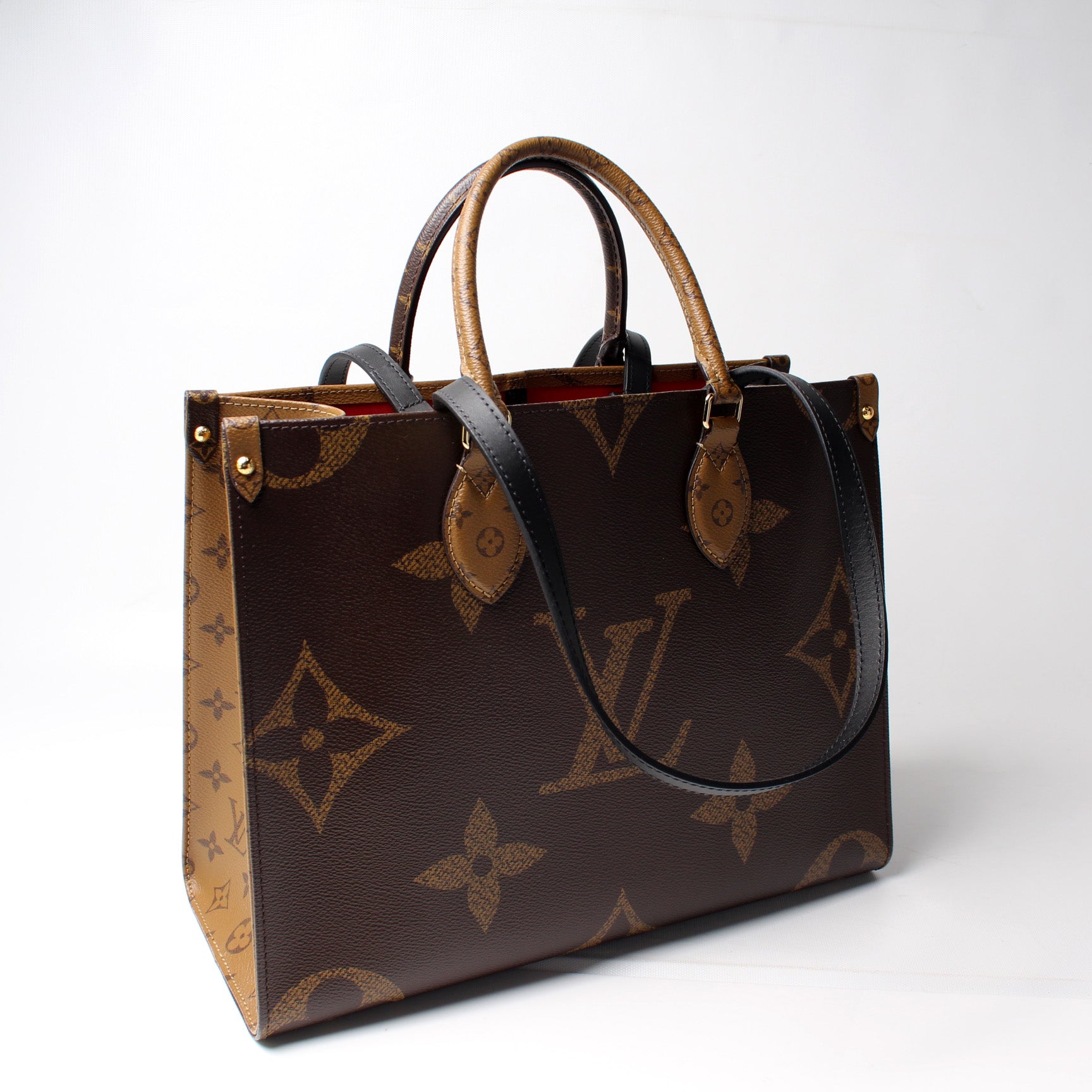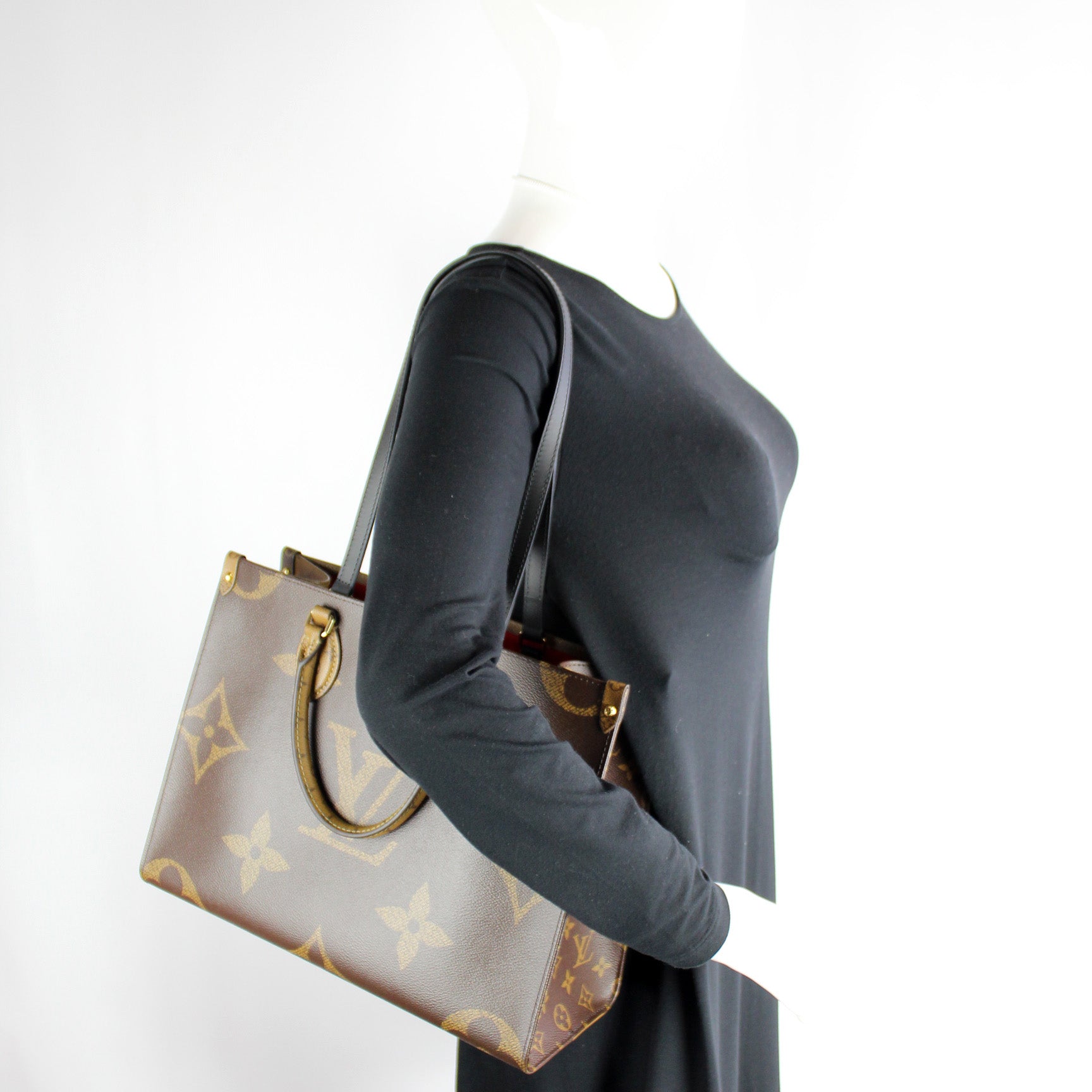 This pre-owned Louis Vuitton ONTHEGO MM is guaranteed 100% authentic. The exterior is in the classic Louis Vuitton Giant Monogram coated canvas.