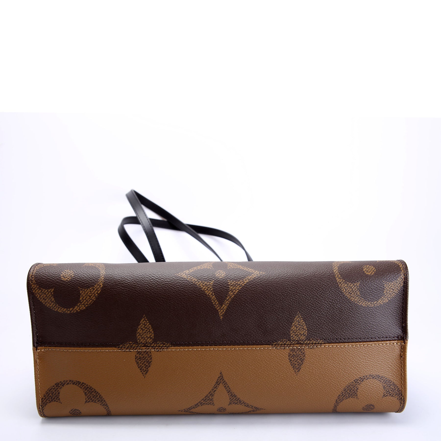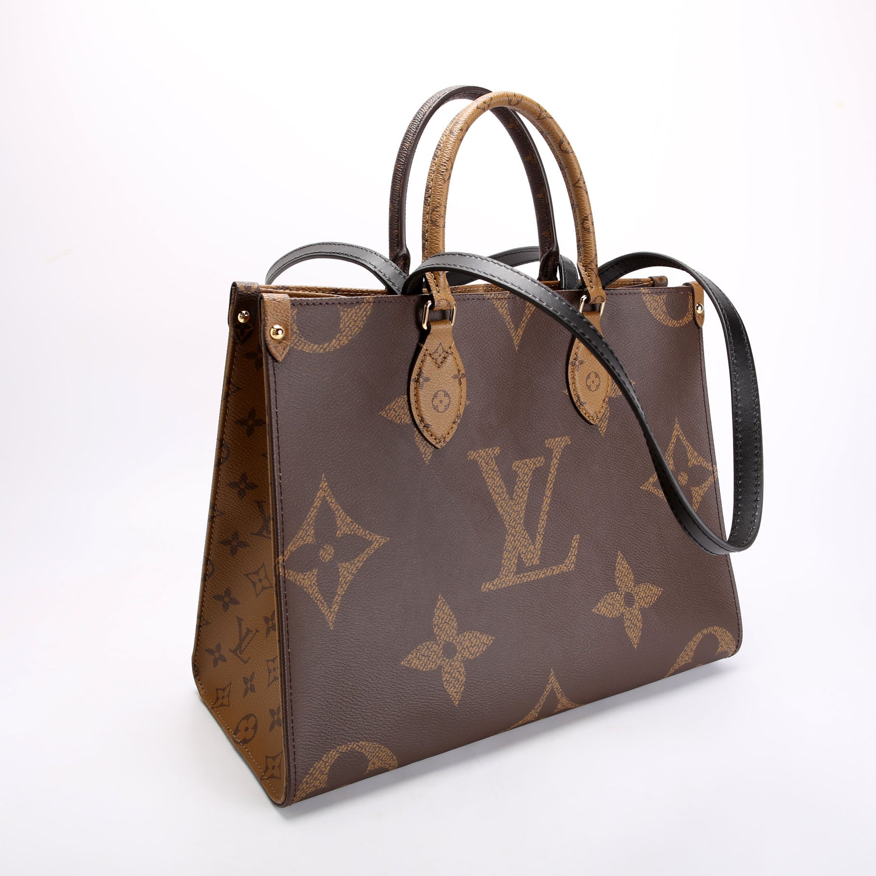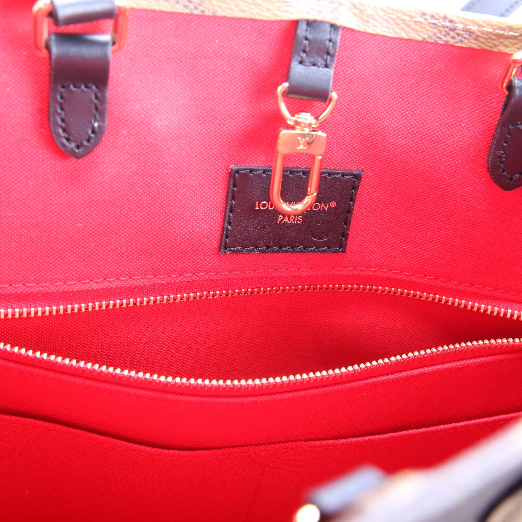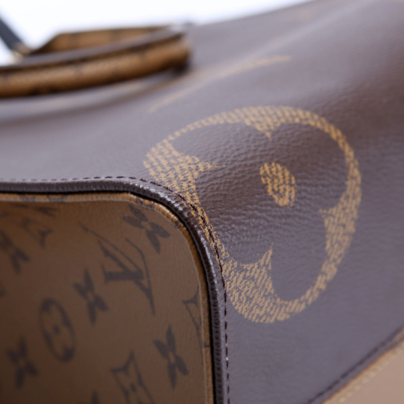 This pre-owned Louis Vuitton ONTHEGO MM is guaranteed 100% authentic. The exterior is in the classic Reversed Monogram coated canvas.