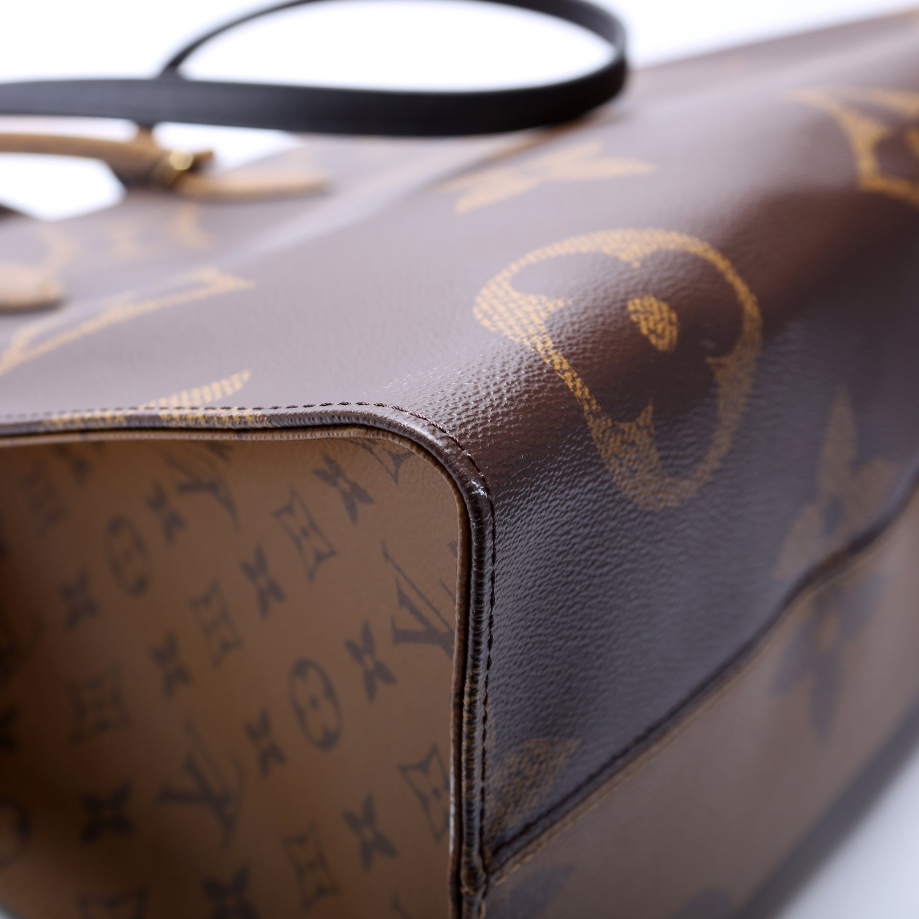 This pre-owned Louis Vuitton ONTHEGO GM is guaranteed 100% authentic. The exterior is in the classic Louis Vuitton Reverse Monogram coated canvas.