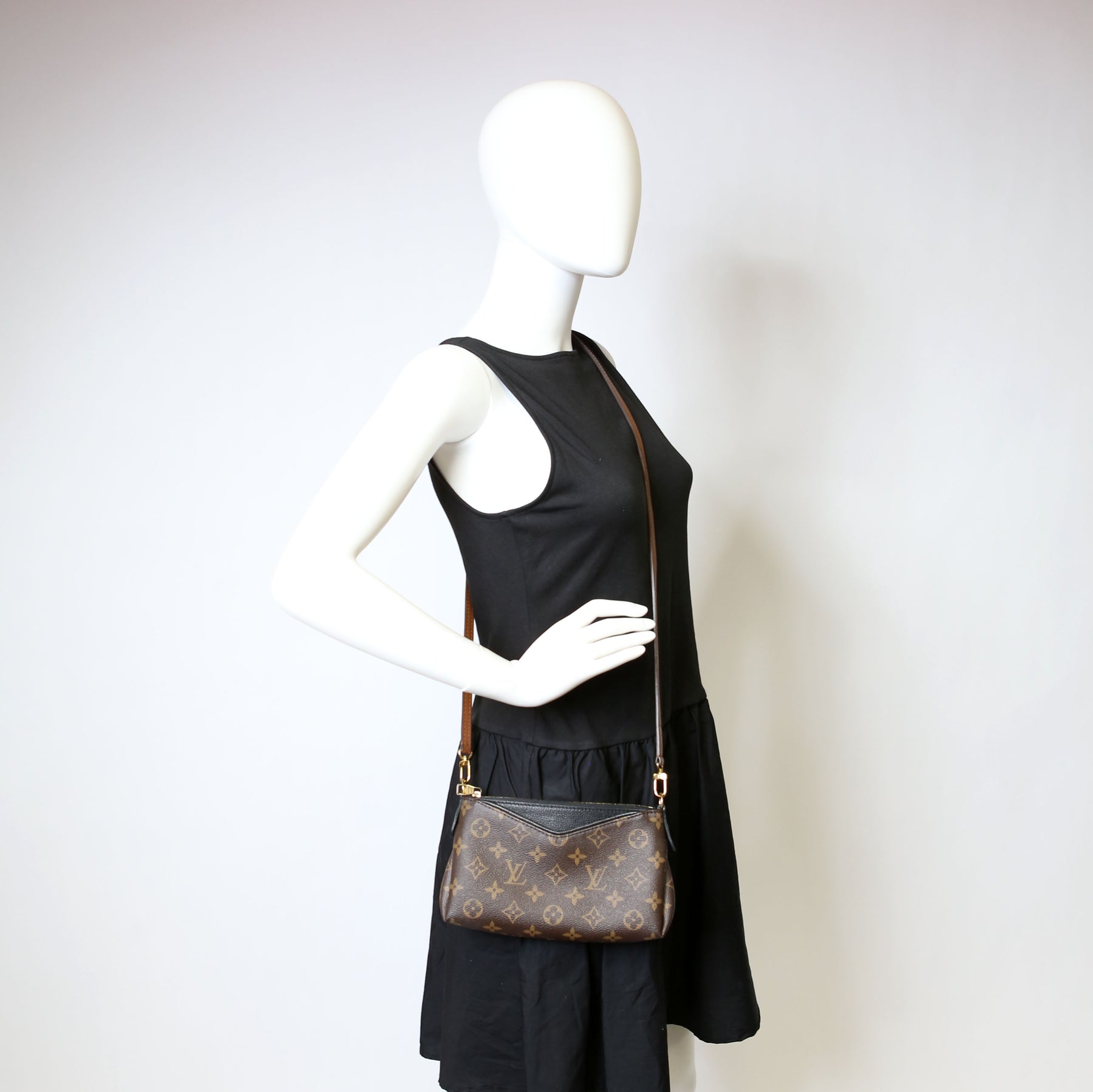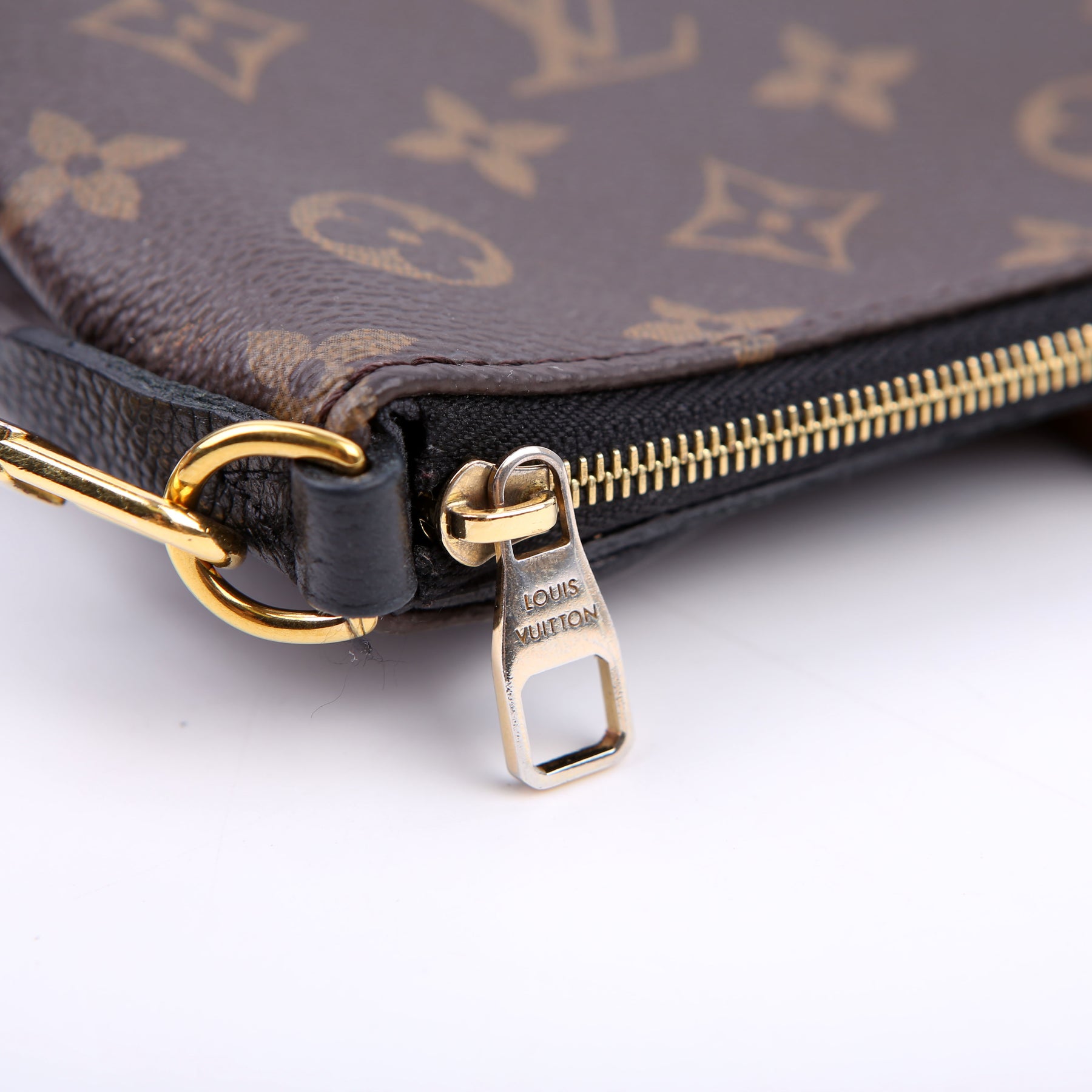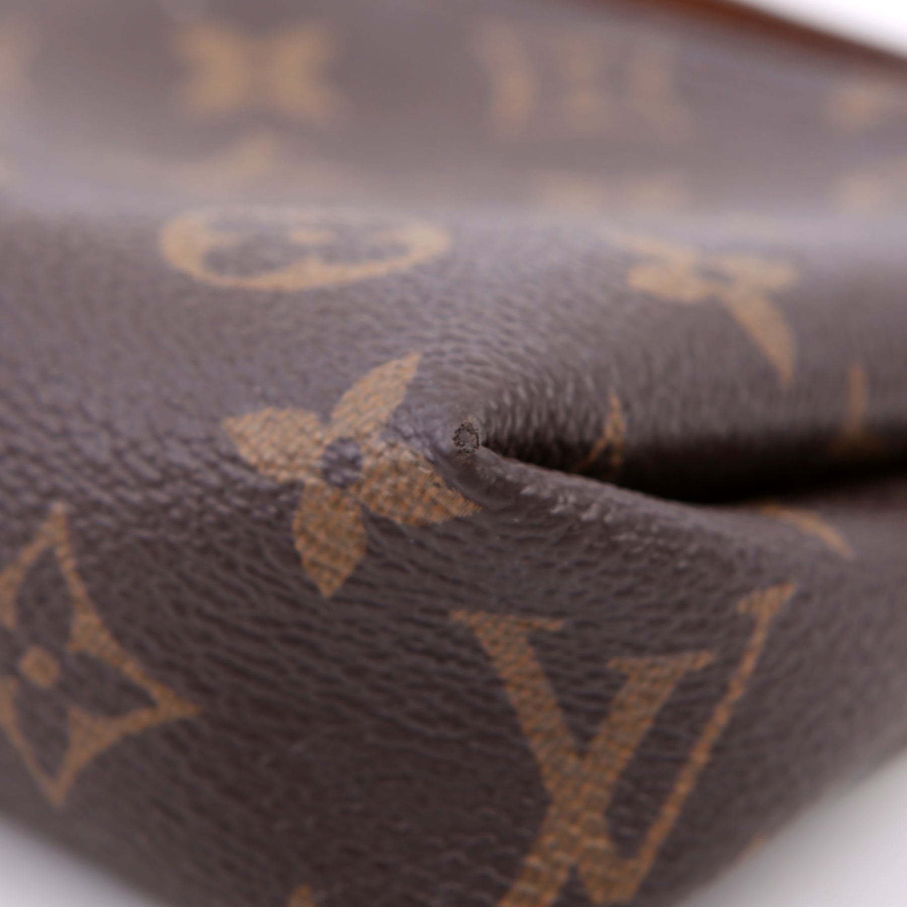 This pre-owned Louis Vuitton Pallas BB Monogram is guaranteed 100% authentic. The exterior is in the classic Louis Vuitton Monogram coated canvas.