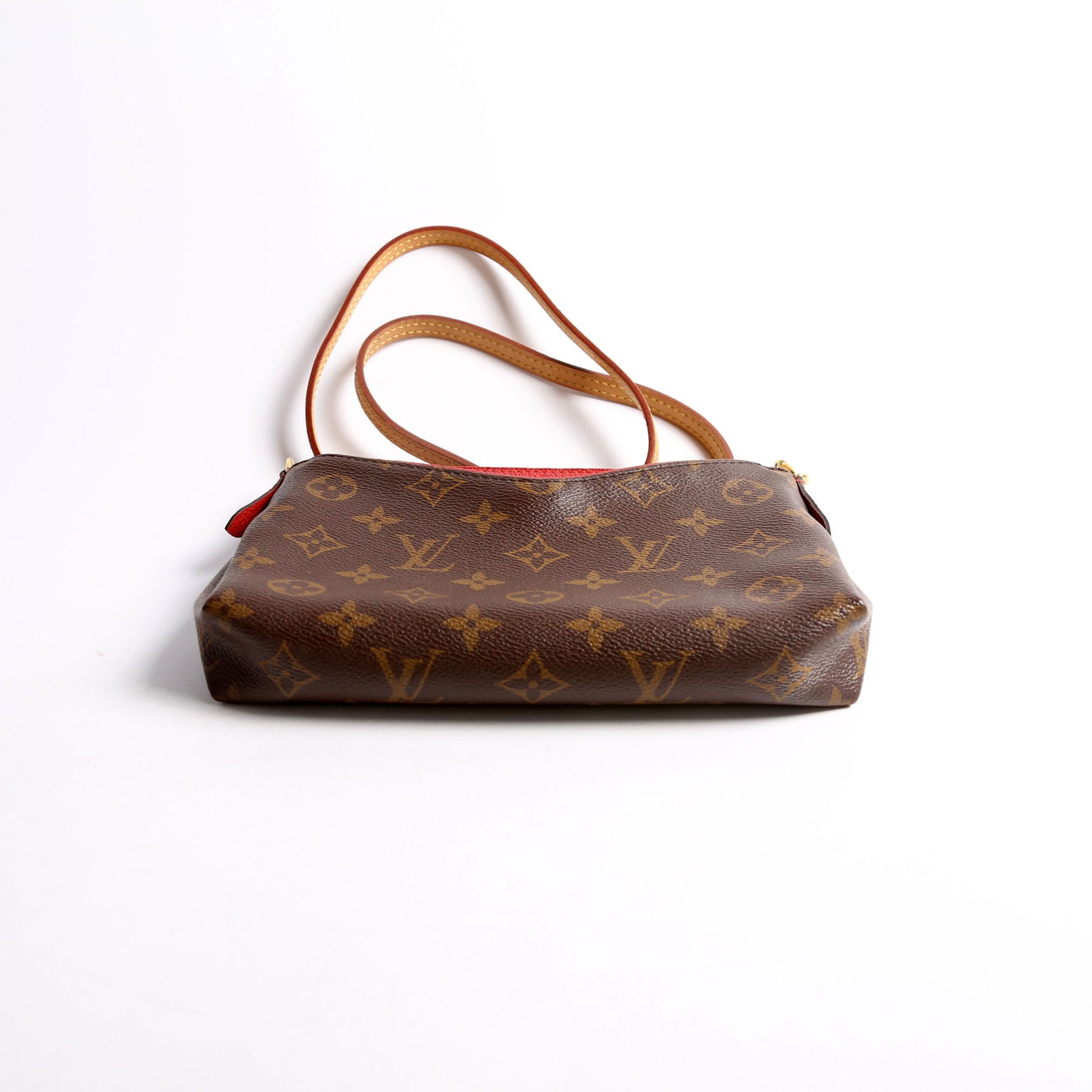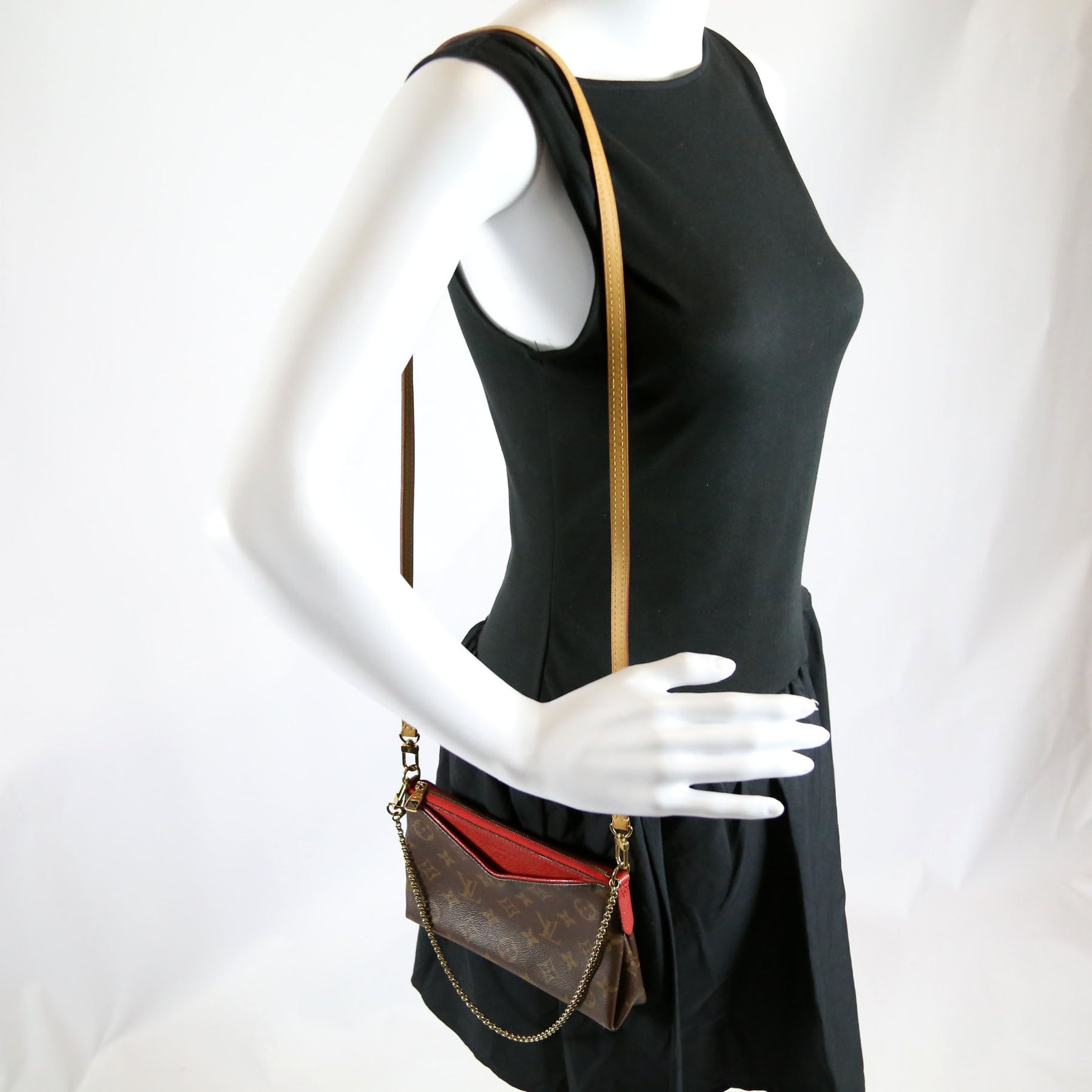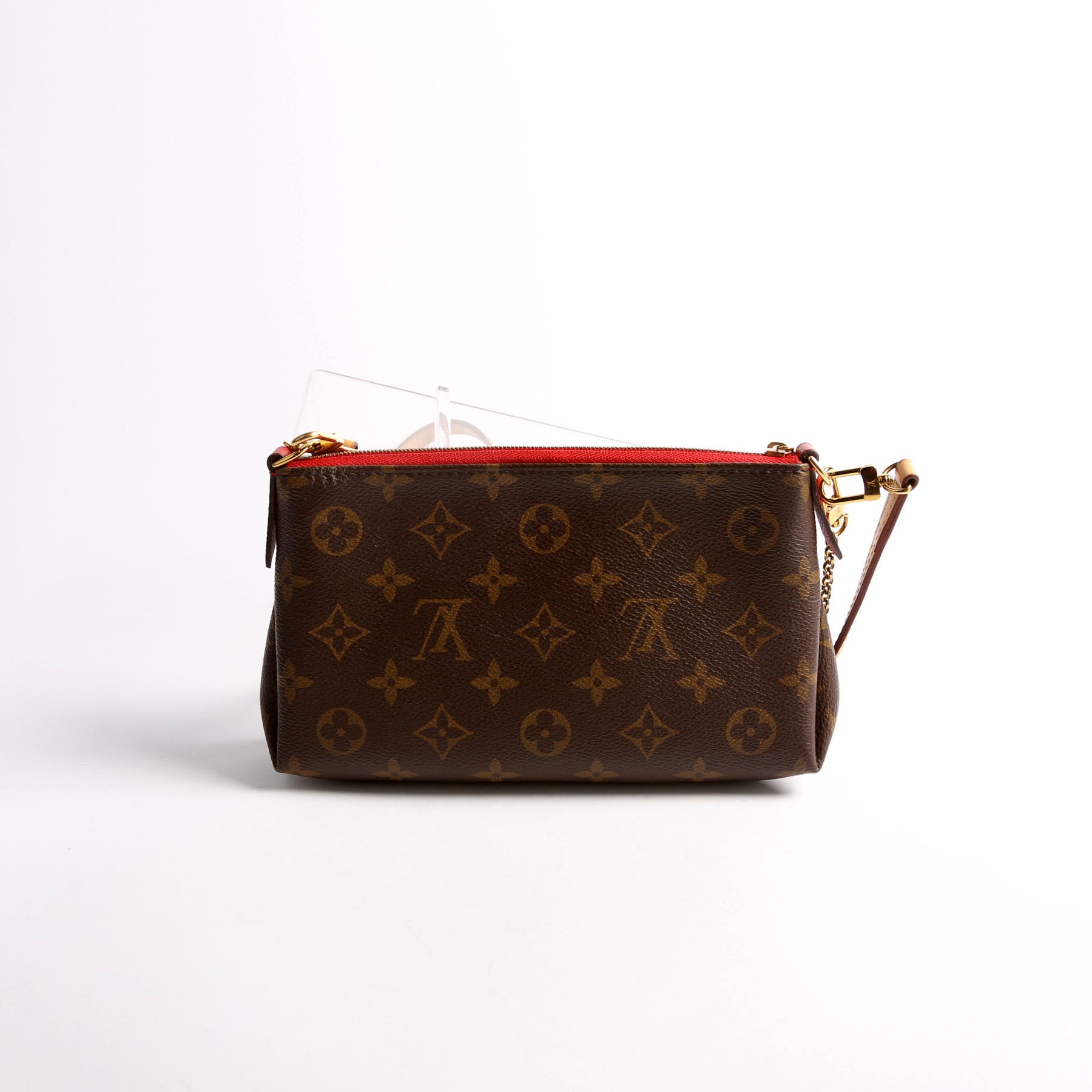 This pre-owned Louis Vuitton Pallas Clutch is guaranteed 100% authentic. The exterior is in the classic Monogram coated canvas.