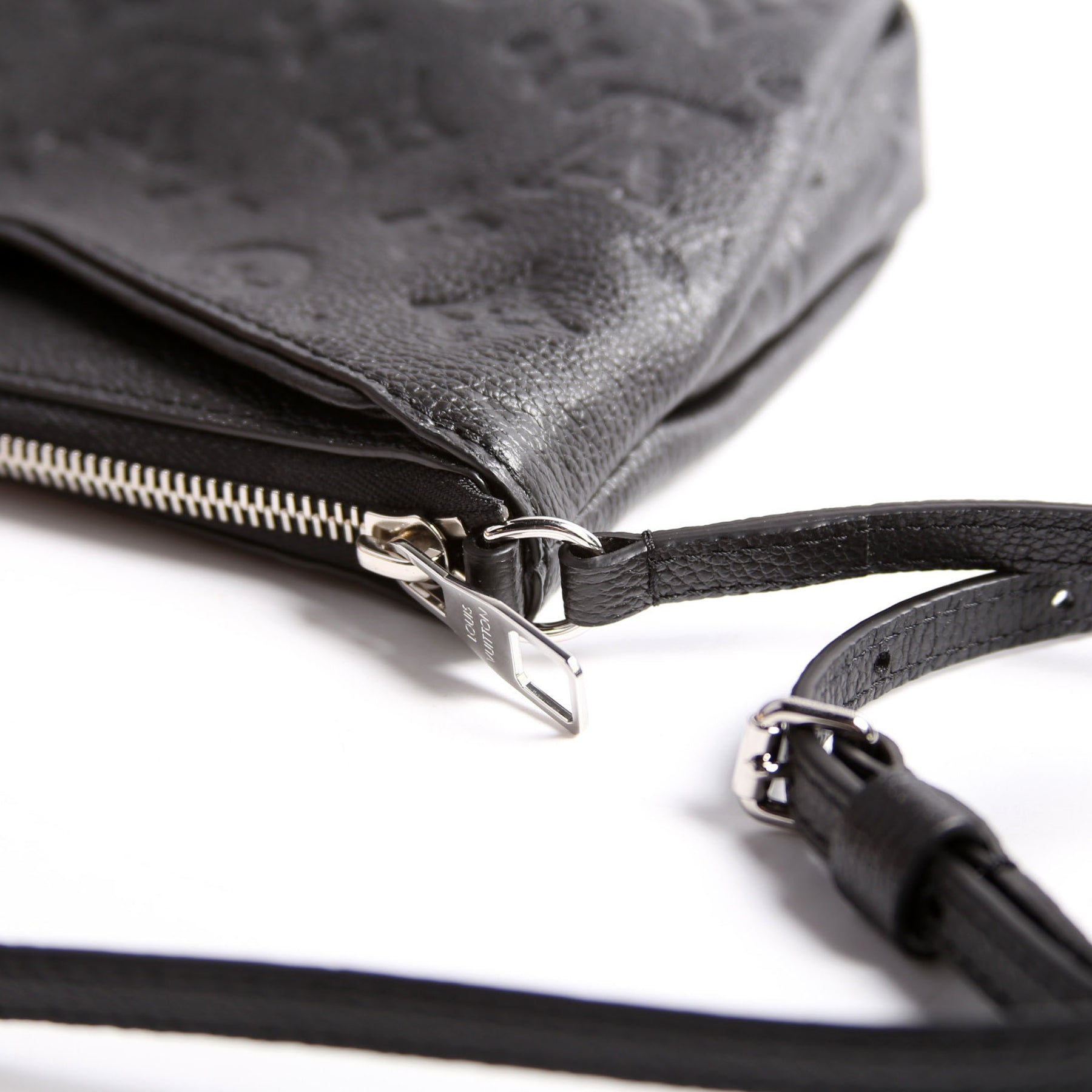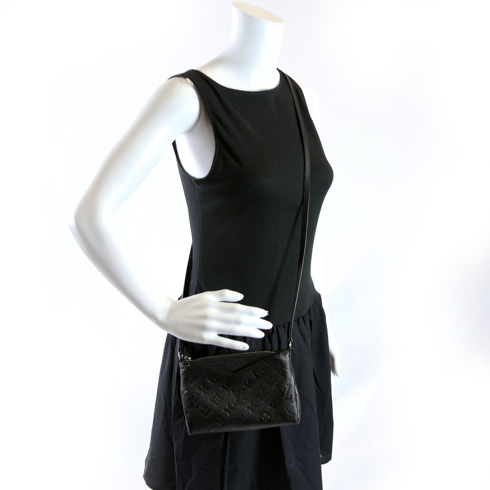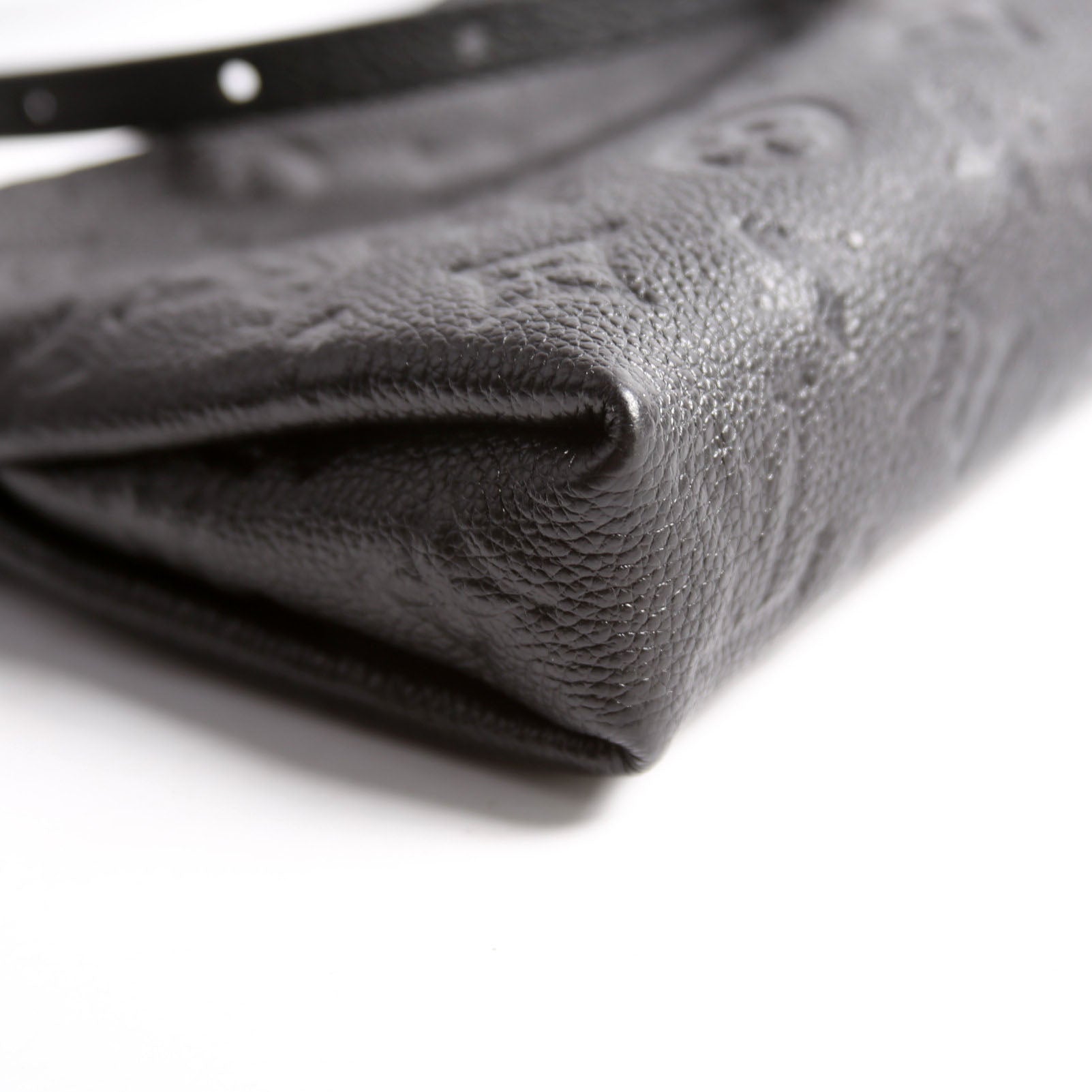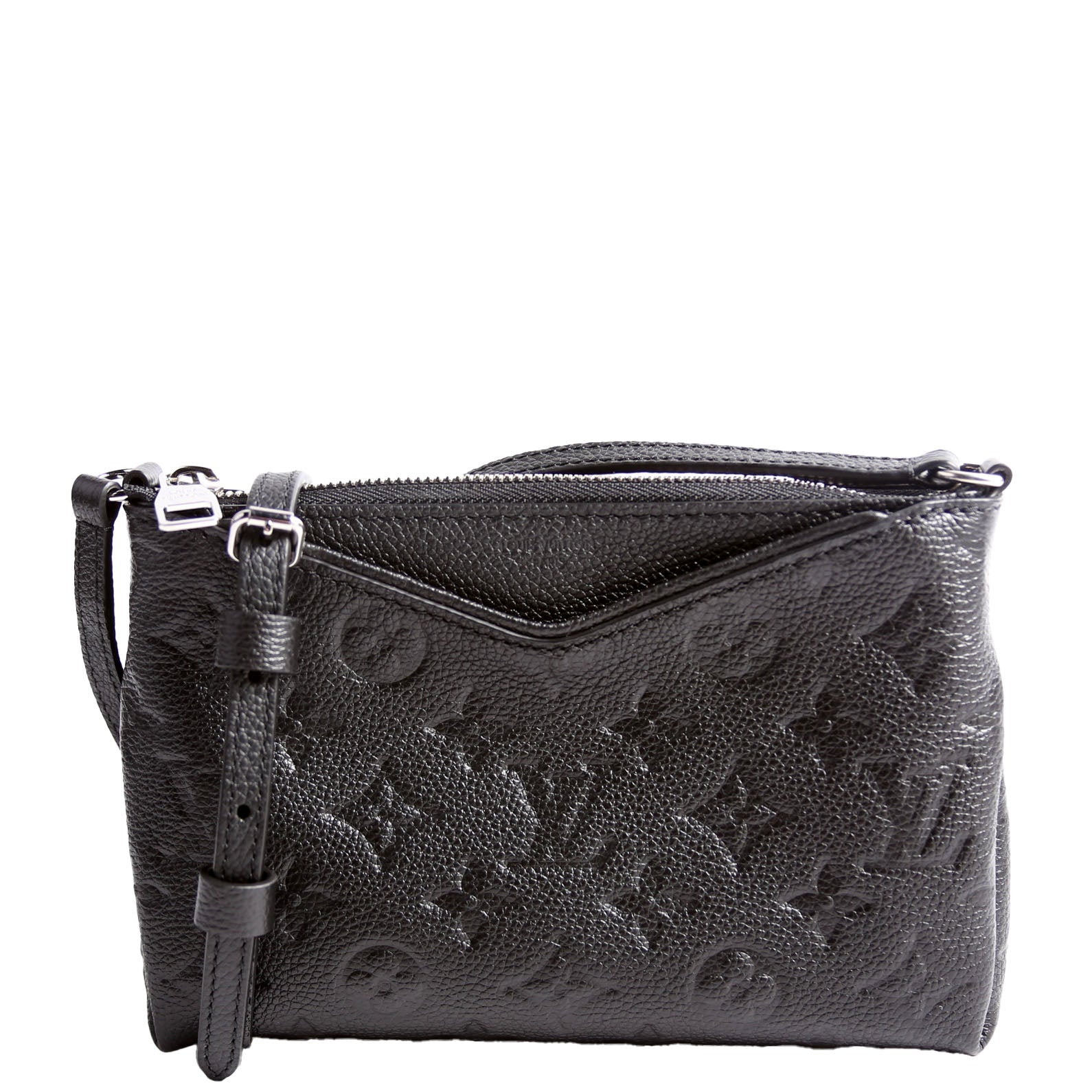 This pre-owned Louis Vuitton Pallas Clutch Uniformes is guaranteed 100% authentic. The exterior is in the classic Louis Vuitton Empreinte leather.