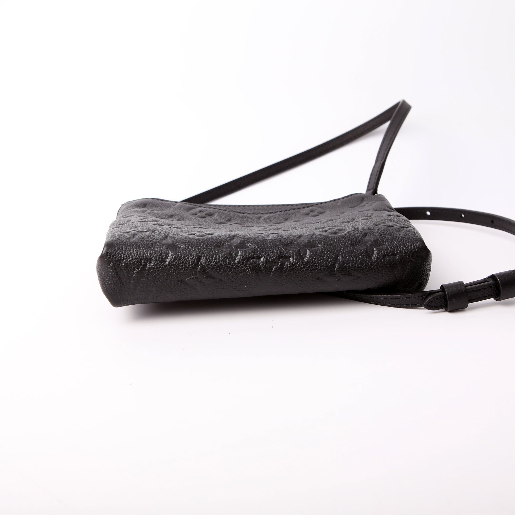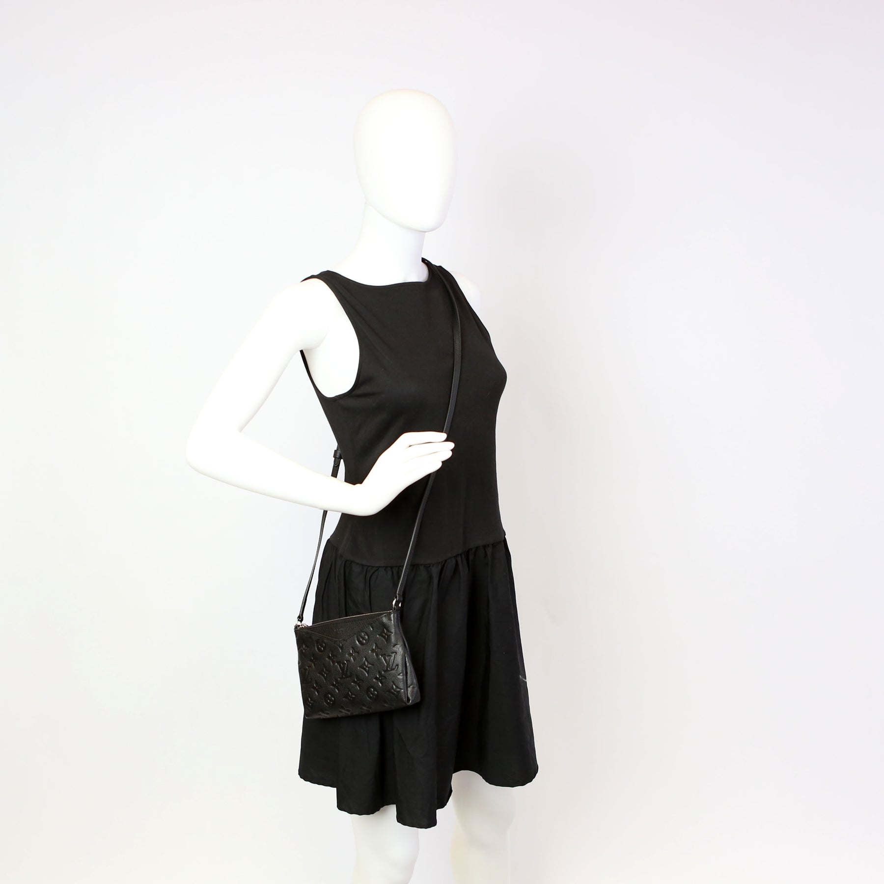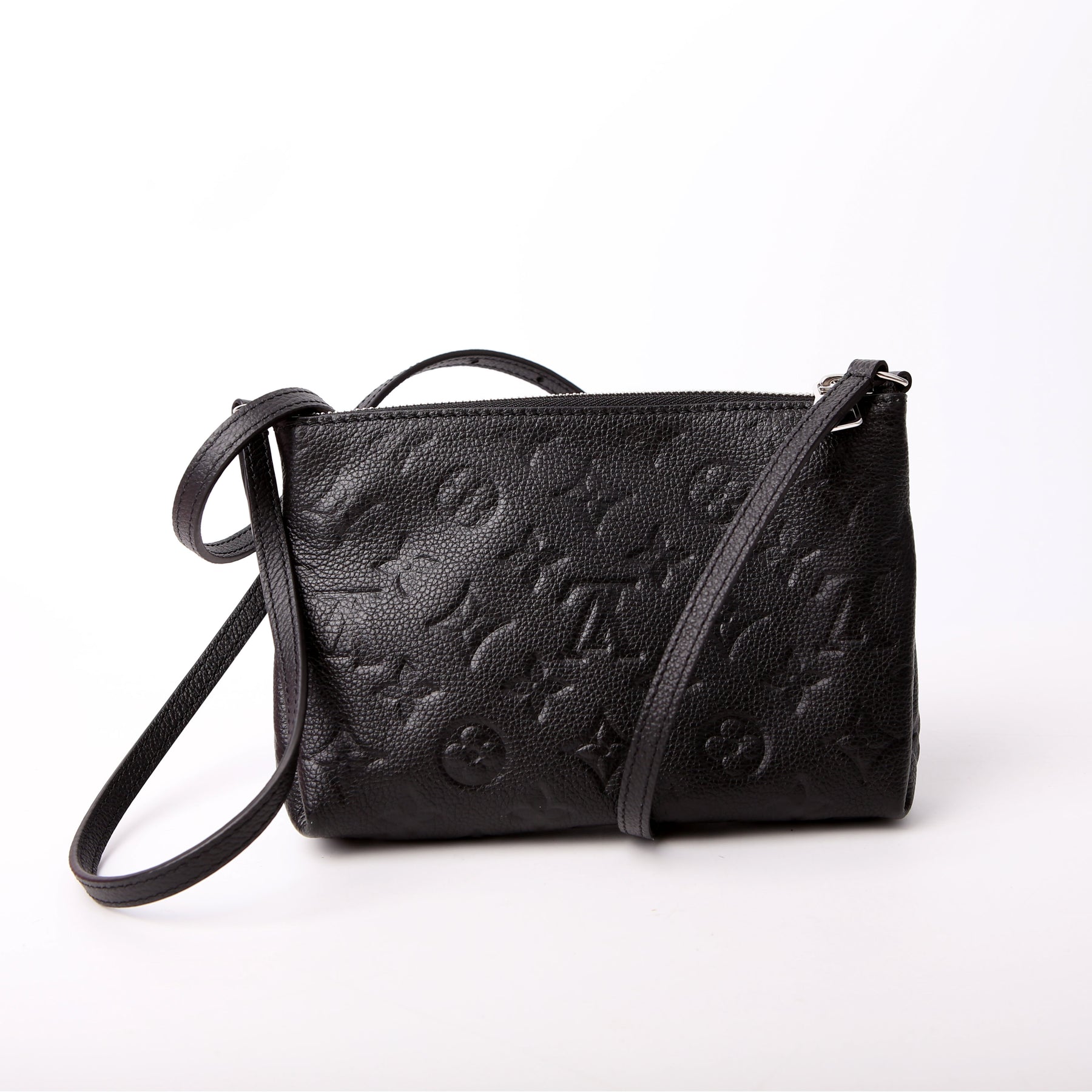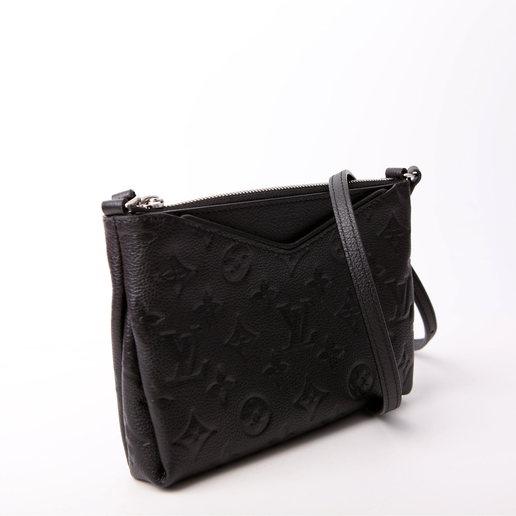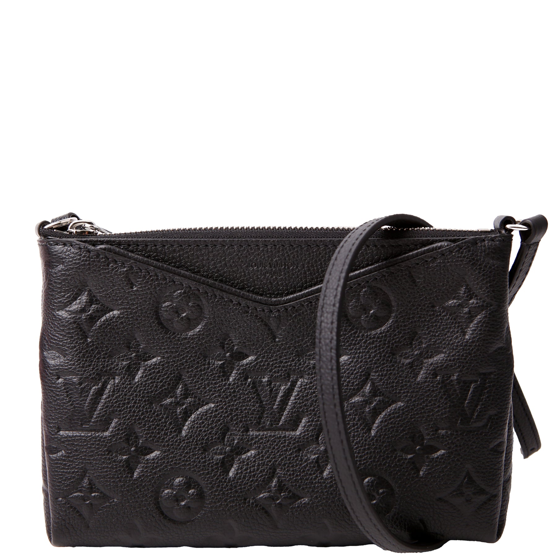 This pre-owned Louis Vuitton Pallas Clutch Uniformes is guaranteed 100% authentic. The exterior is in the classic Louis Vuitton Empreinte leather .