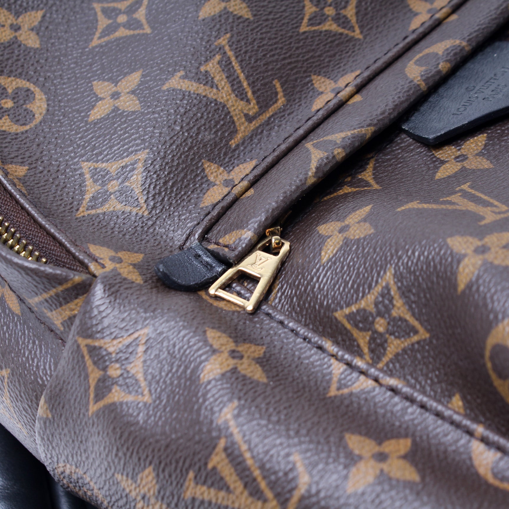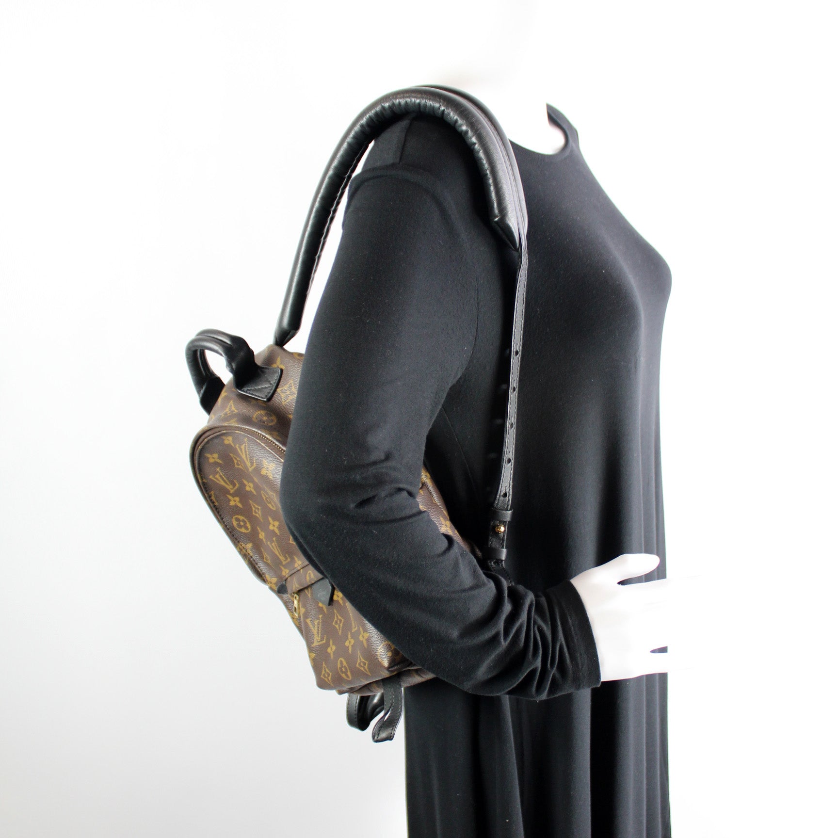 This pre-owned Louis Vuitton Palm Springs Backpack PM is guaranteed 100% authentic. The exterior is in the classic Monogram coated canvas.