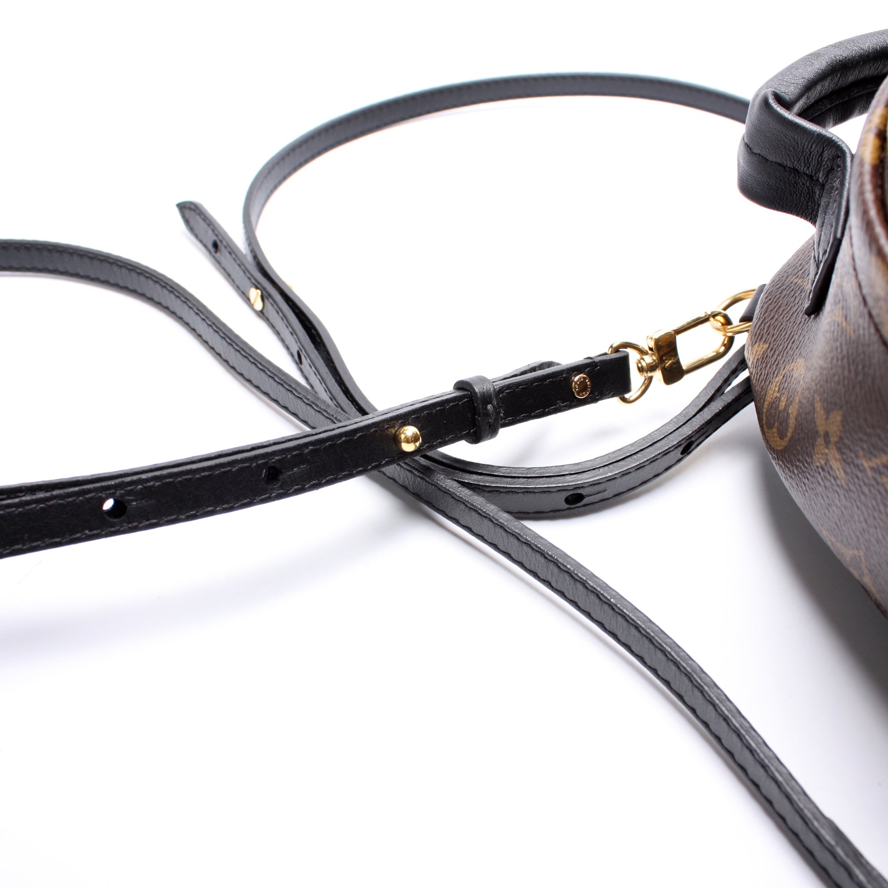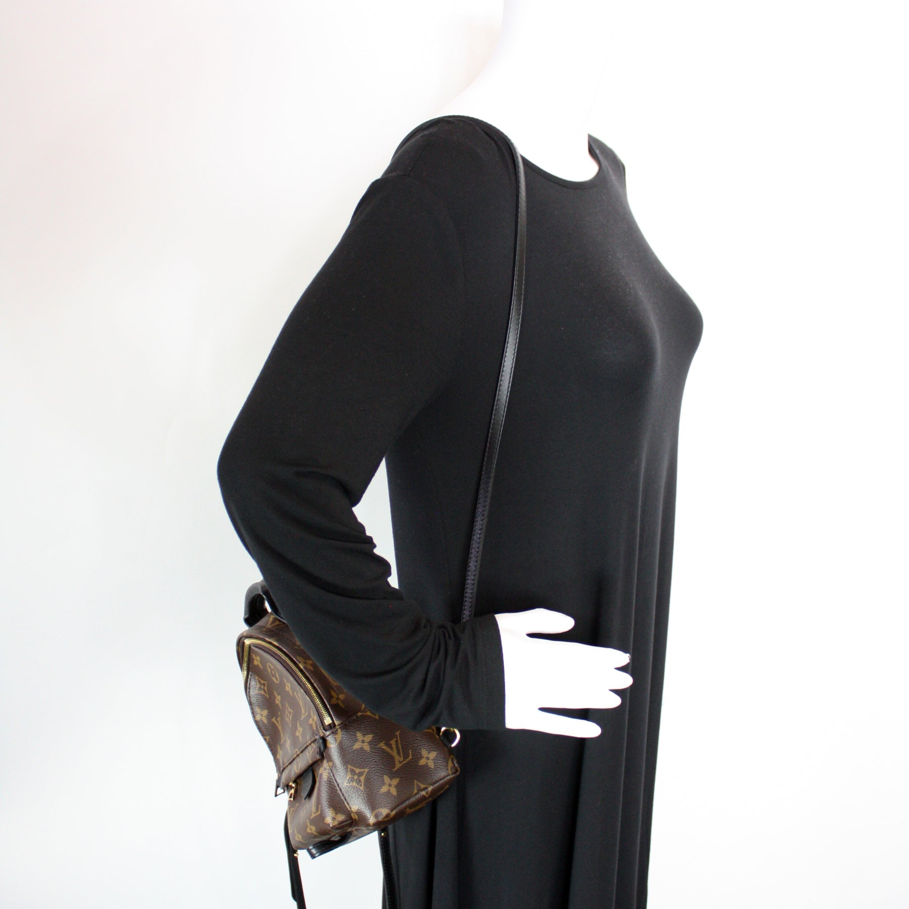 This pre-owned Louis Vuitton Palm Springs Mini Backpack is guaranteed 100% authentic. The exterior is in the classic Louis Vuitton Monogram coated canvas.