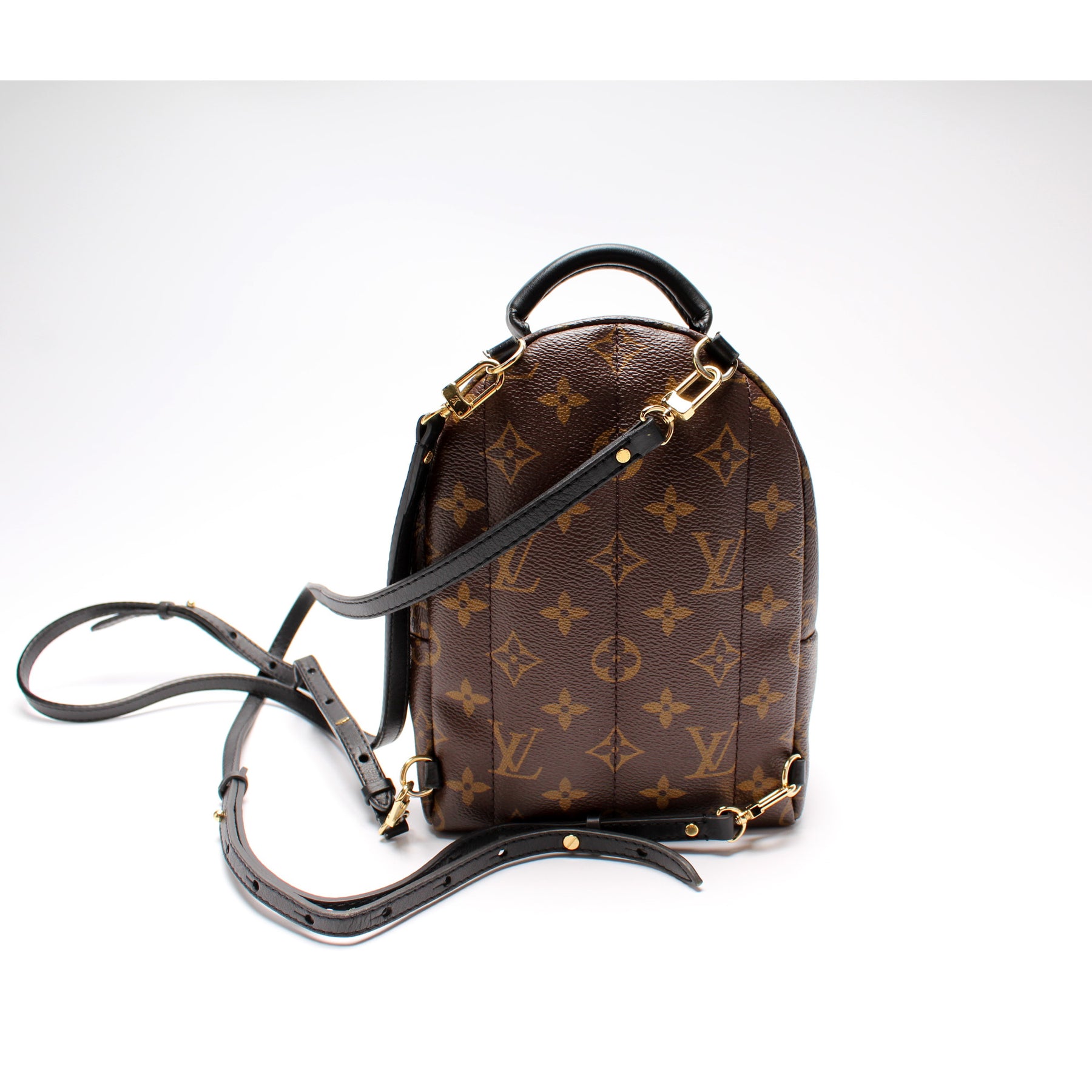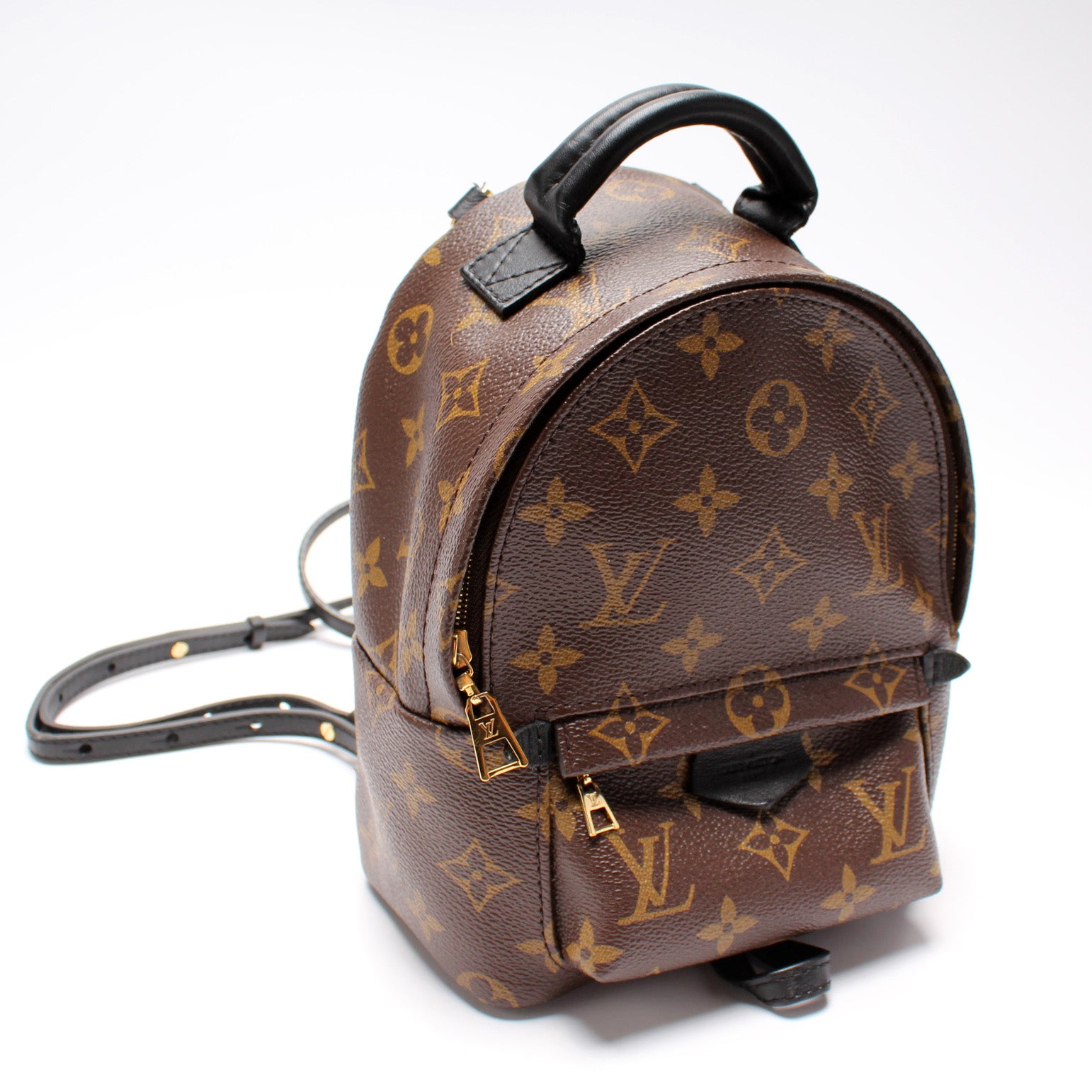 This pre-owned Louis Vuitton Palm Springs Mini Backpack is guaranteed 100% authentic. The exterior is in the classic Louis Vuitton Monogram coated canvas.