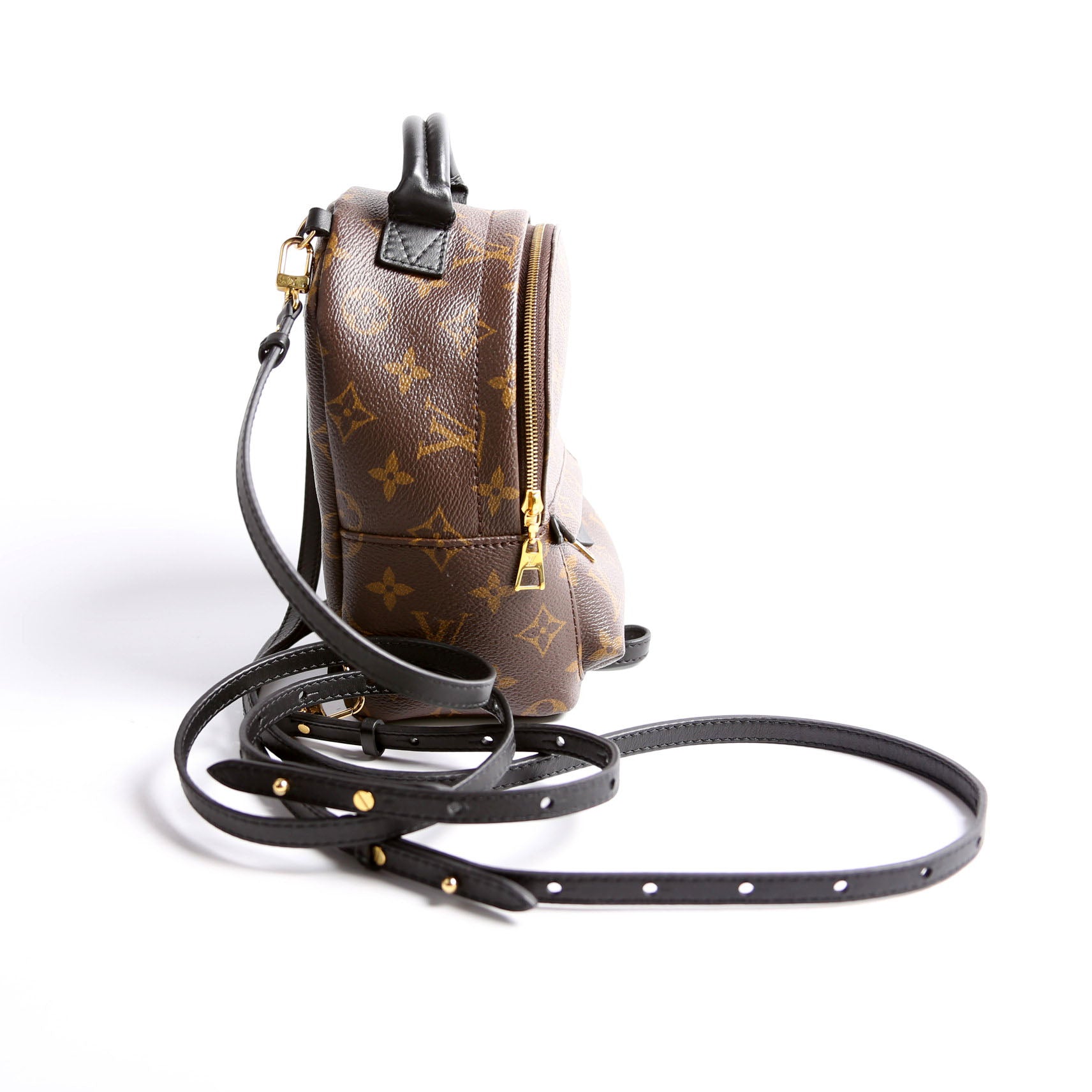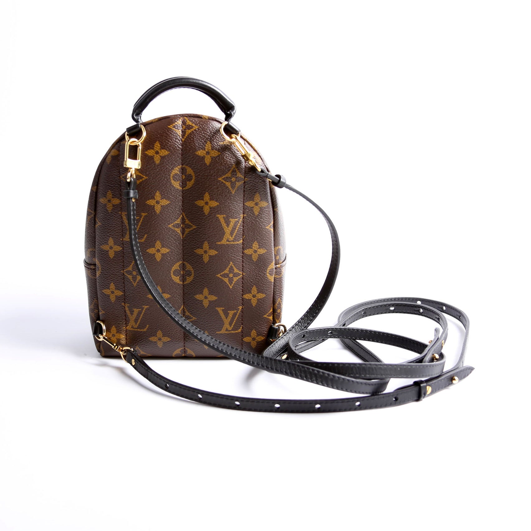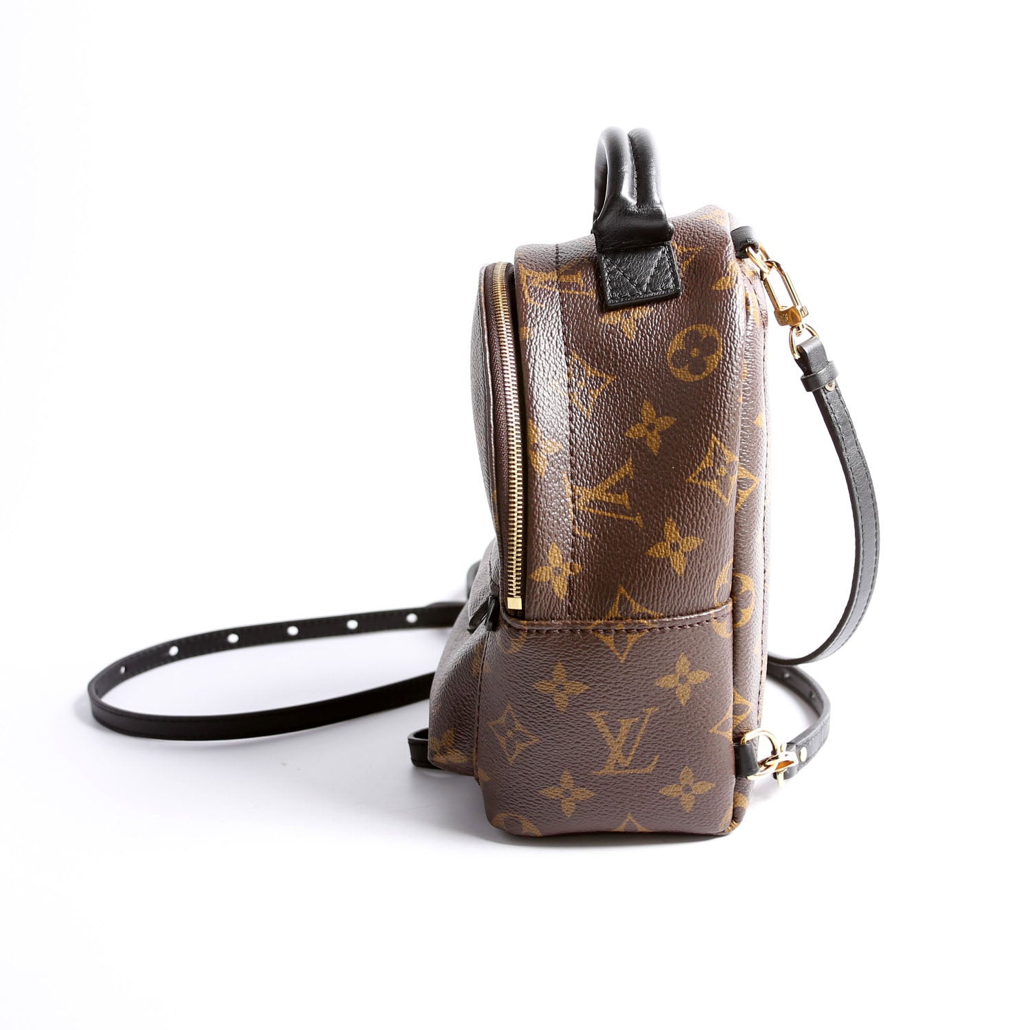 This pre-owned Louis Vuitton Palm Springs Mini is guaranteed 100% authentic. The exterior is in the classic Louis Vuitton Monogram Coated Canvas.