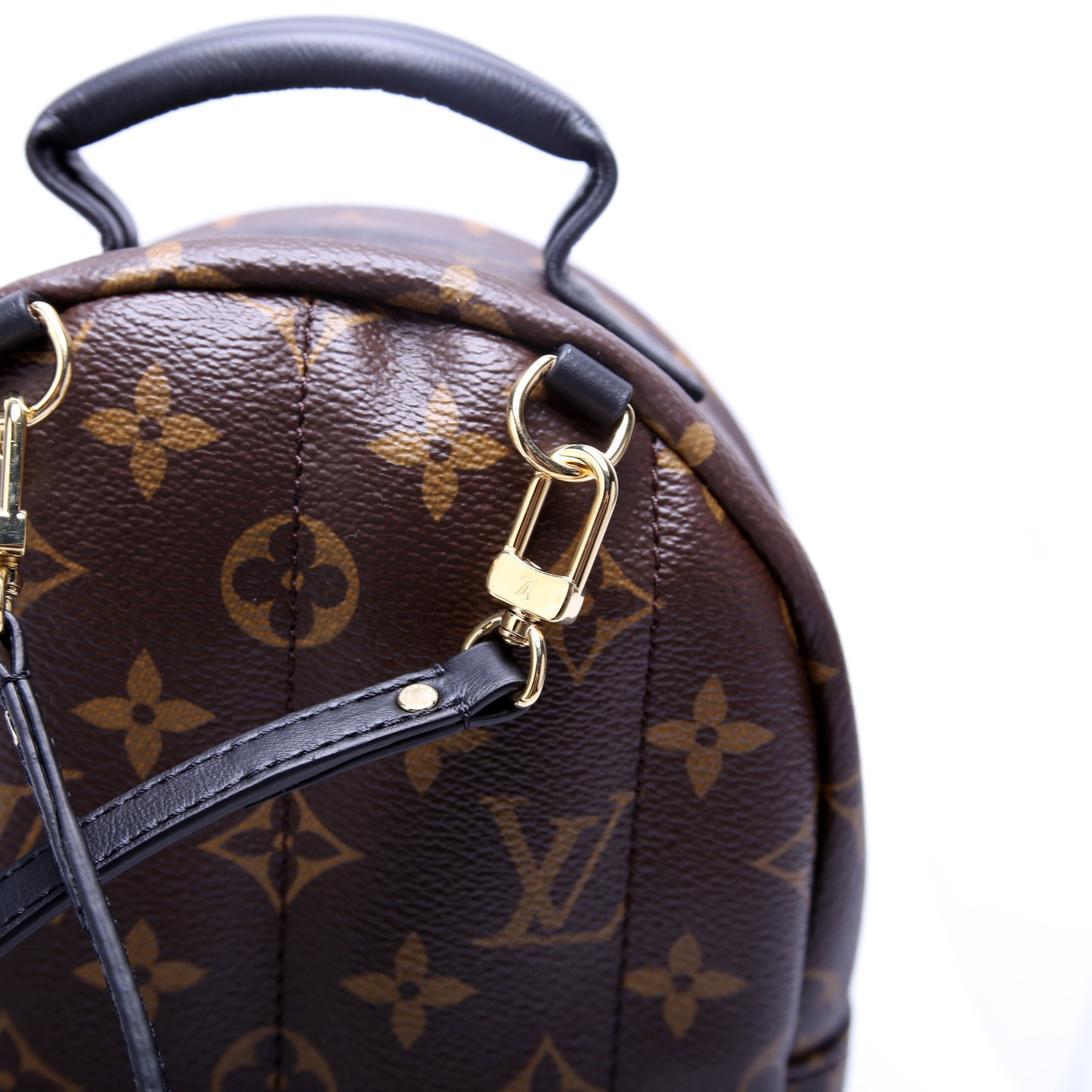 This pre-owned Louis Vuitton Palm Springs Mini Backpack is guaranteed 100% authentic. The exterior is in the classic Louis Vuitton Monogram coated canvas.