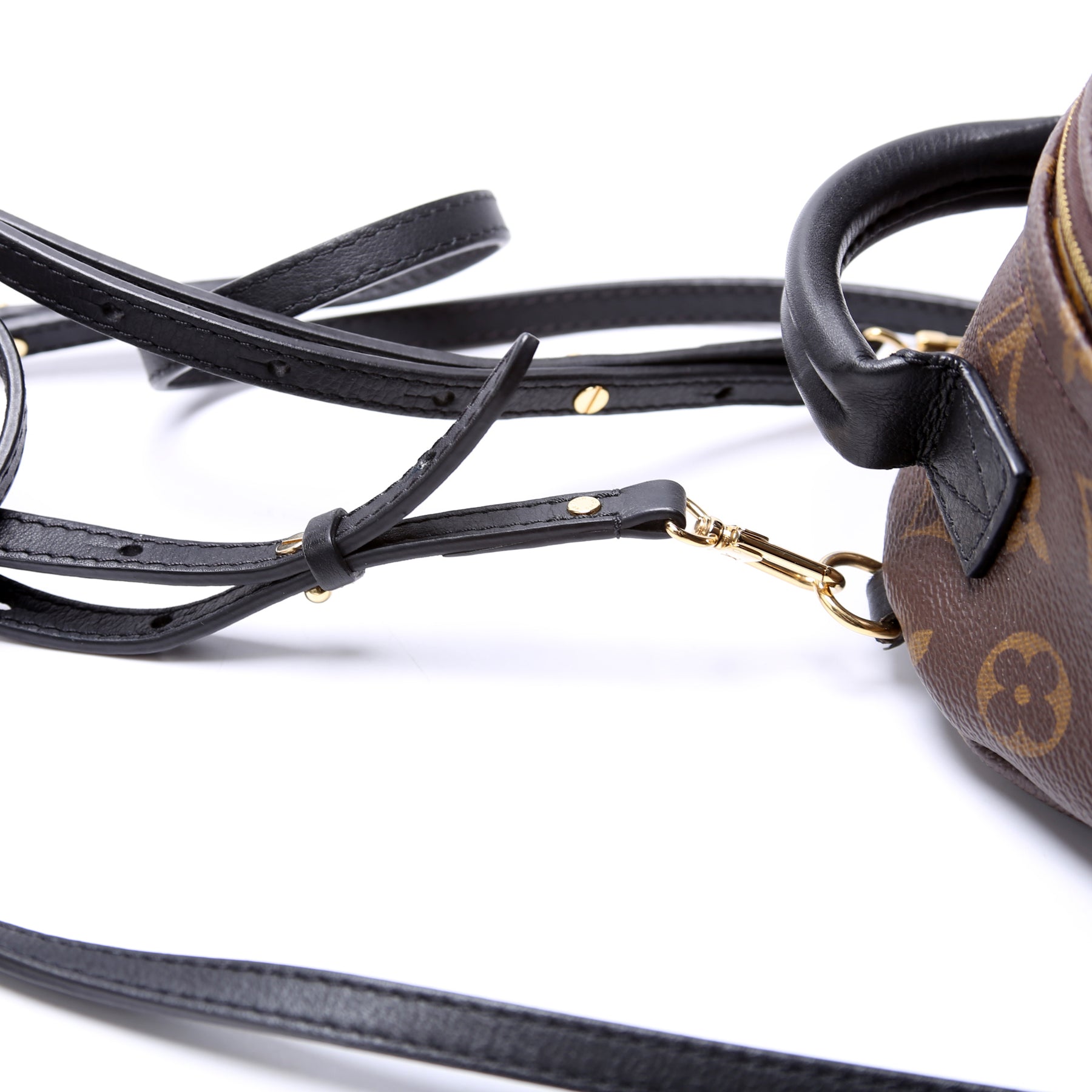 This pre-owned Louis Vuitton Palm Springs Mini Backpack is guaranteed 100% authentic. The exterior is in the classic Louis Vuitton Monogram coated canvas.