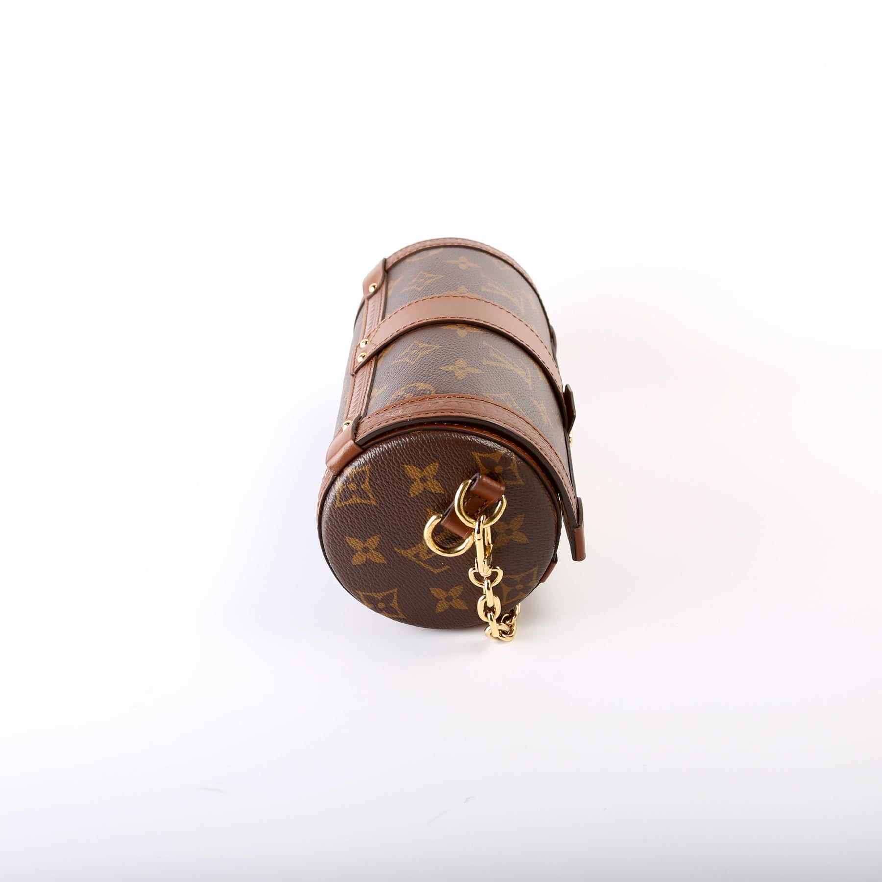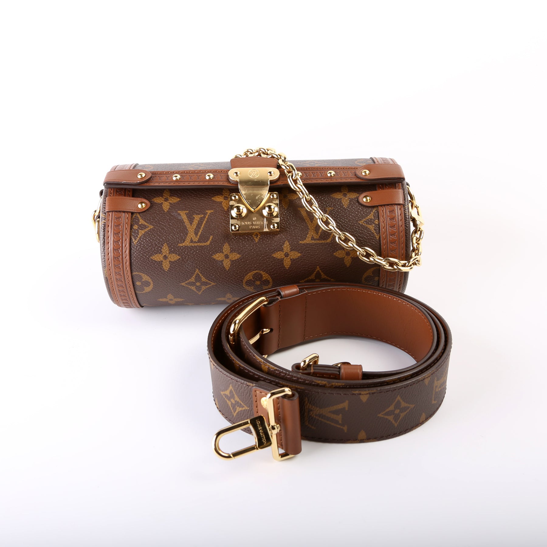 This pre-owned Louis Vuitton Papillon Trunk is guaranteed 100% authentic. The exterior is in the classic Louis Vuitton Monogram coated canvas.