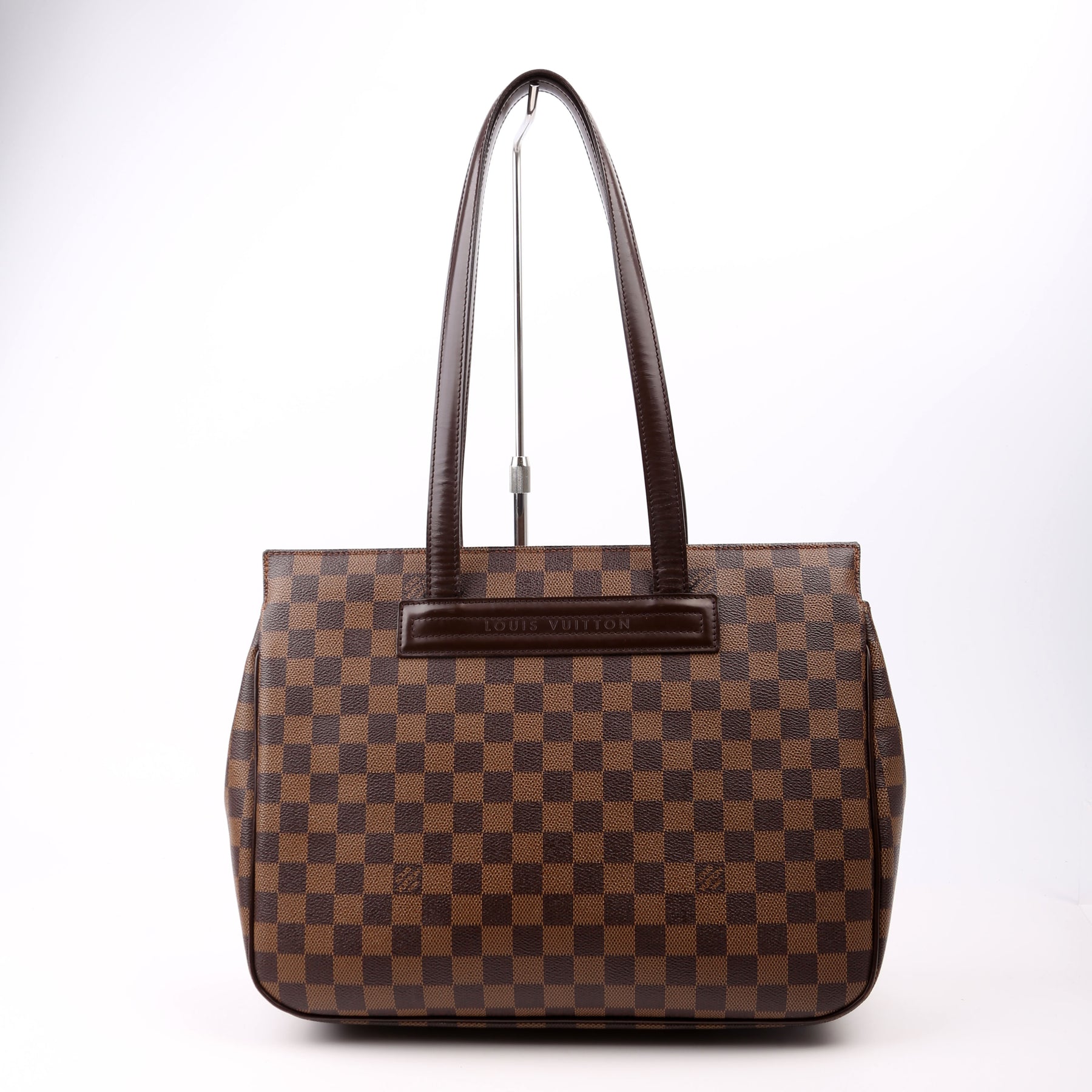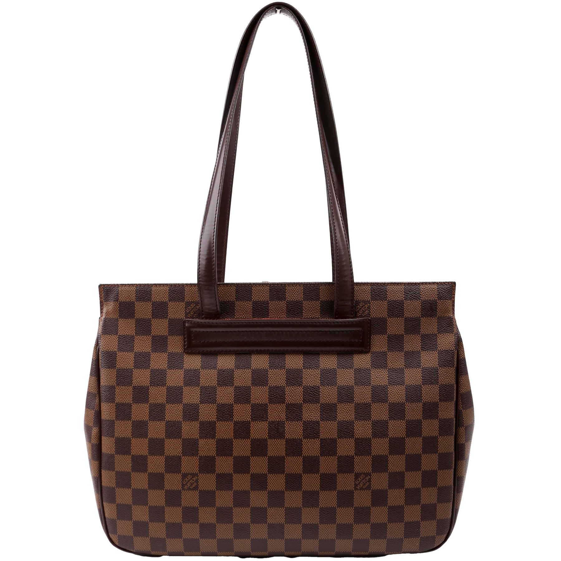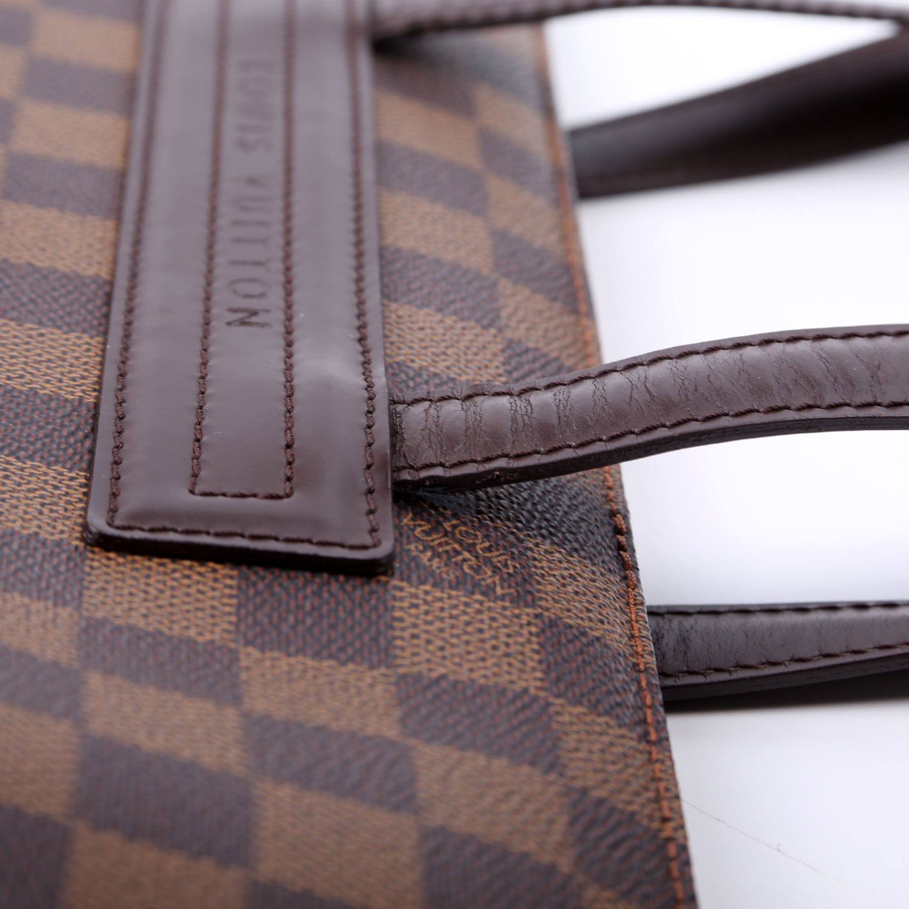 This pre-owned Louis Vuitton Parioli PM is guaranteed 100% authentic. The exterior is in the classic Louis Vuitton Damier Ebene coated canvas.