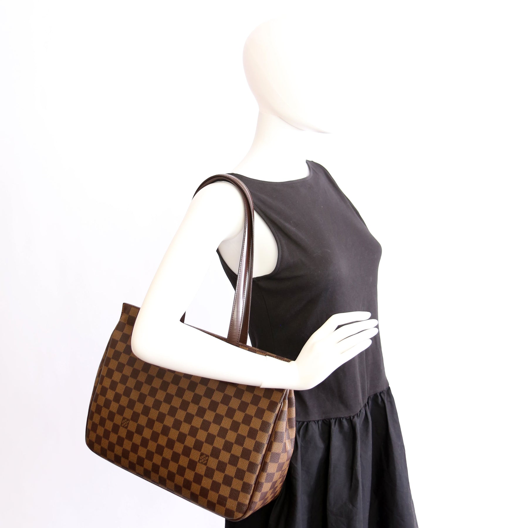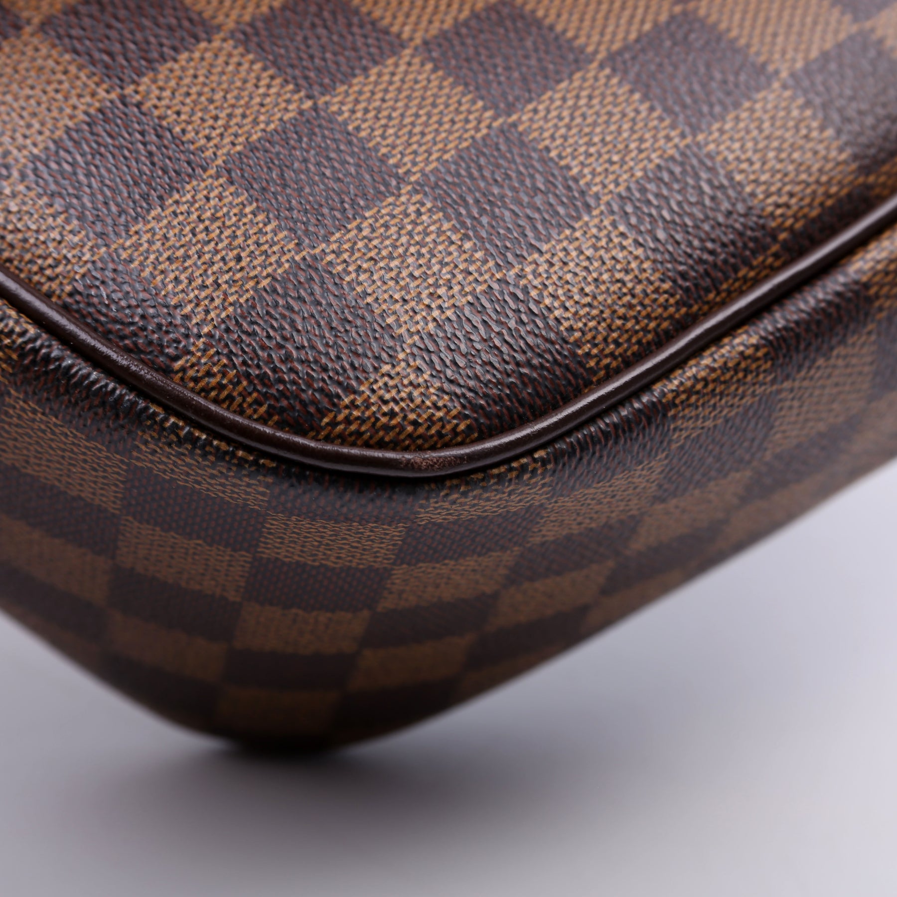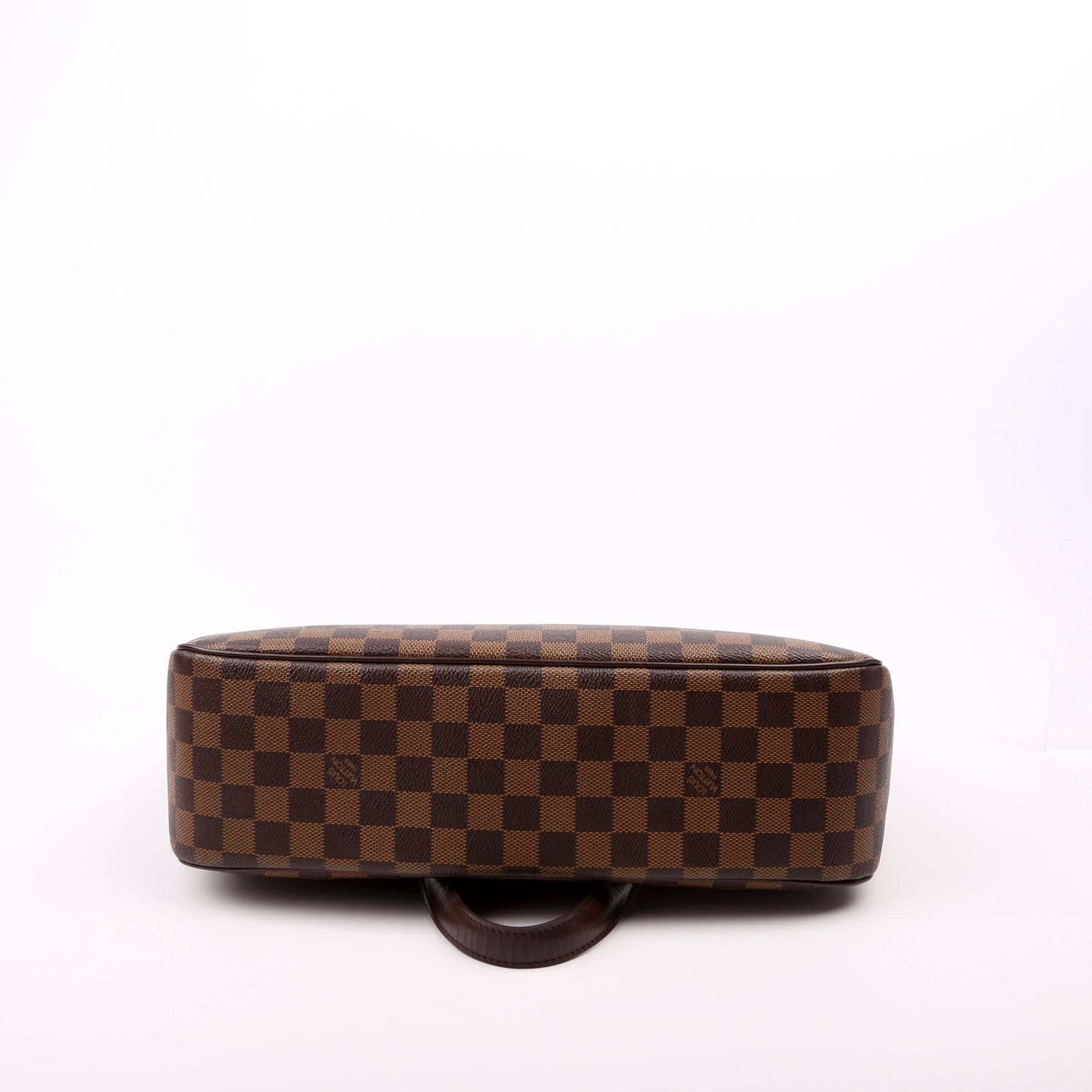 This pre-owned Louis Vuitton Parioli PM is guaranteed 100% authentic. The exterior is in the classic Louis Vuitton Damier Ebene coated canvas.