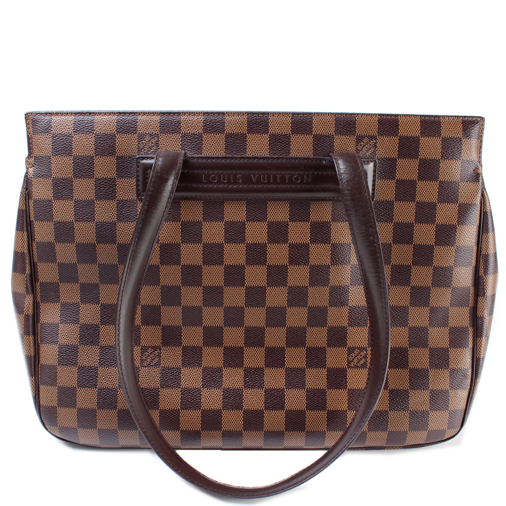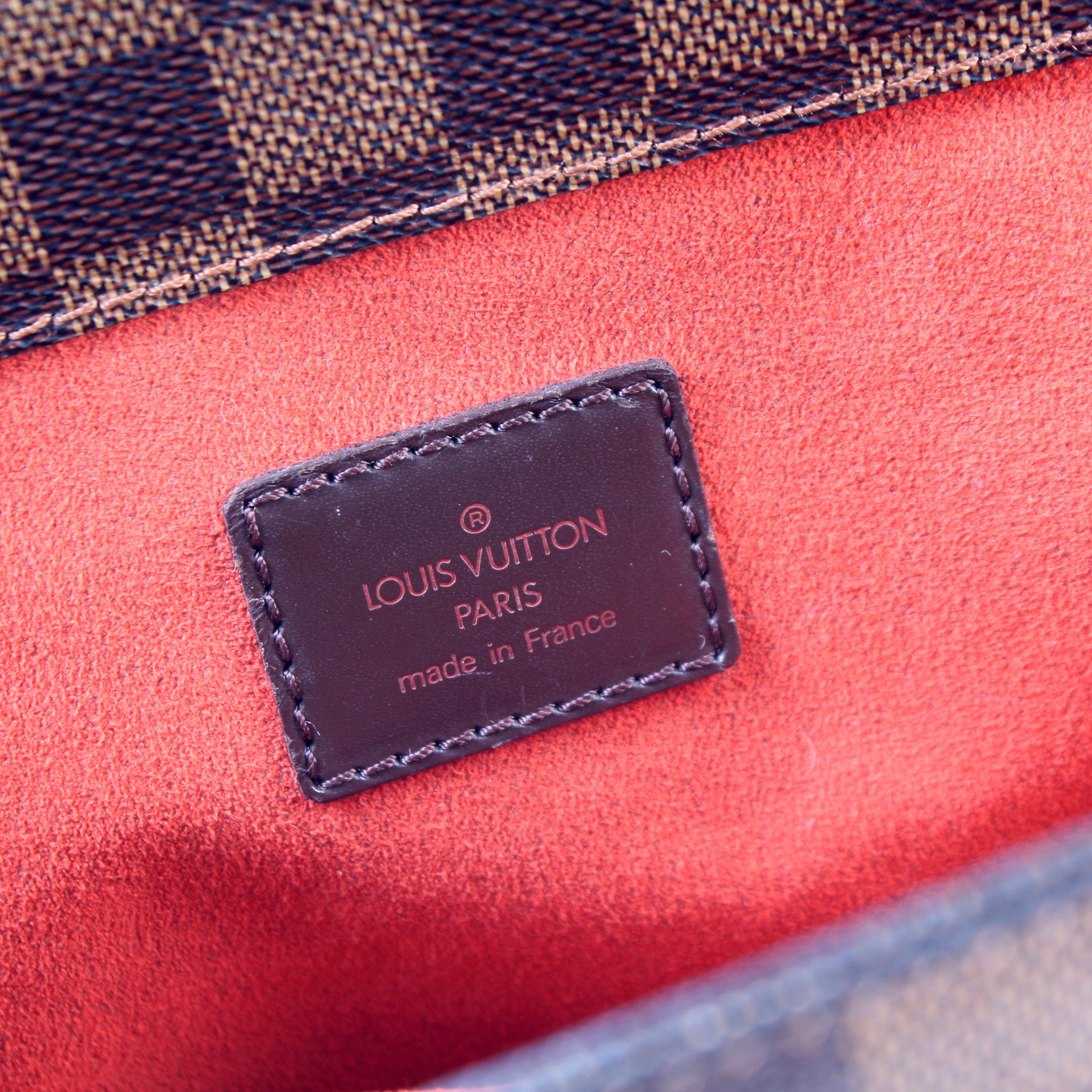 This pre-owned Louis Vuitton Parioli PM is guaranteed 100% authentic. The exterior is in the classic Louis Vuitton Damier Ebene coated canvas.