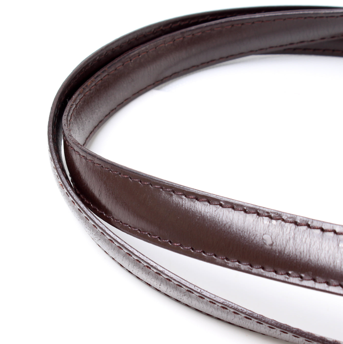 Strap: The leather shoulder straps show wrinkling and wear throughout.
