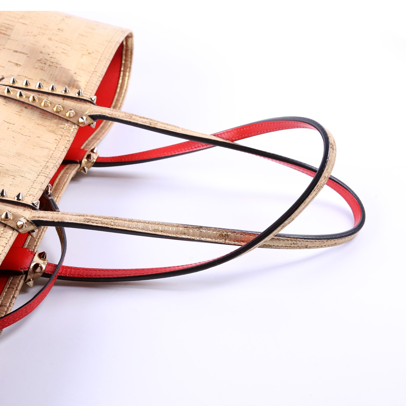 This pre-owned Christian Louboutin Pepite Cork Cabata Tote With Pouch is guaranteed 100% authentic.