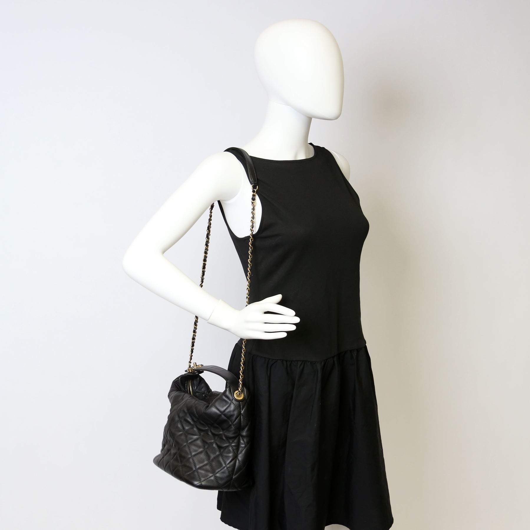 This pre-owned Chanel Perfect Meeting Hobo is guaranteed 100% authentic. The exterior is in the classic Chanel Lambskin leather.