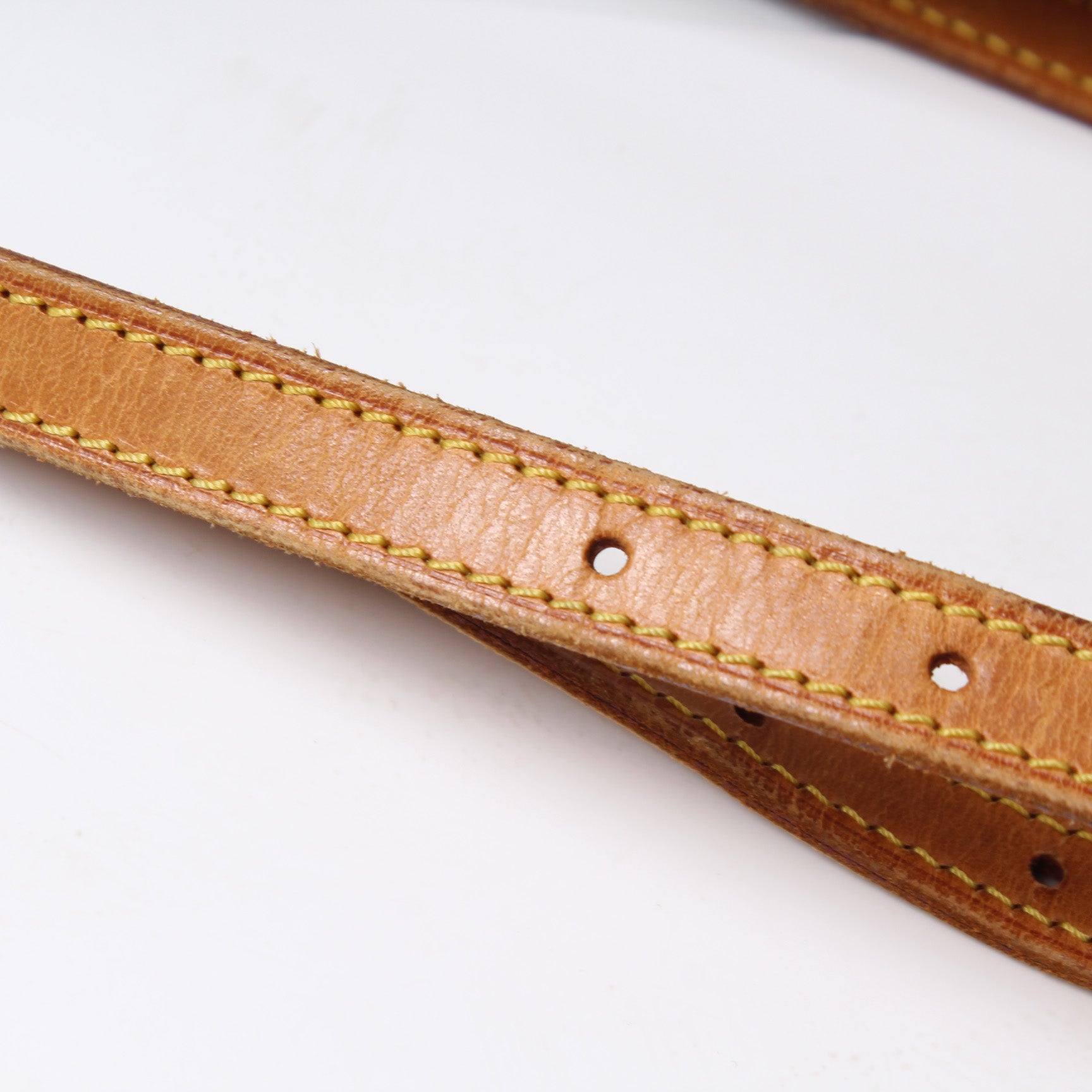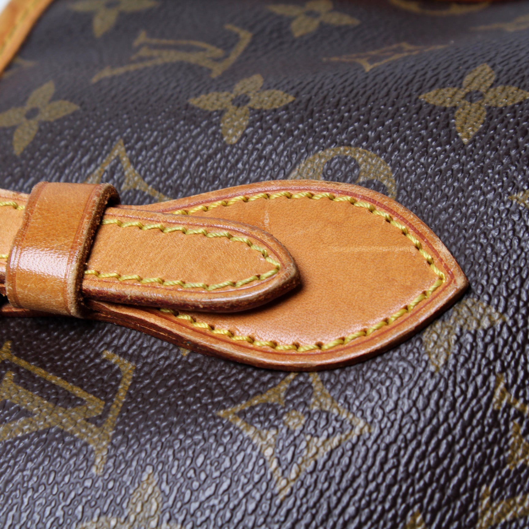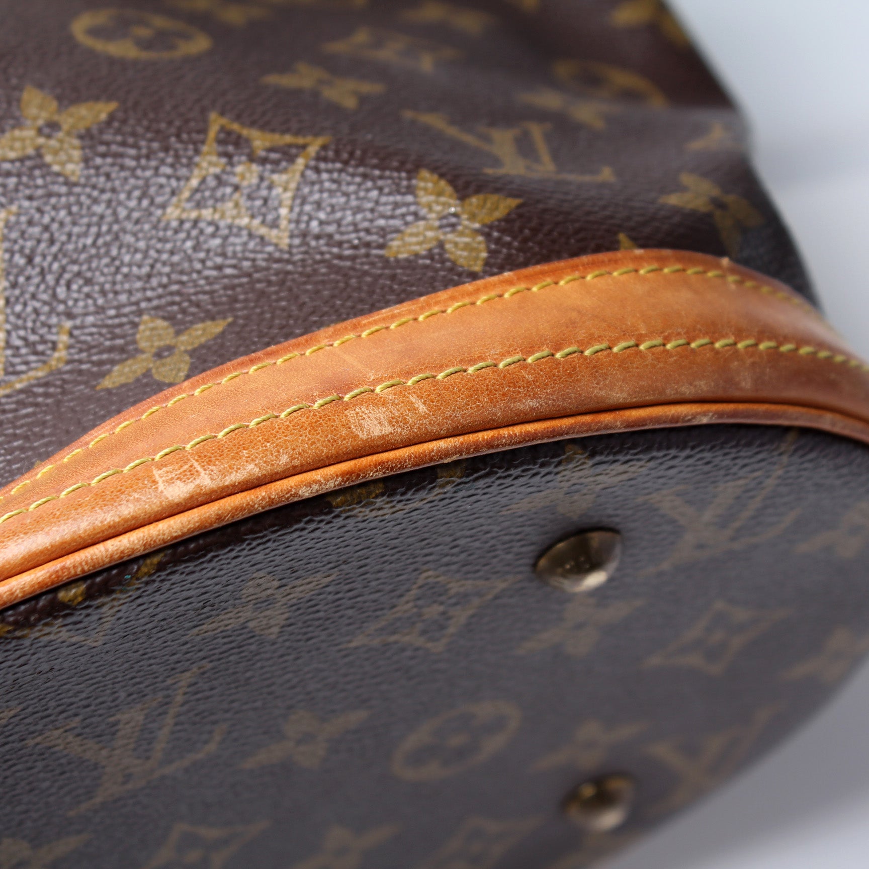Handle: The leather handles have major wear and discoloration. The leather has minor cracking.