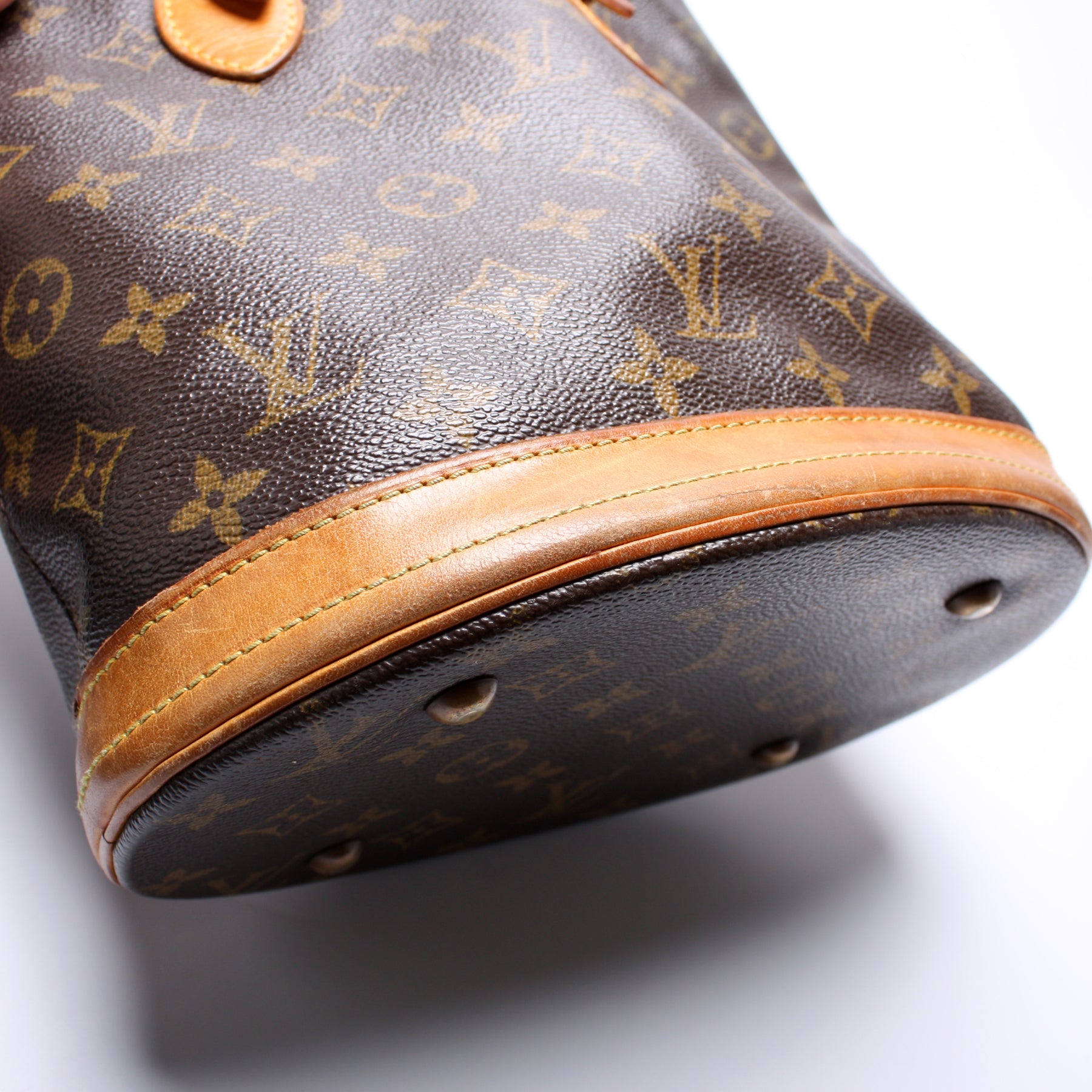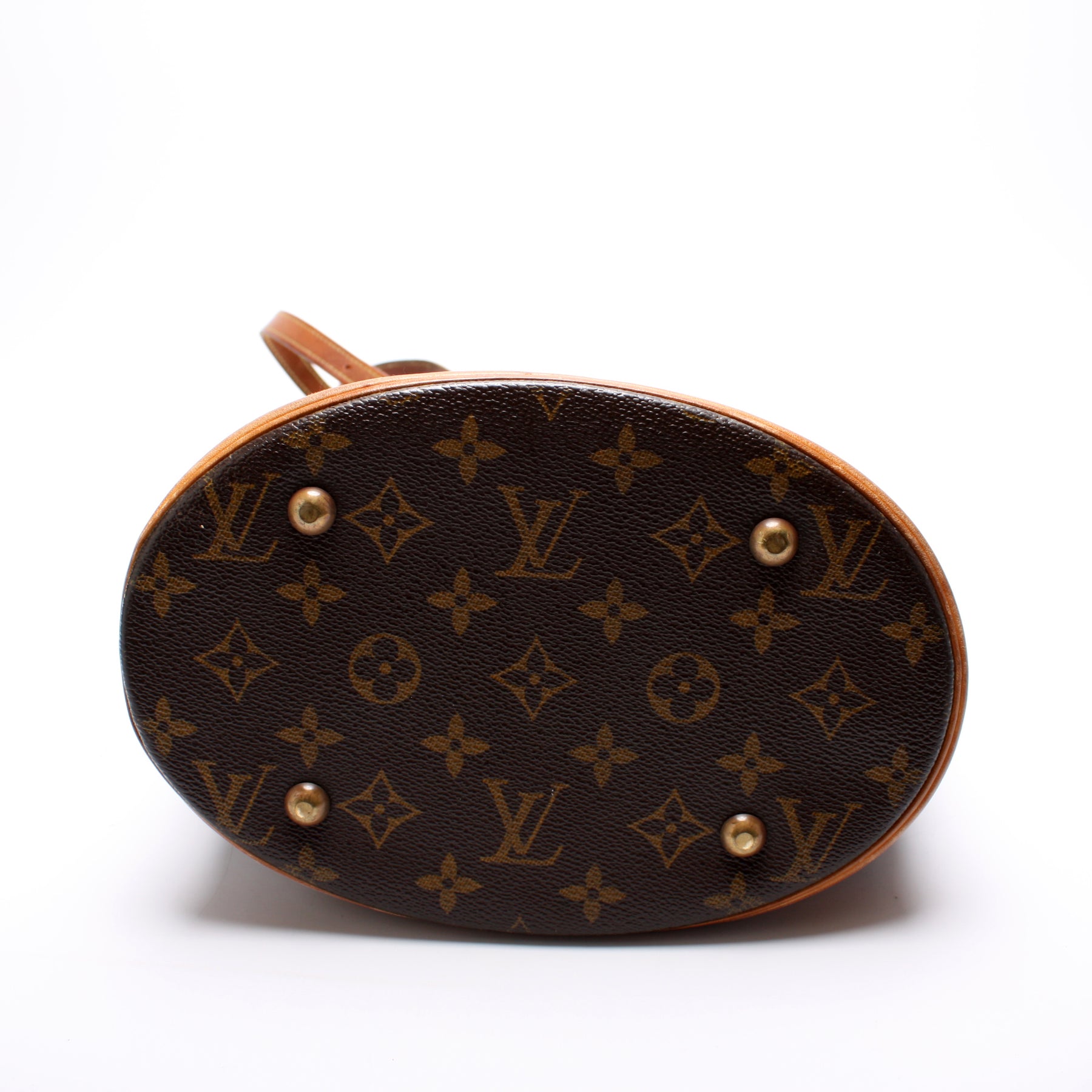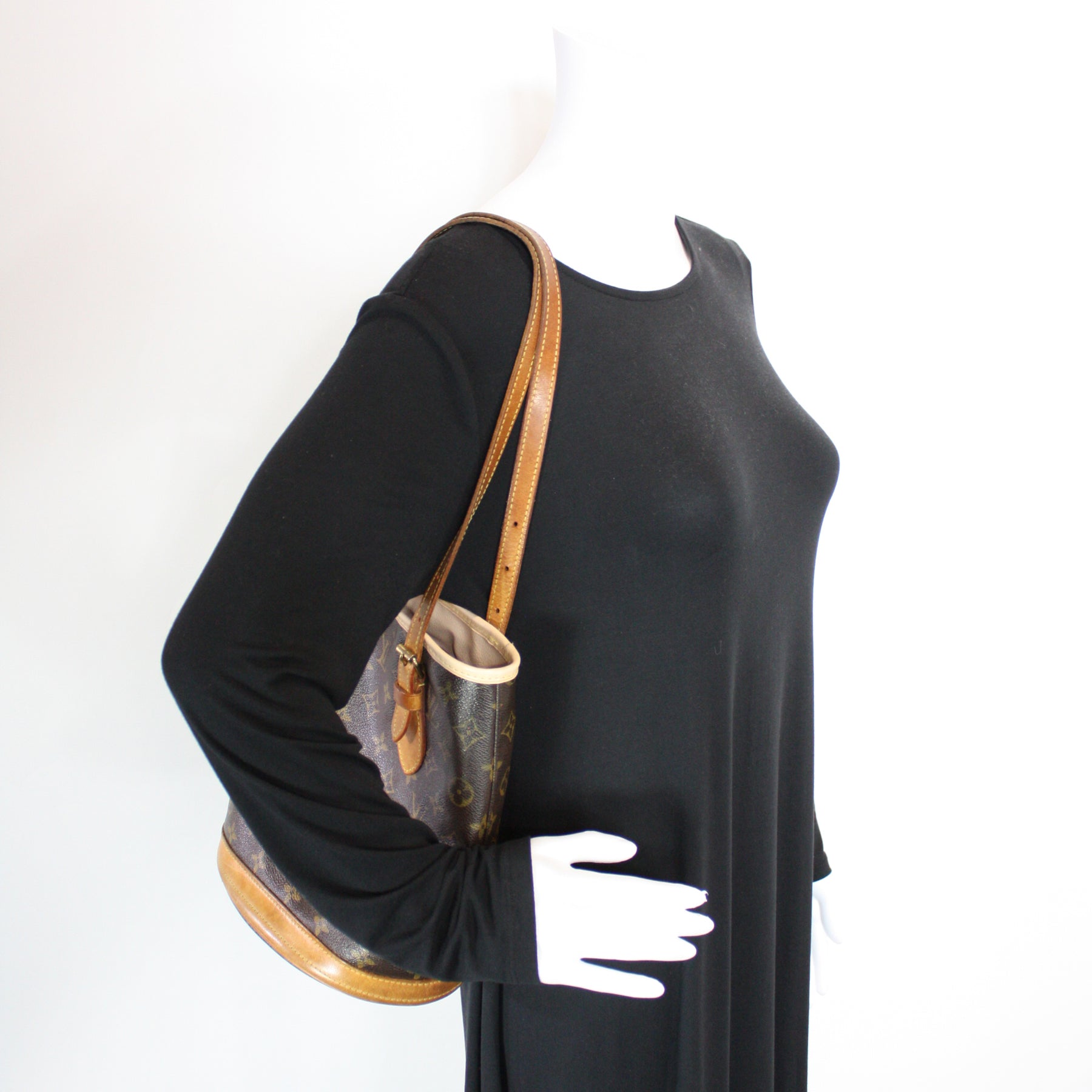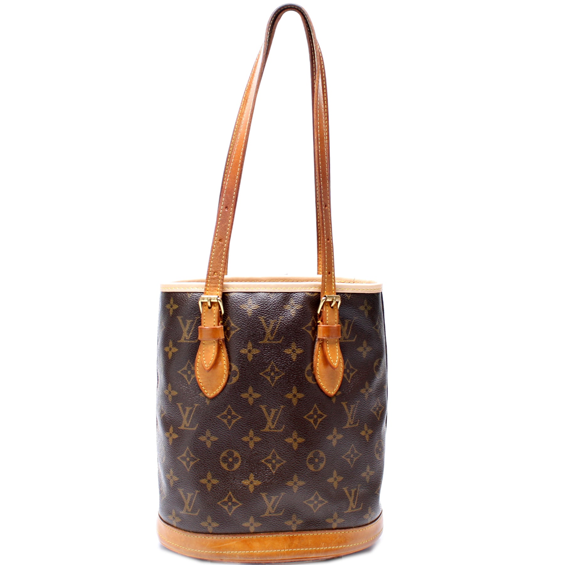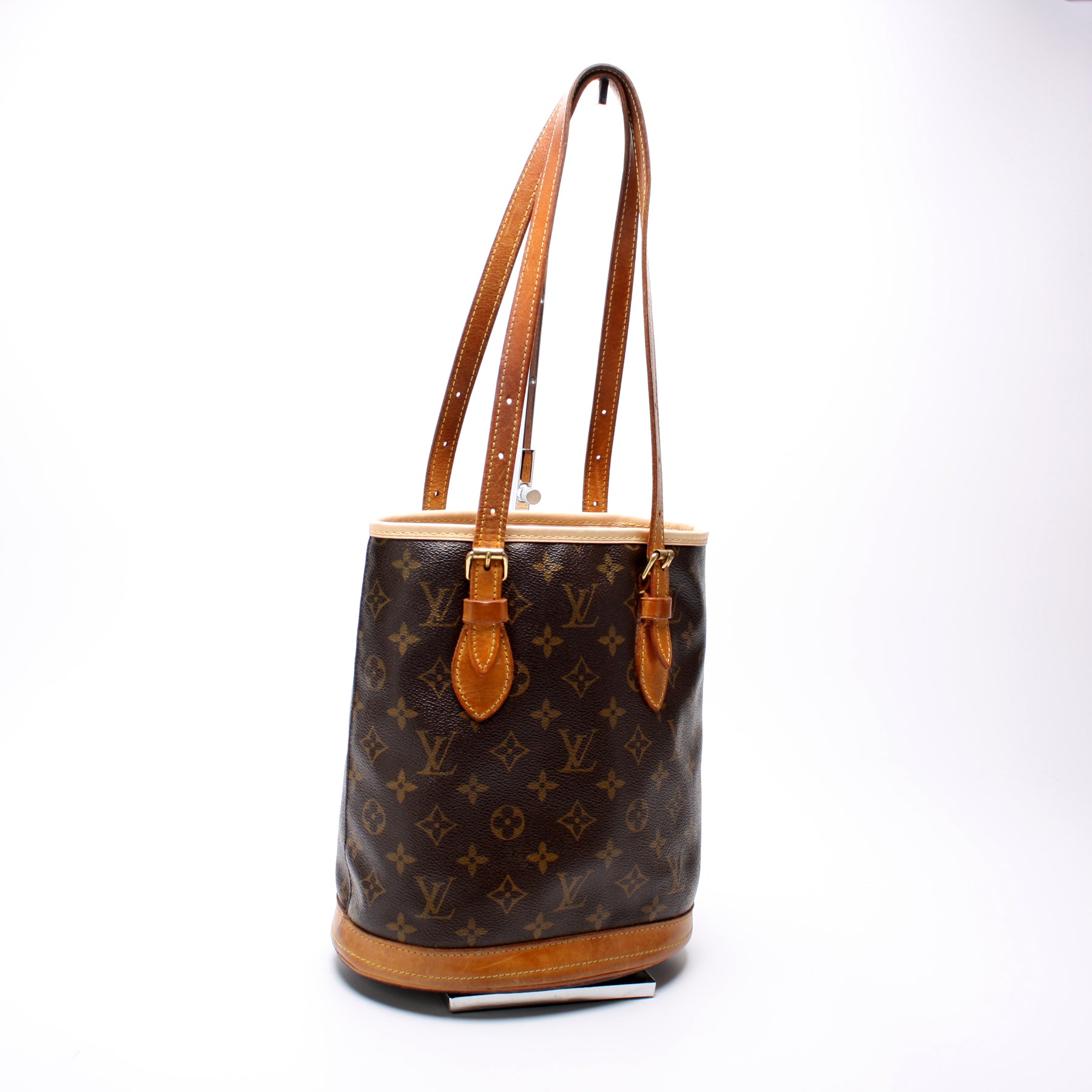 This pre-owned Louis Vuitton Petit Bucket is guaranteed 100% authentic. The exterior is in the classic Louis Vuitton Monogram canvas.