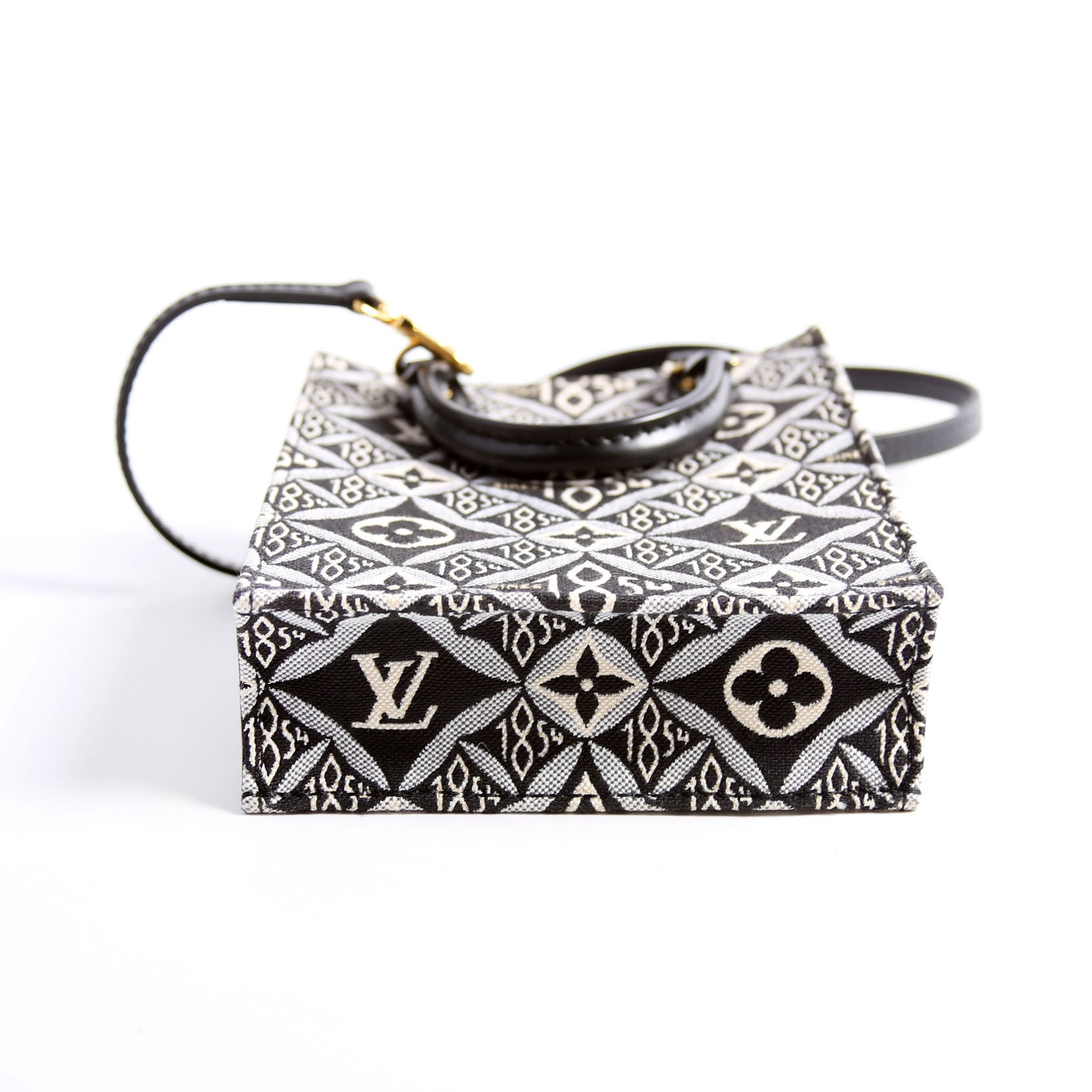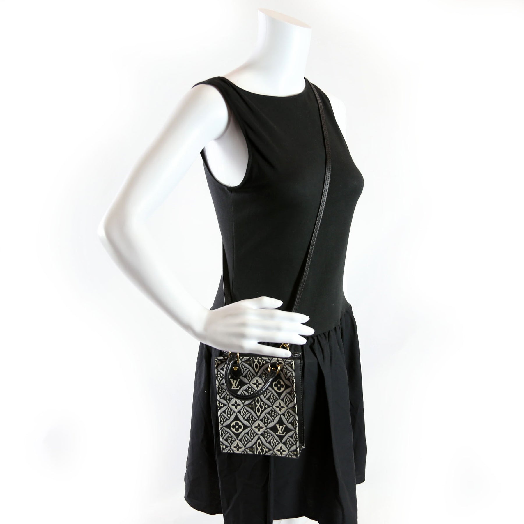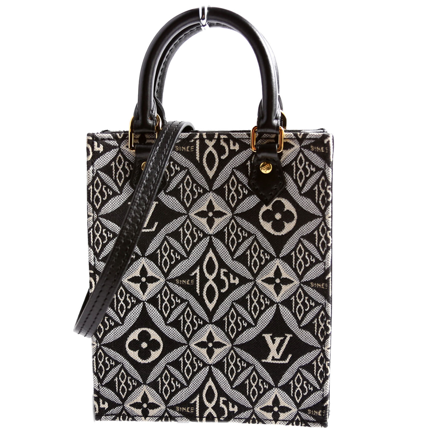 This pre-owned Louis Vuitton Petit Sac Plat Since 1854 Jacquard is guaranteed 100% authentic. The exterior is in the classic Louis Vuitton 1854 Jacquard Canvas