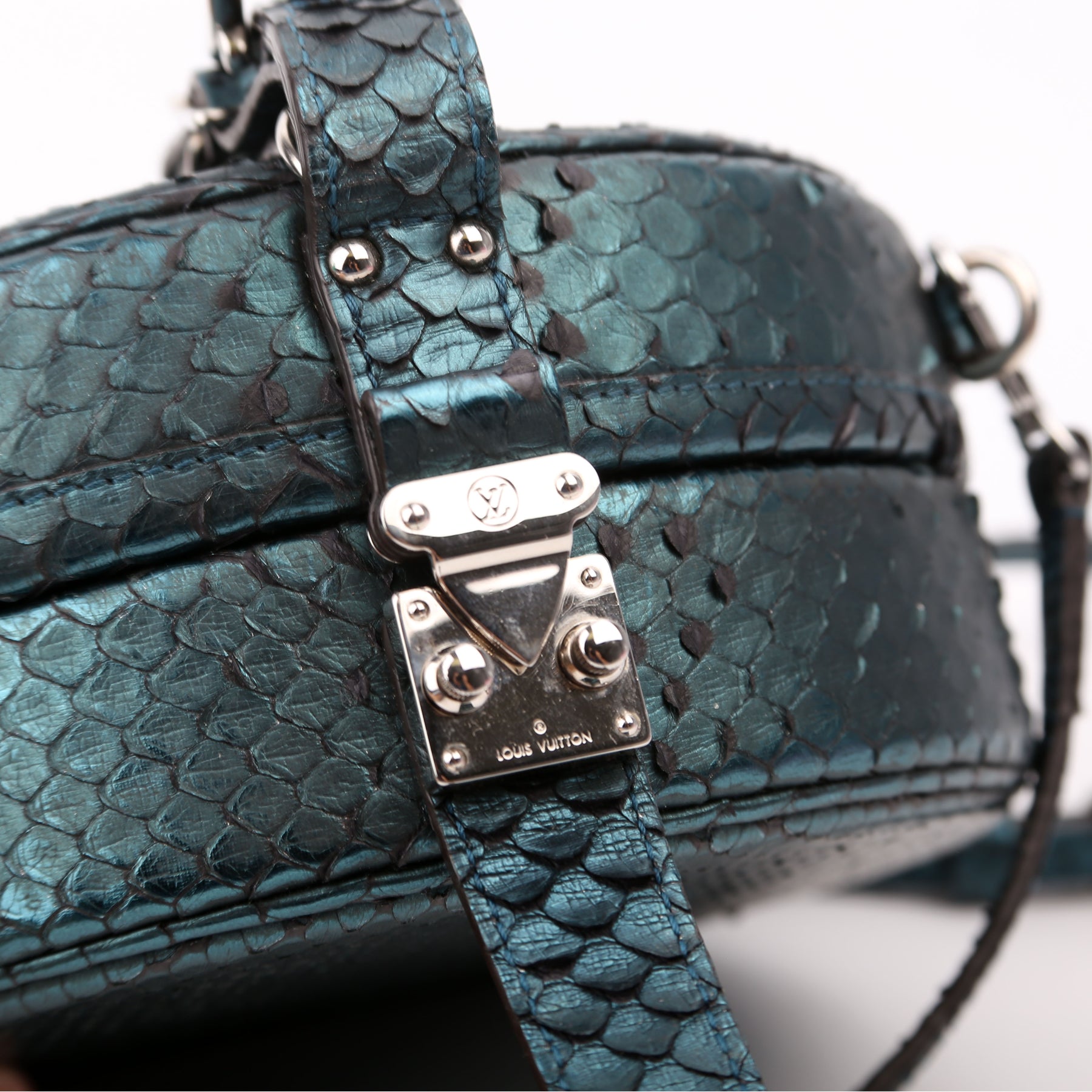 This pre-owned Louis Vuitton Petite Boite Chapeau Snakeskin is guaranteed 100% authentic.