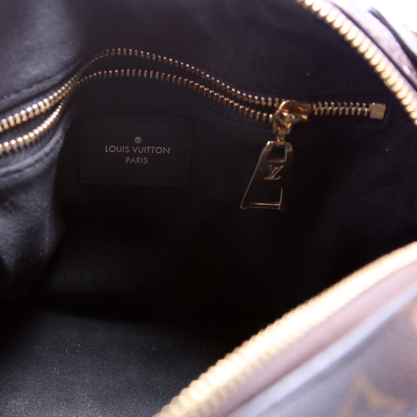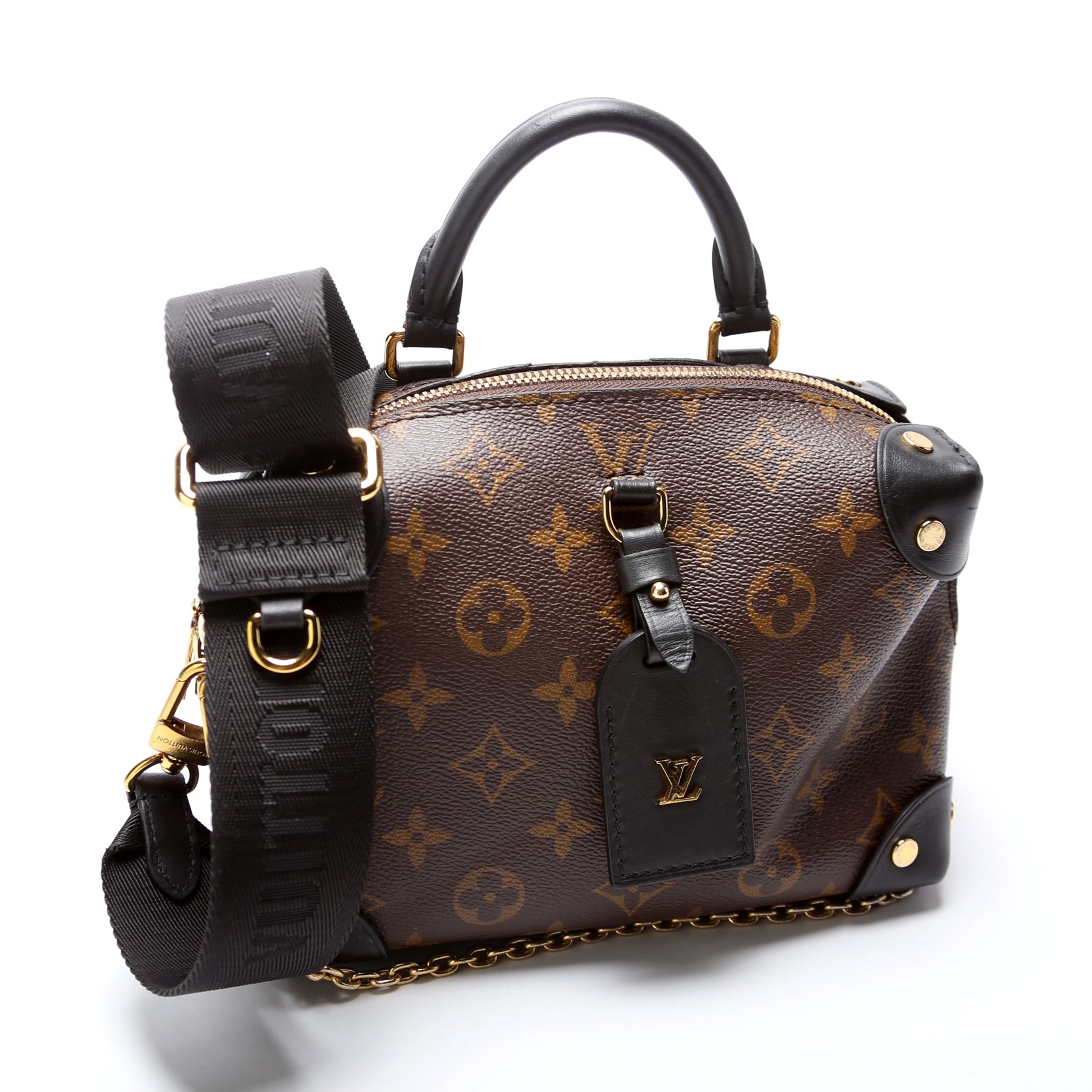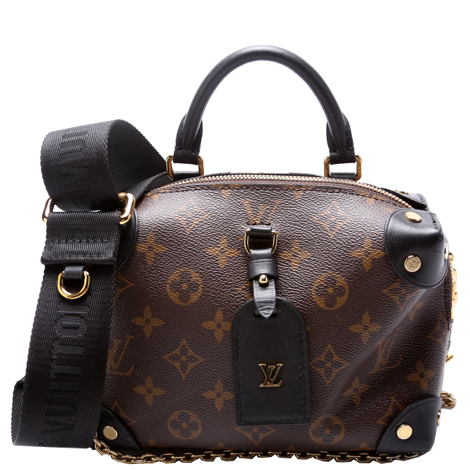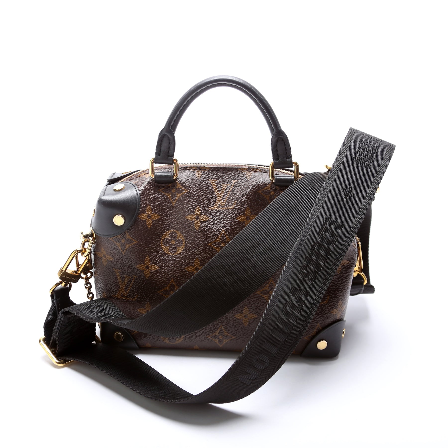 This pre-owned Louis Vuitton Petite Malle Souple is guaranteed 100% authentic. The exterior is in the classic Louis Vuitton Monogram coated canvas.