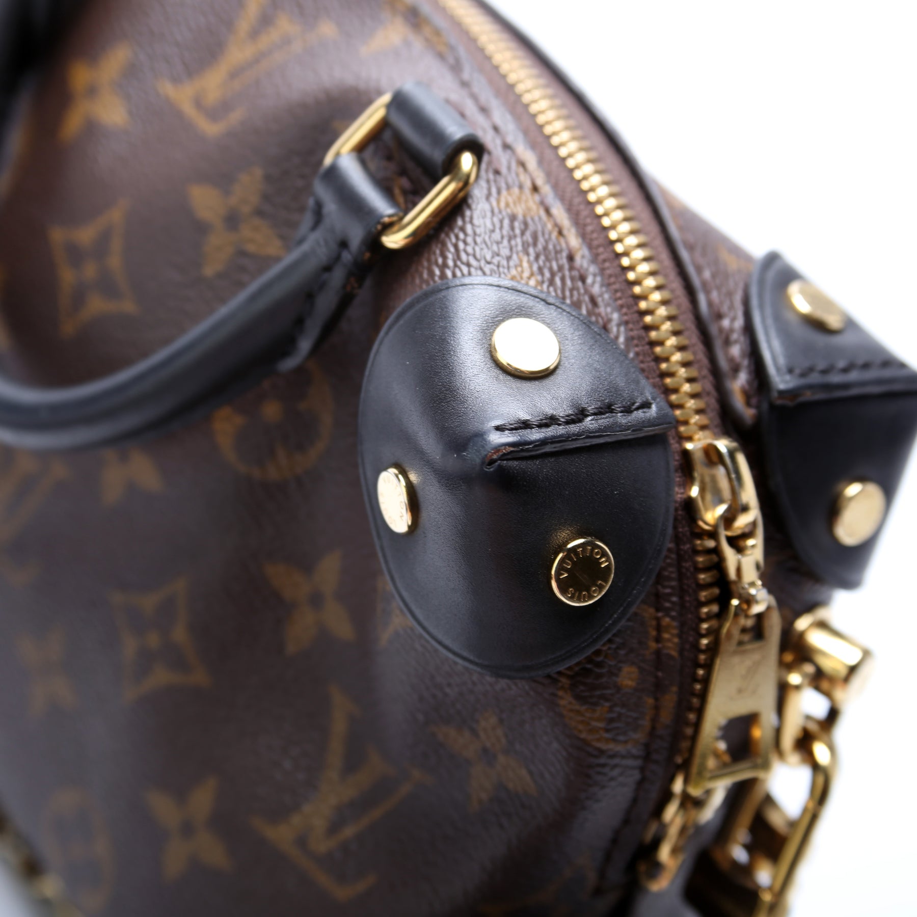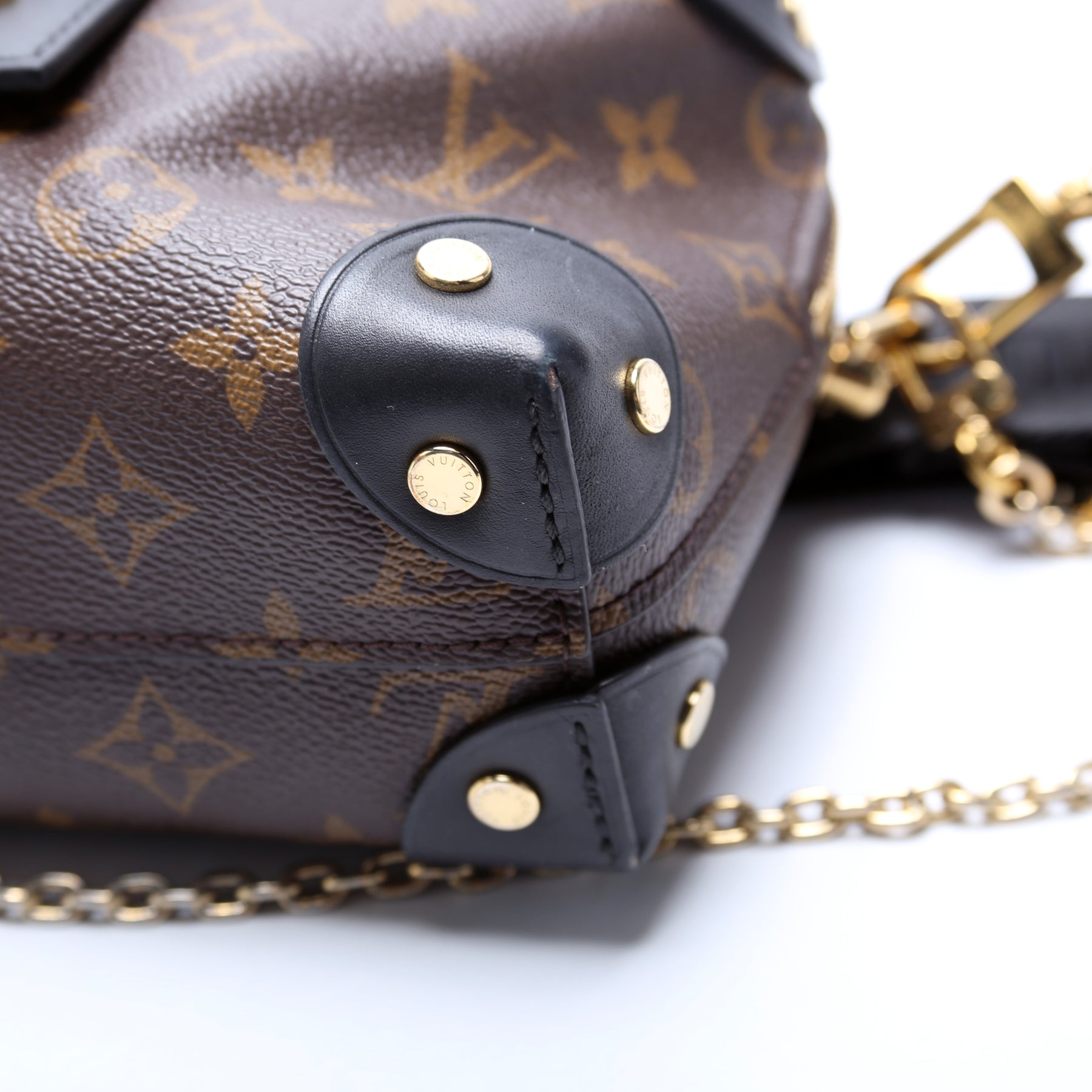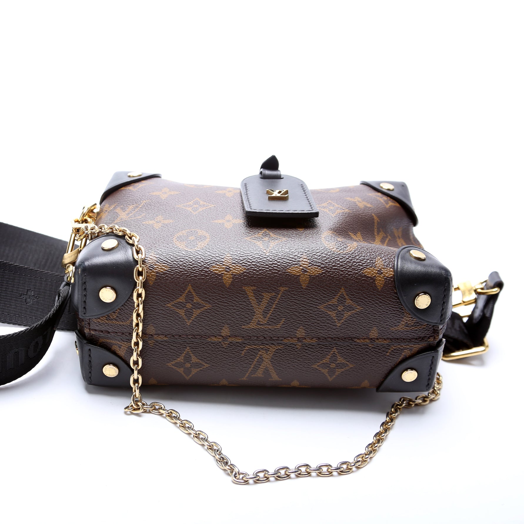 This pre-owned Louis Vuitton Petite Malle Souple is guaranteed 100% authentic. The exterior is in the classic Louis Vuitton Monogram coated canvas.