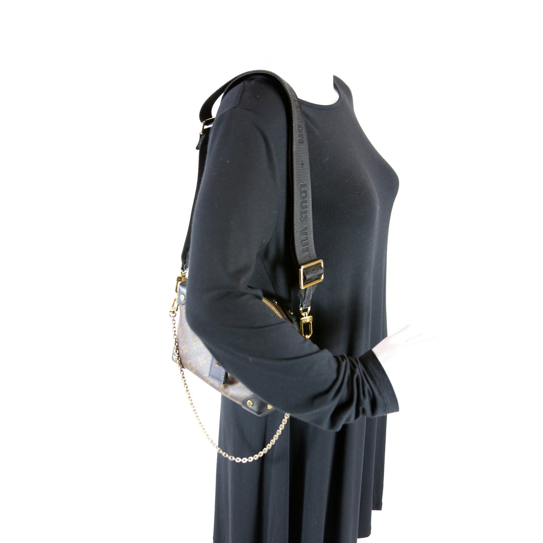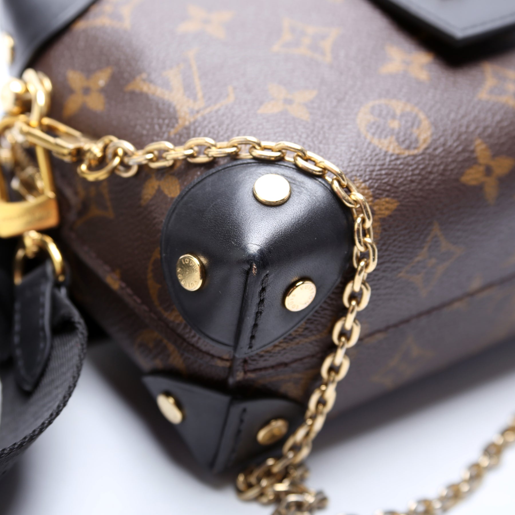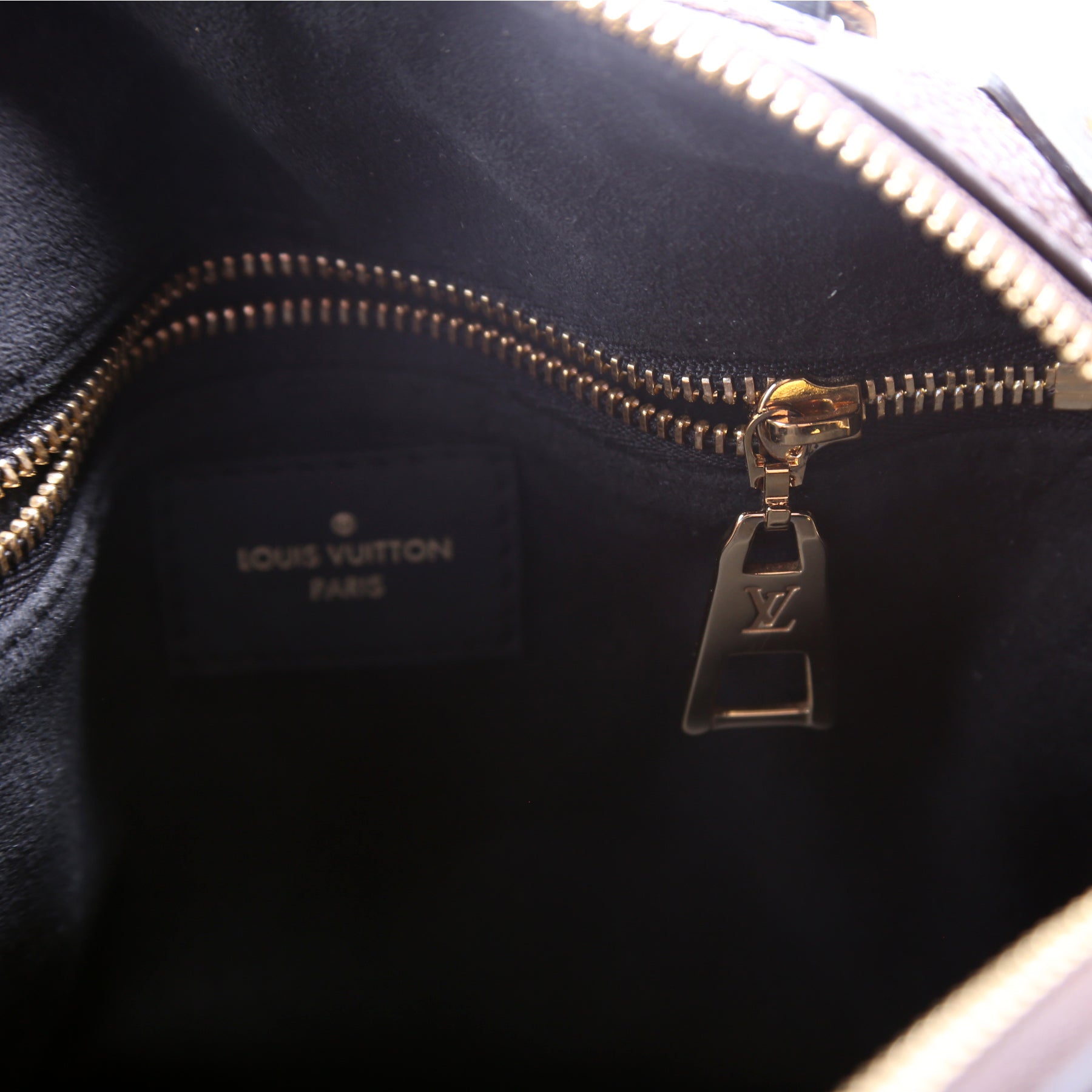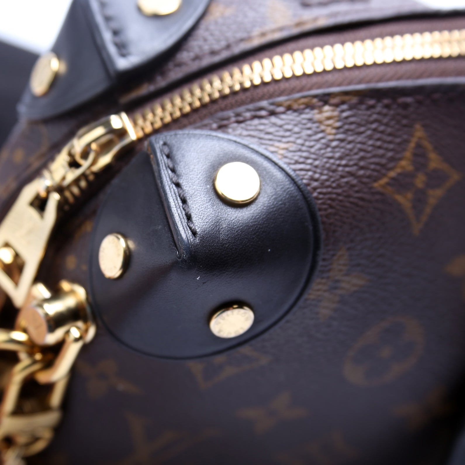 This pre-owned Louis Vuitton Petite Malle Souple is guaranteed 100% authentic. The exterior is in the classic Louis Vuitton Monogram coated canvas.