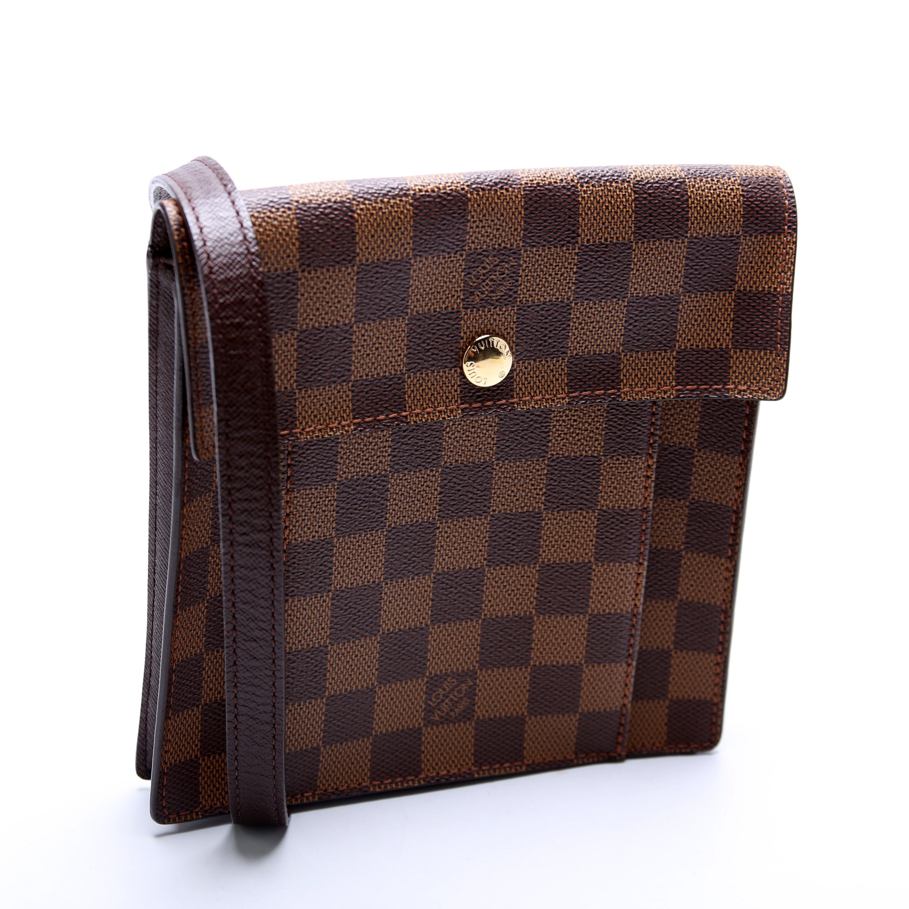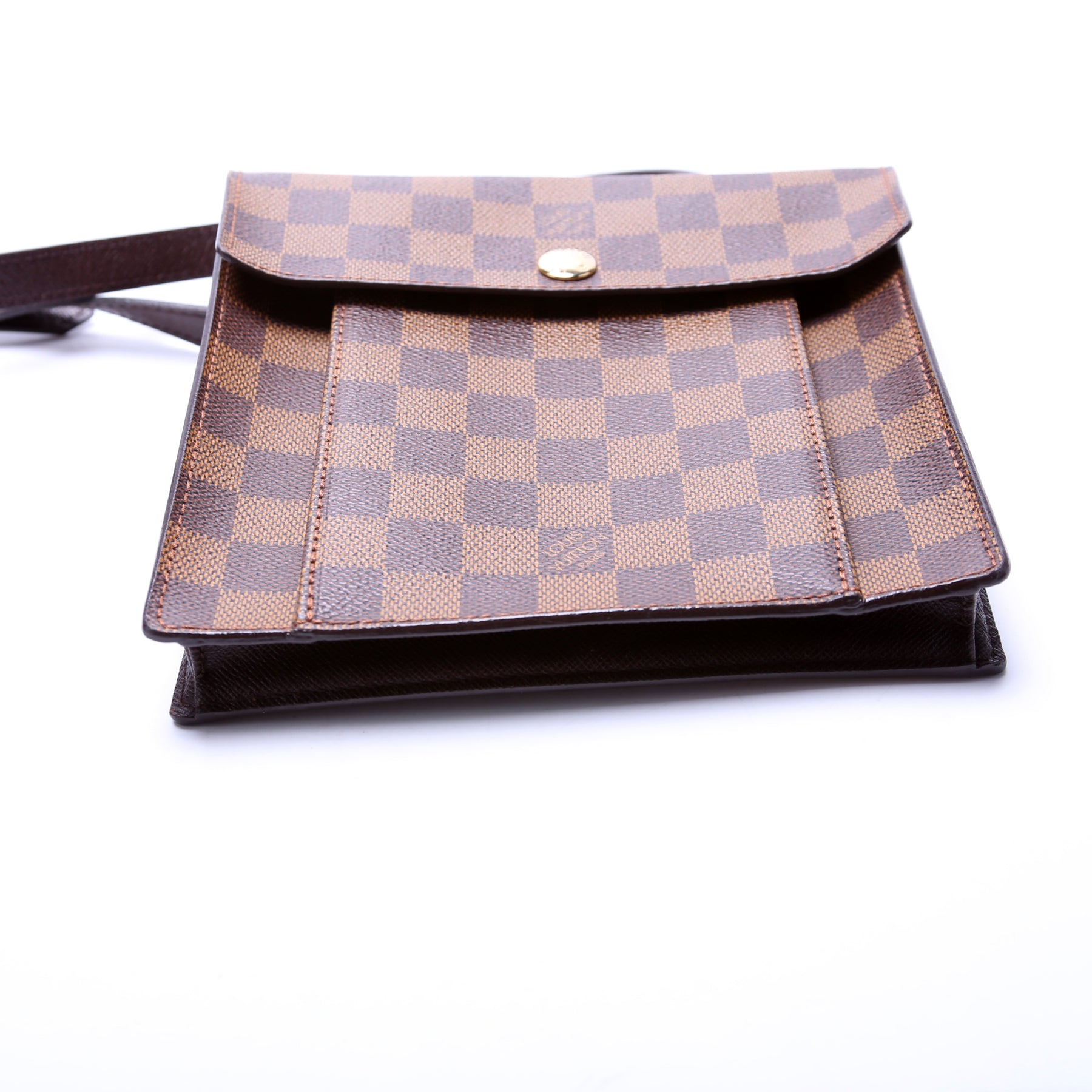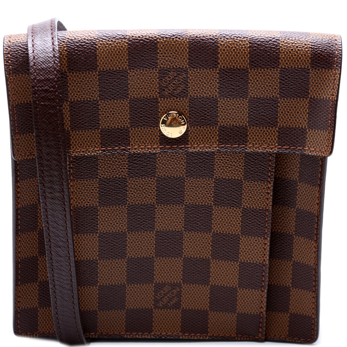 This pre-owned Louis Vuitton Pimlico Crossbody PM is guaranteed 100% authentic. The exterior is in the classic Louis Vuitton Damier Ebene coated canvas.