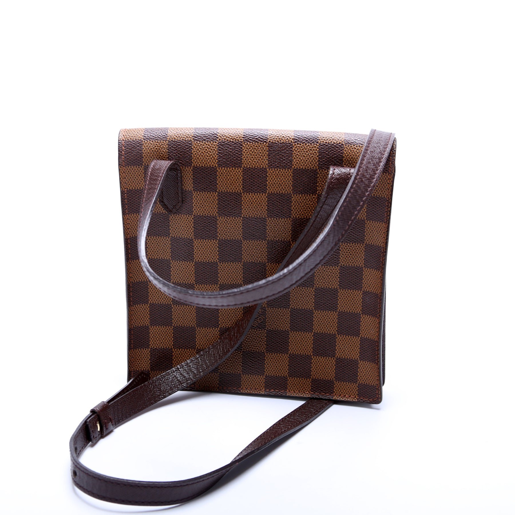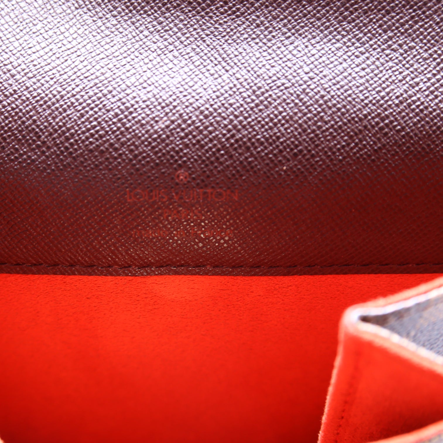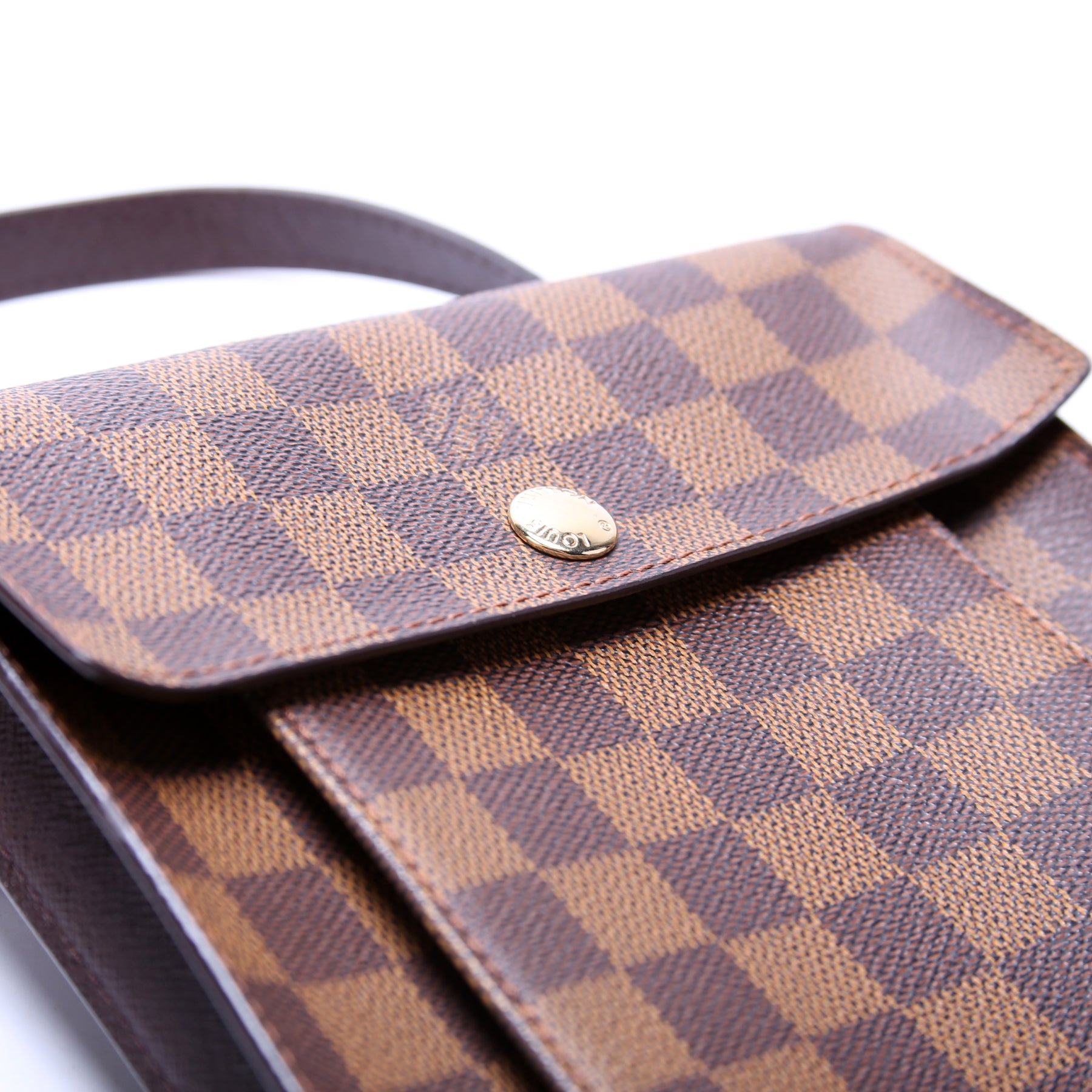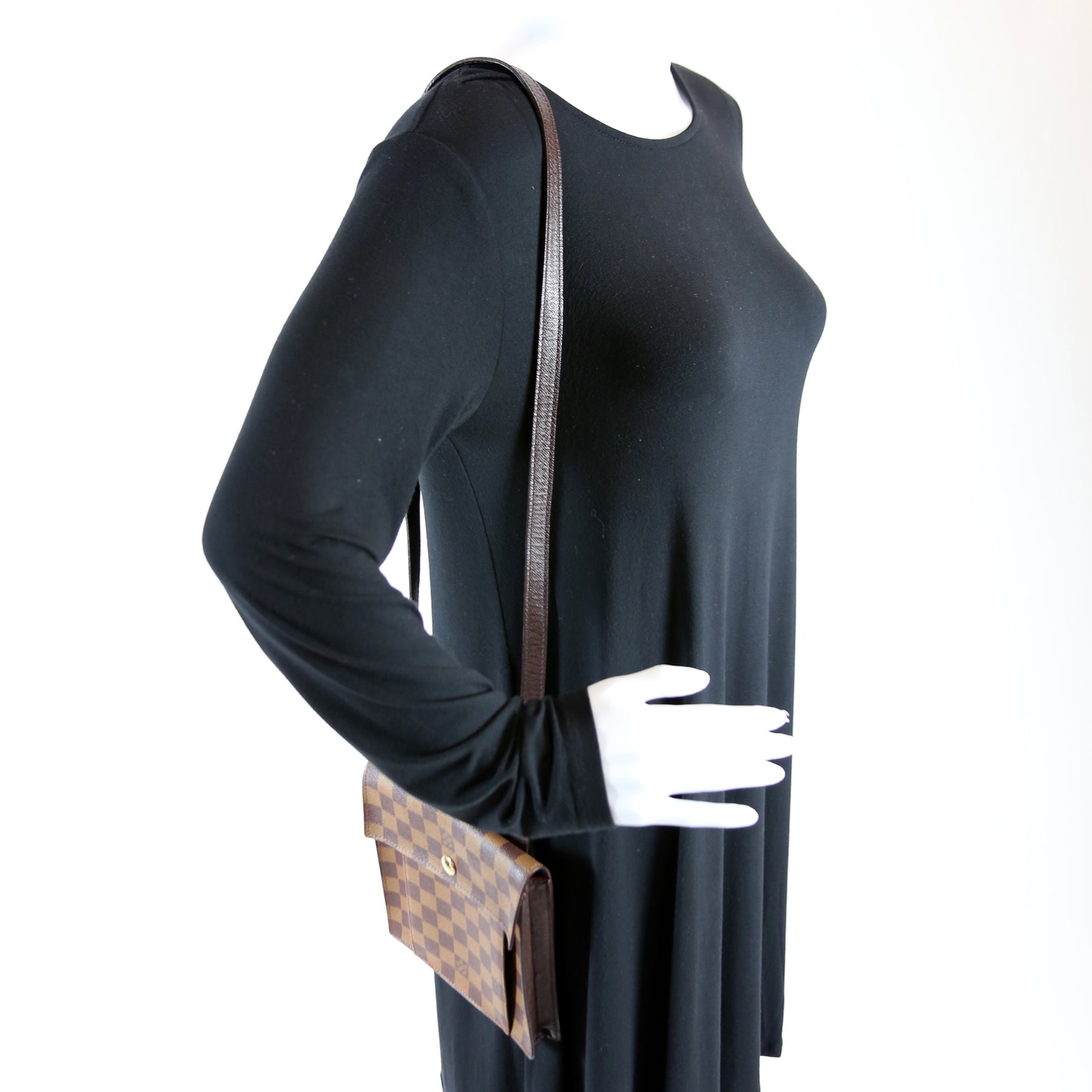 This pre-owned Louis Vuitton Pimlico Crossbody PM is guaranteed 100% authentic. The exterior is in the classic Louis Vuitton Damier Ebene coated canvas.