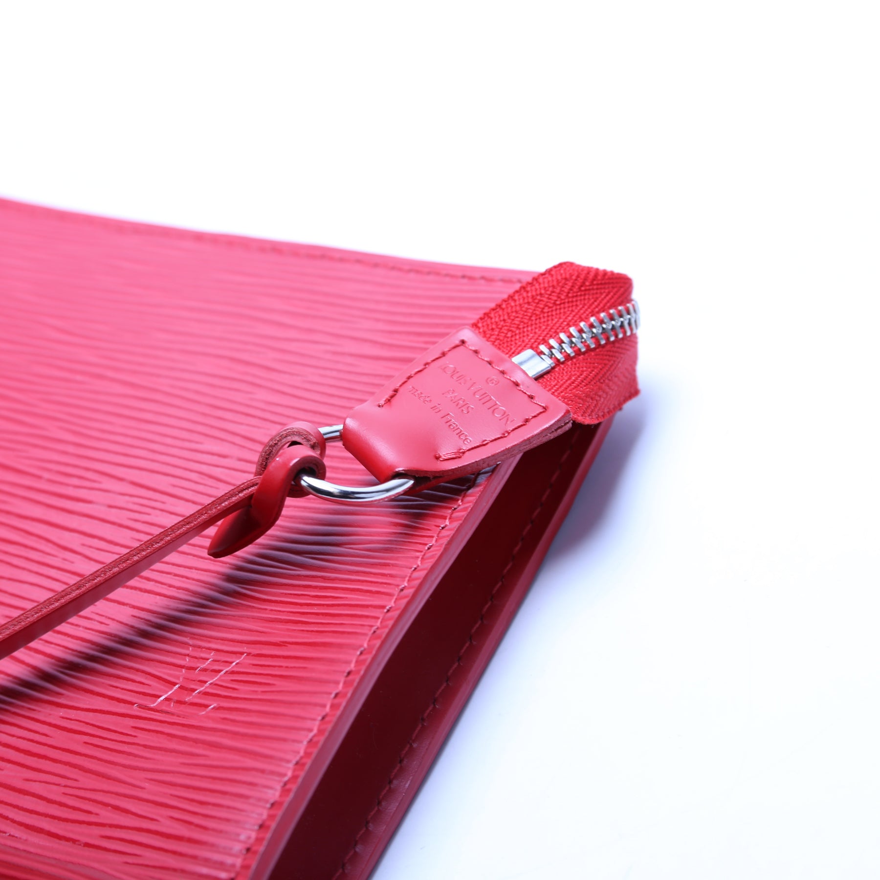 This Louis Vuitton Pochette Accessories is guaranteed 100% authentic. The exterior is in the classic Louis Vuitton Epi leather.
