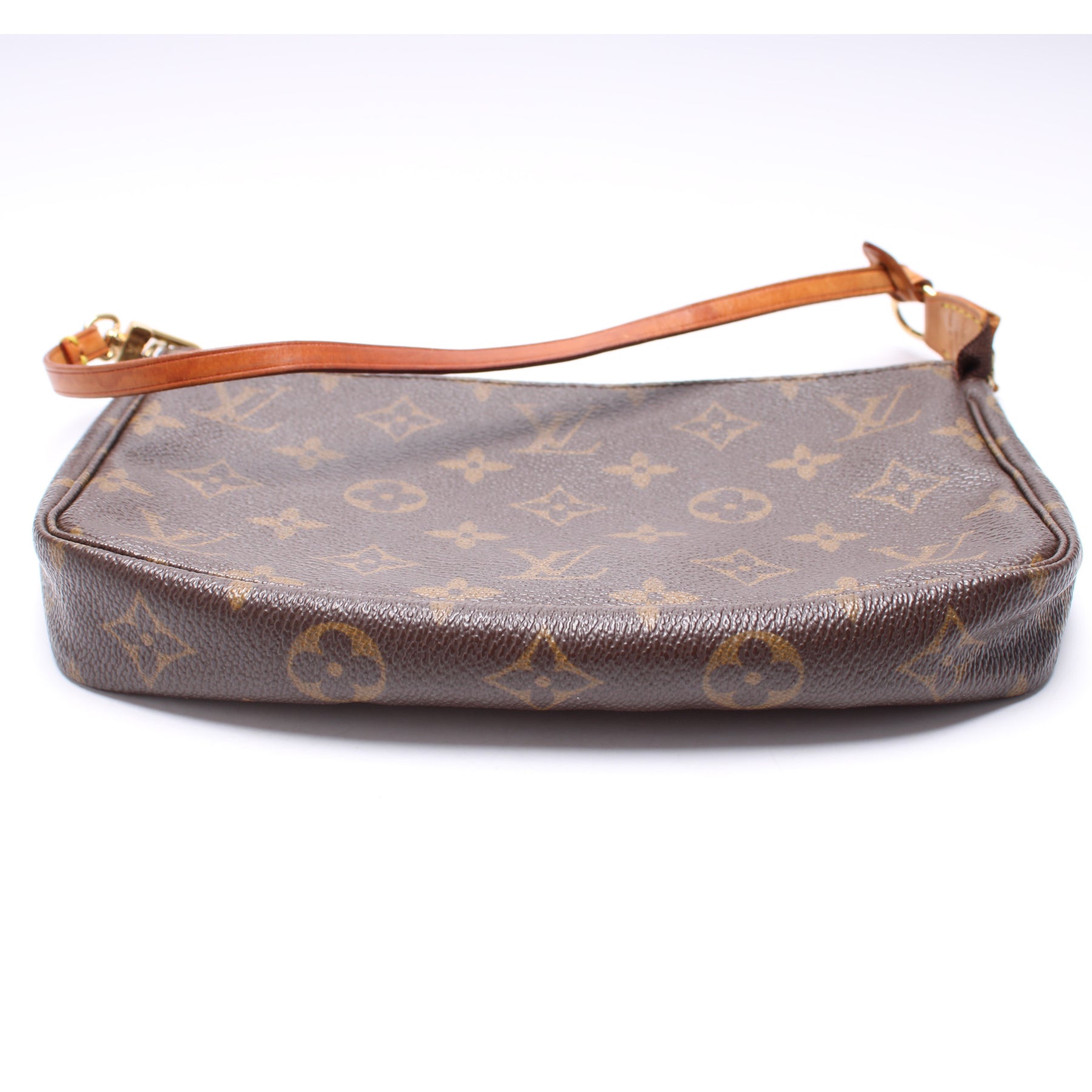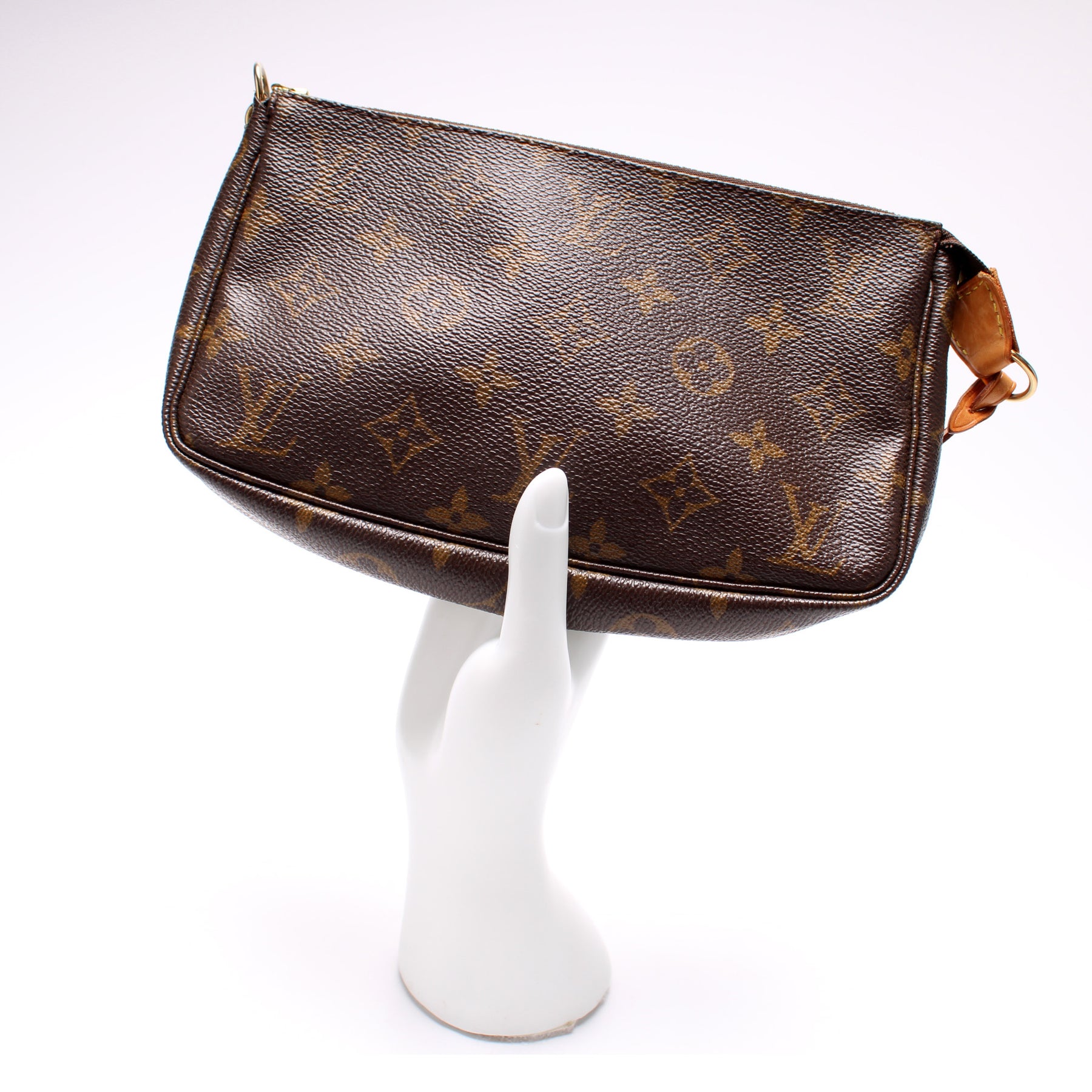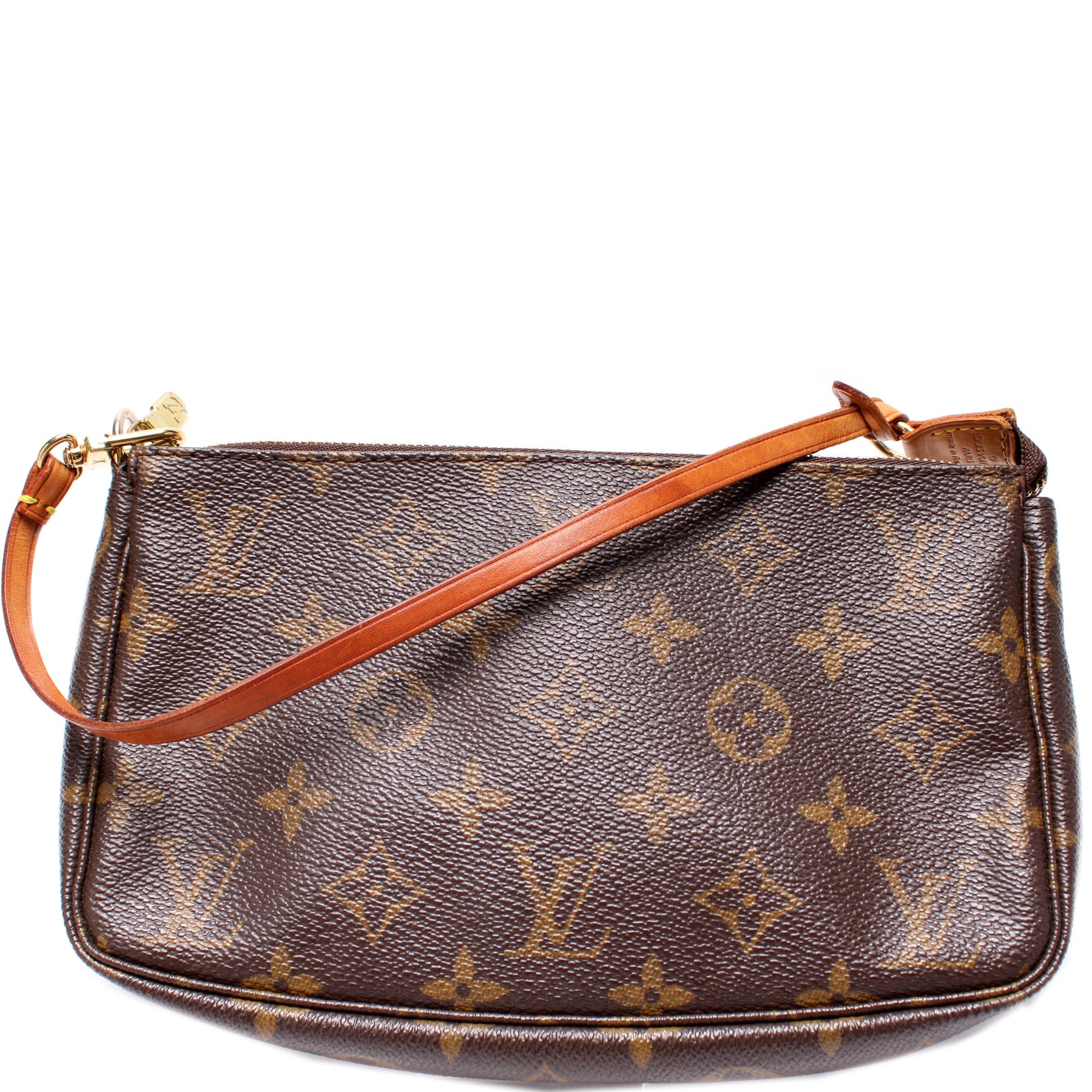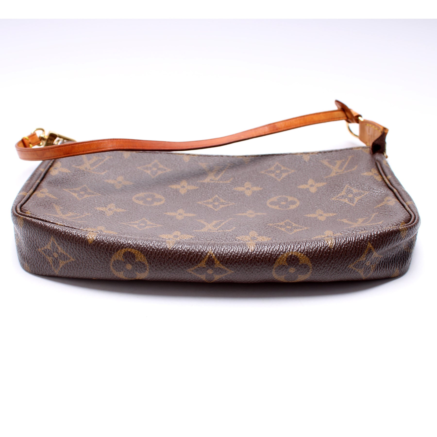 This pre-owned Louis Vuitton Pochette Accessories is guaranteed 100% authentic. The exterior is in the classic Louis Vuitton Monogram coated canvas.