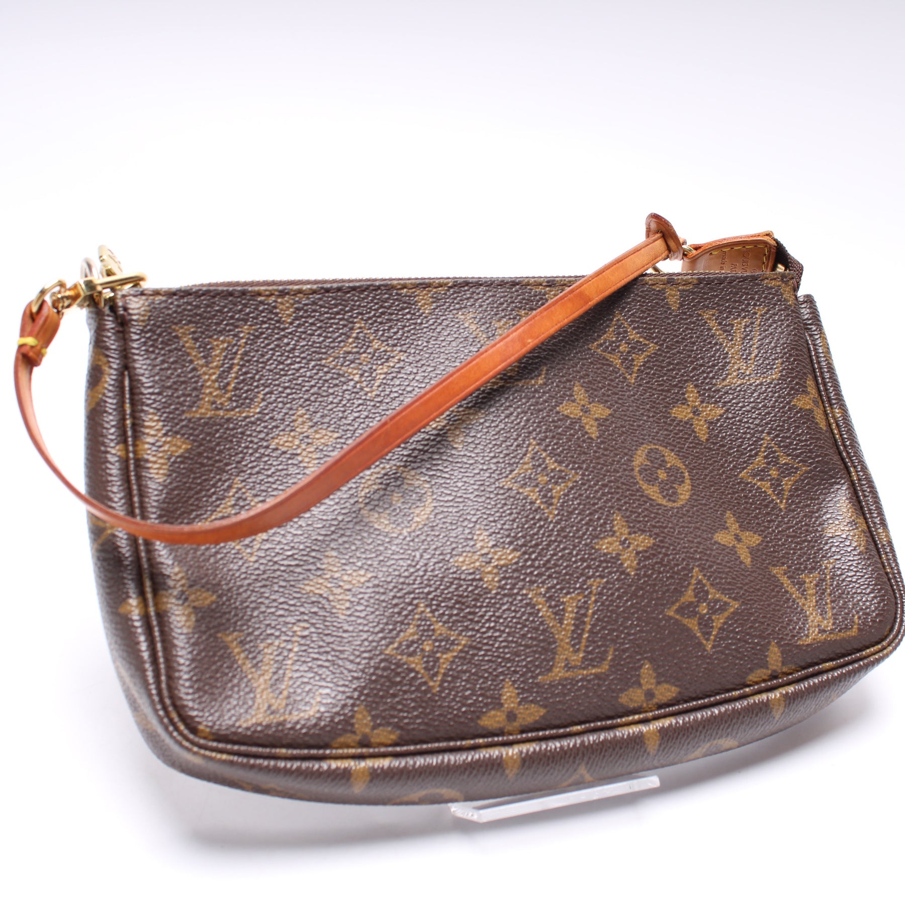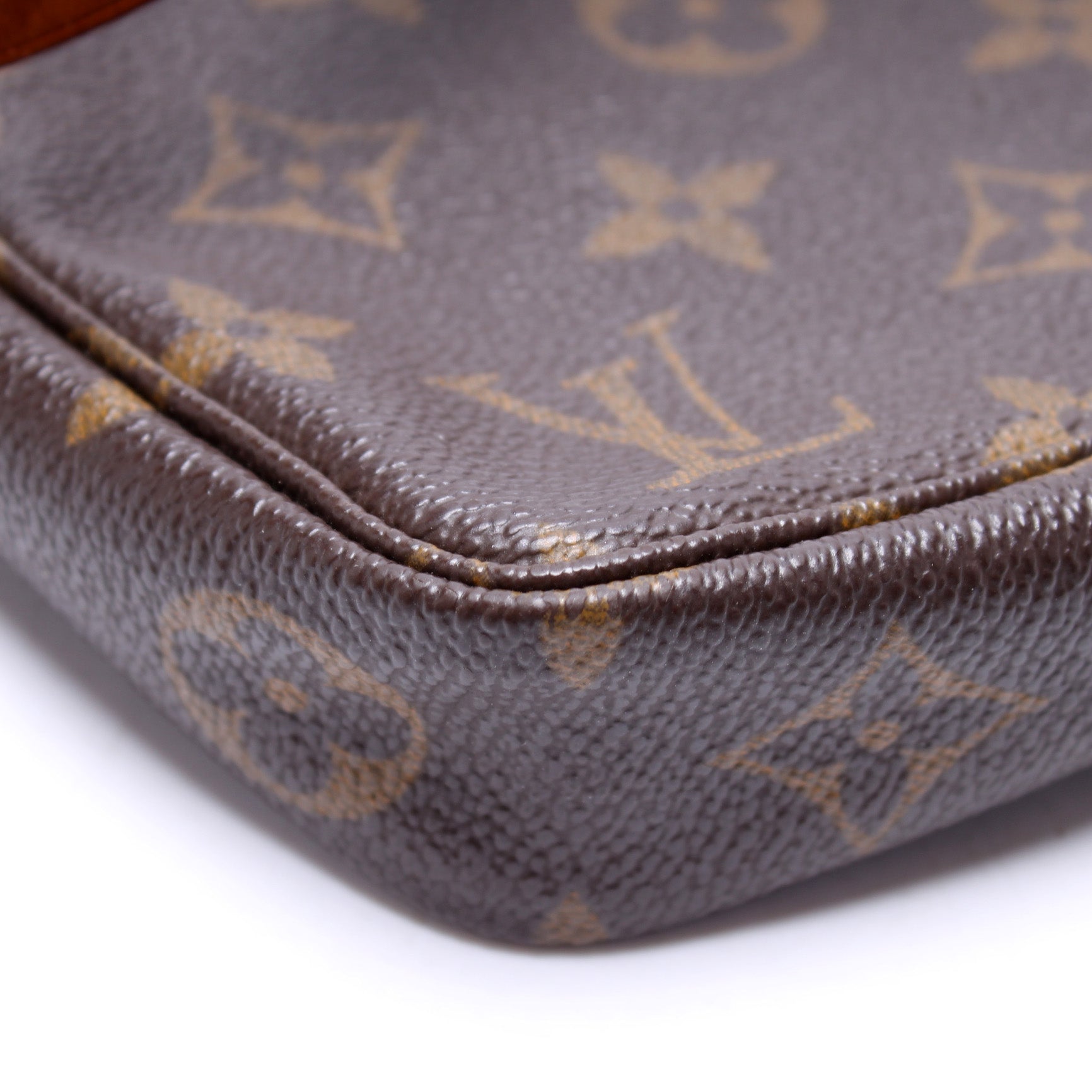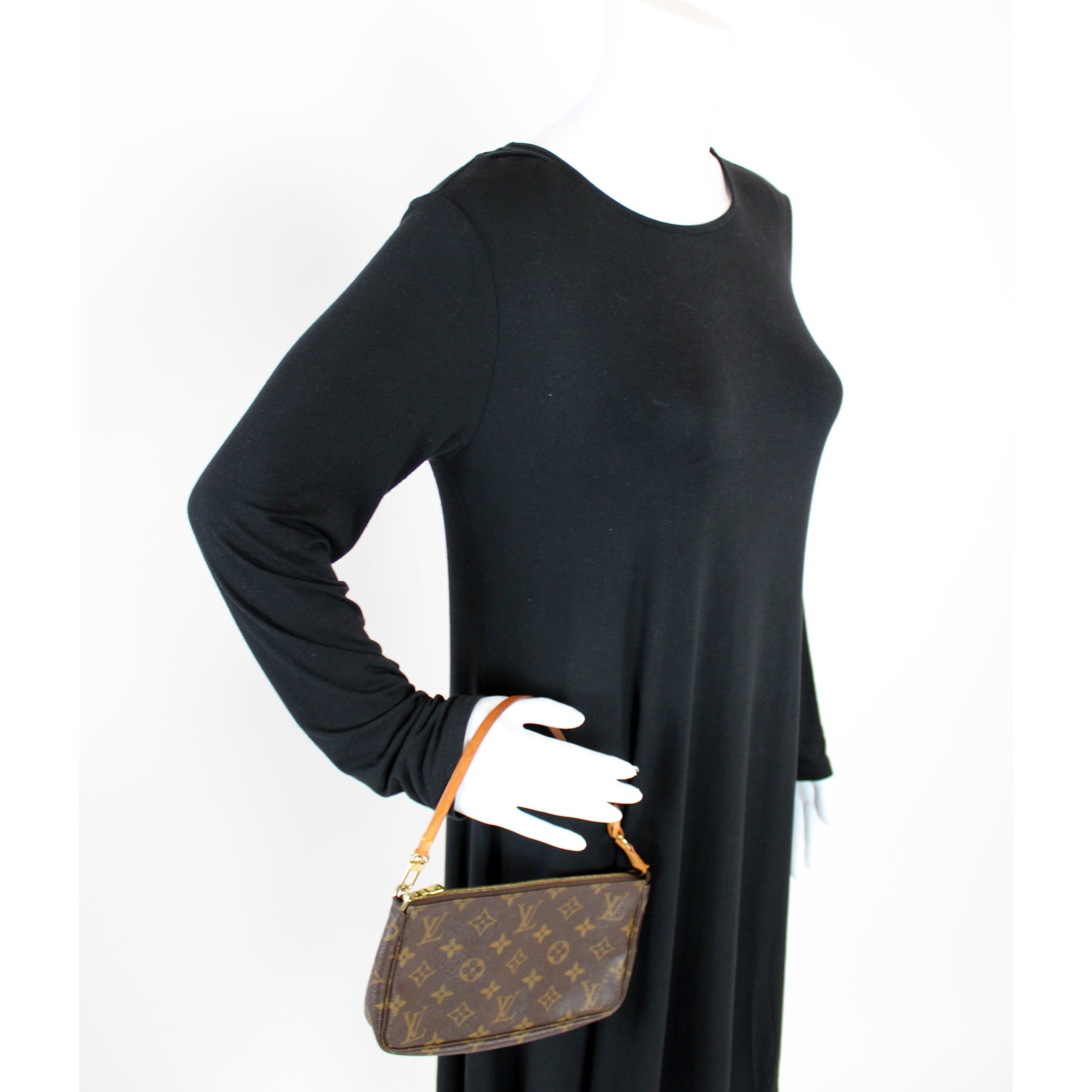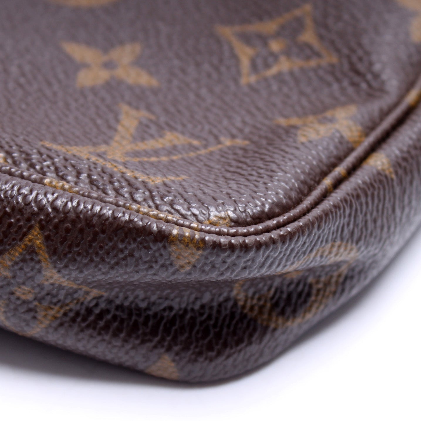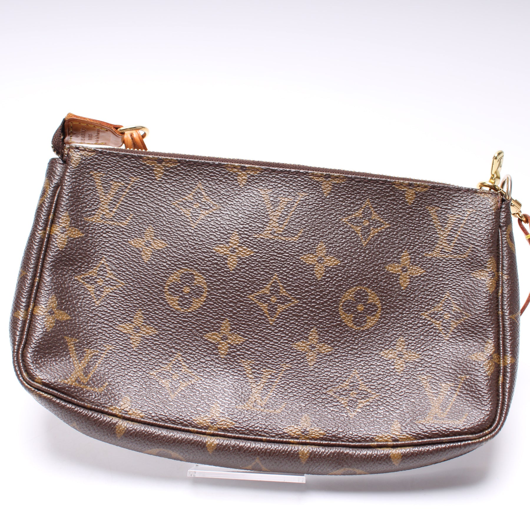 This pre-owned Louis Vuitton Pochette Accessories is guaranteed 100% authentic. The exterior is in the classic Louis Vuitton Monogram coated canvas.