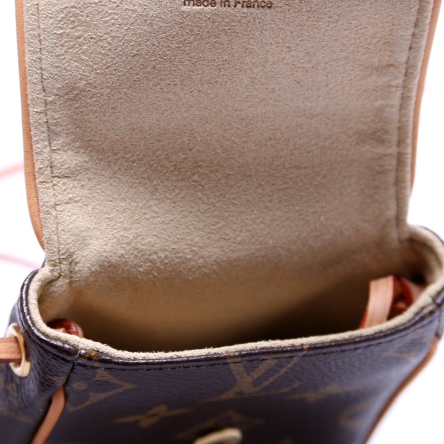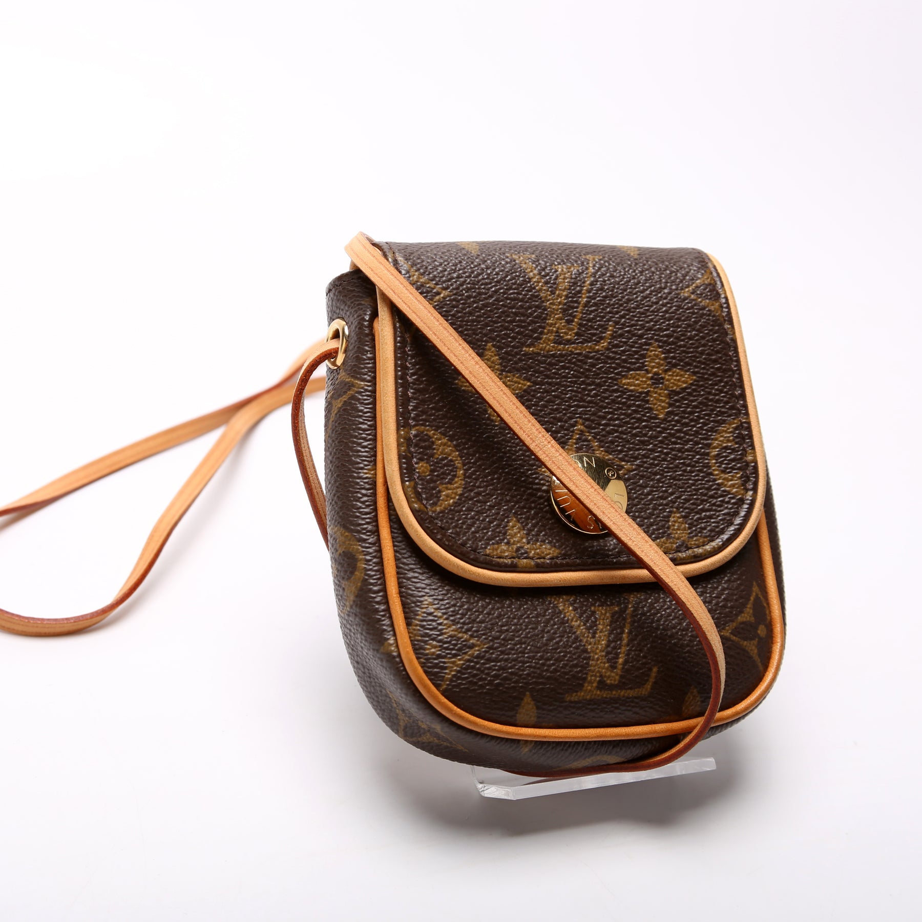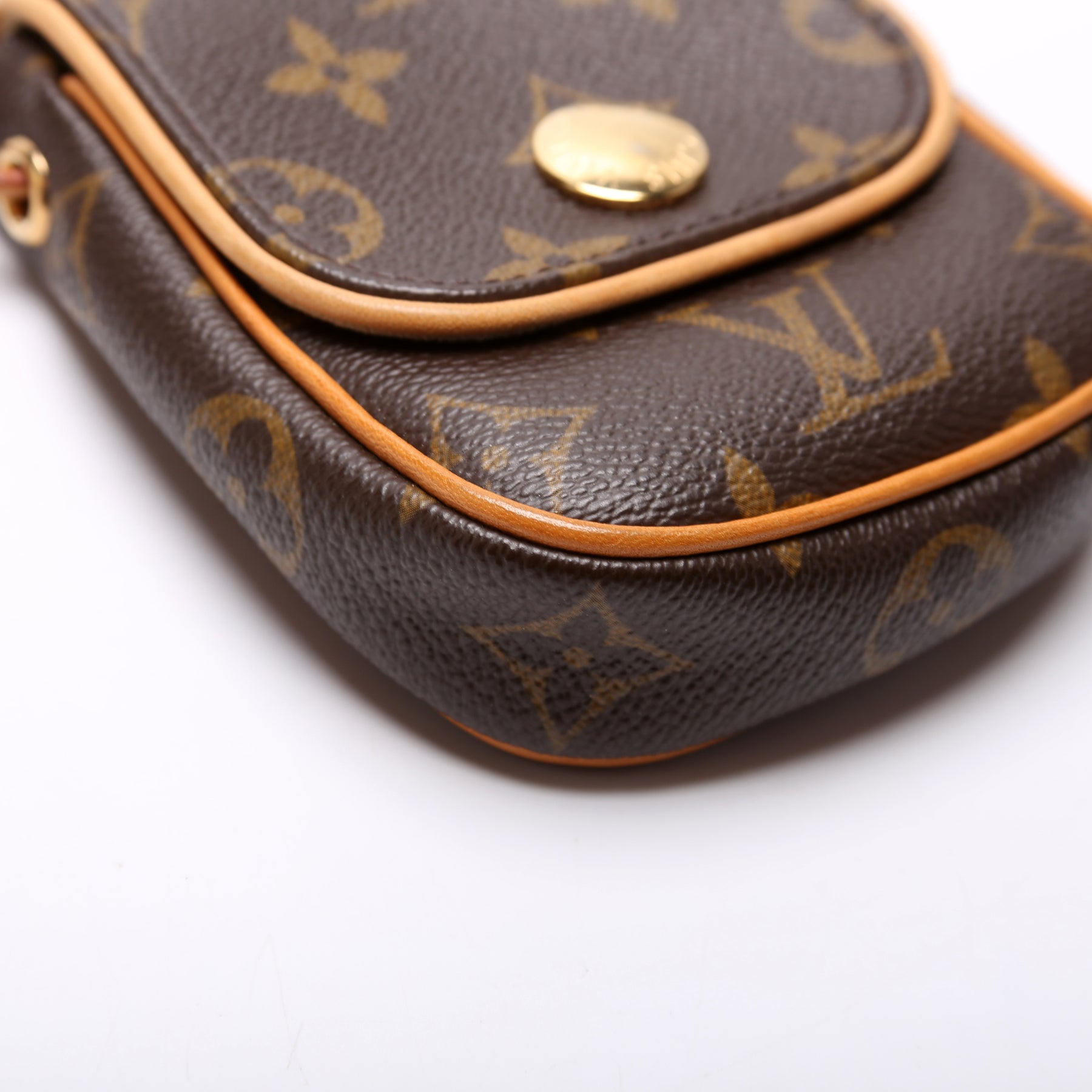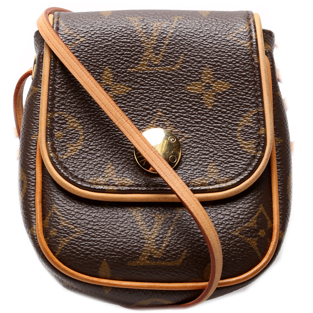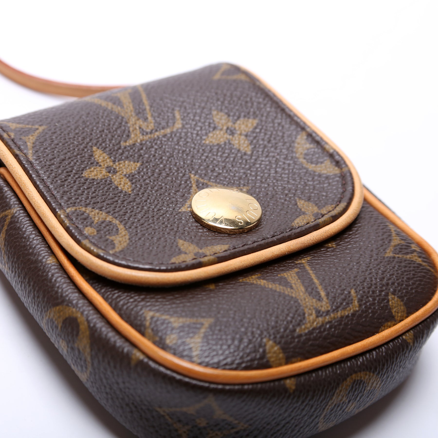 This pre-owned Louis Vuitton Pochette Cancun Crossbody is guaranteed 100% authentic. The exterior is in the classic Louis Vuitton Monogram Coated Canvas.
