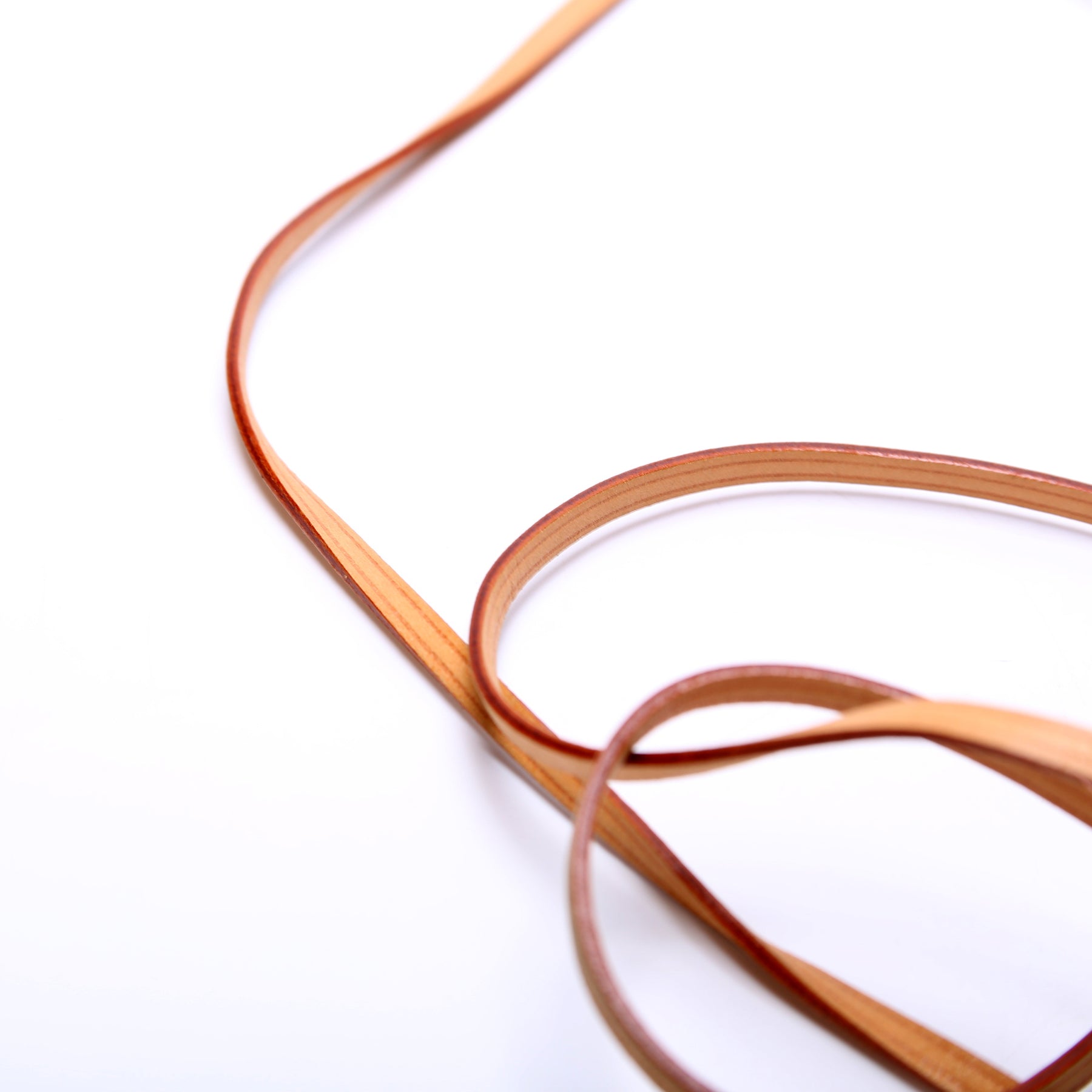 Shoulder Strap: The leather shoulder strap shows light discoloration and wear.