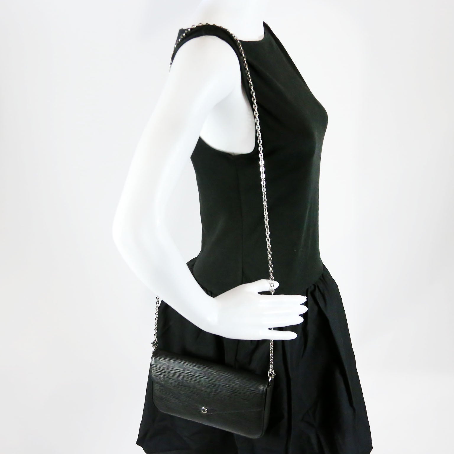 This pre-owned Louis Vuitton Pochette Felicie is guaranteed 100% authentic. The exterior is in the classic Louis Vuitton Epi leather.