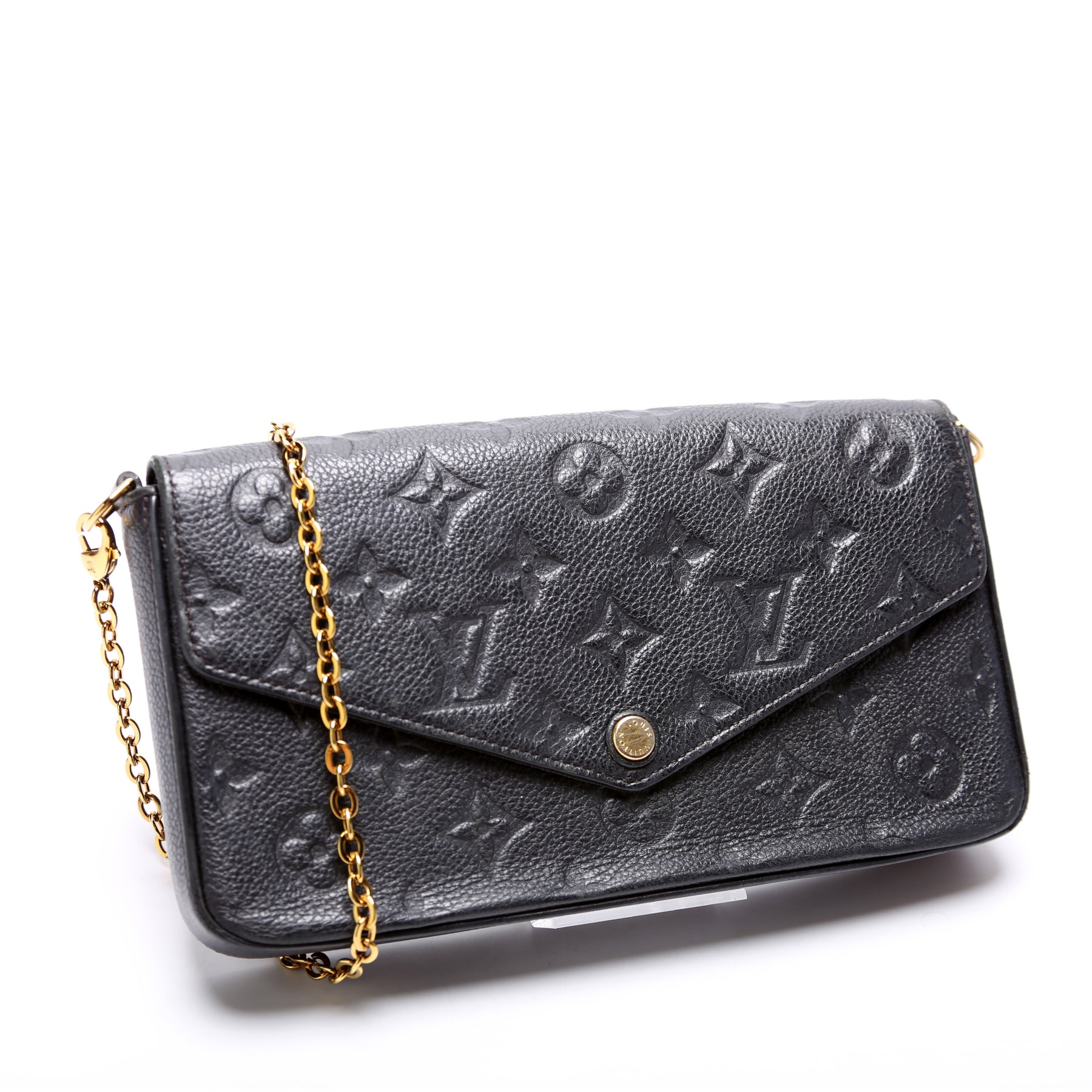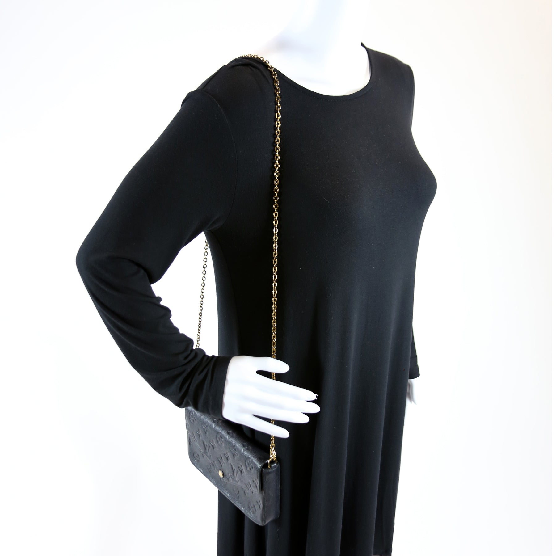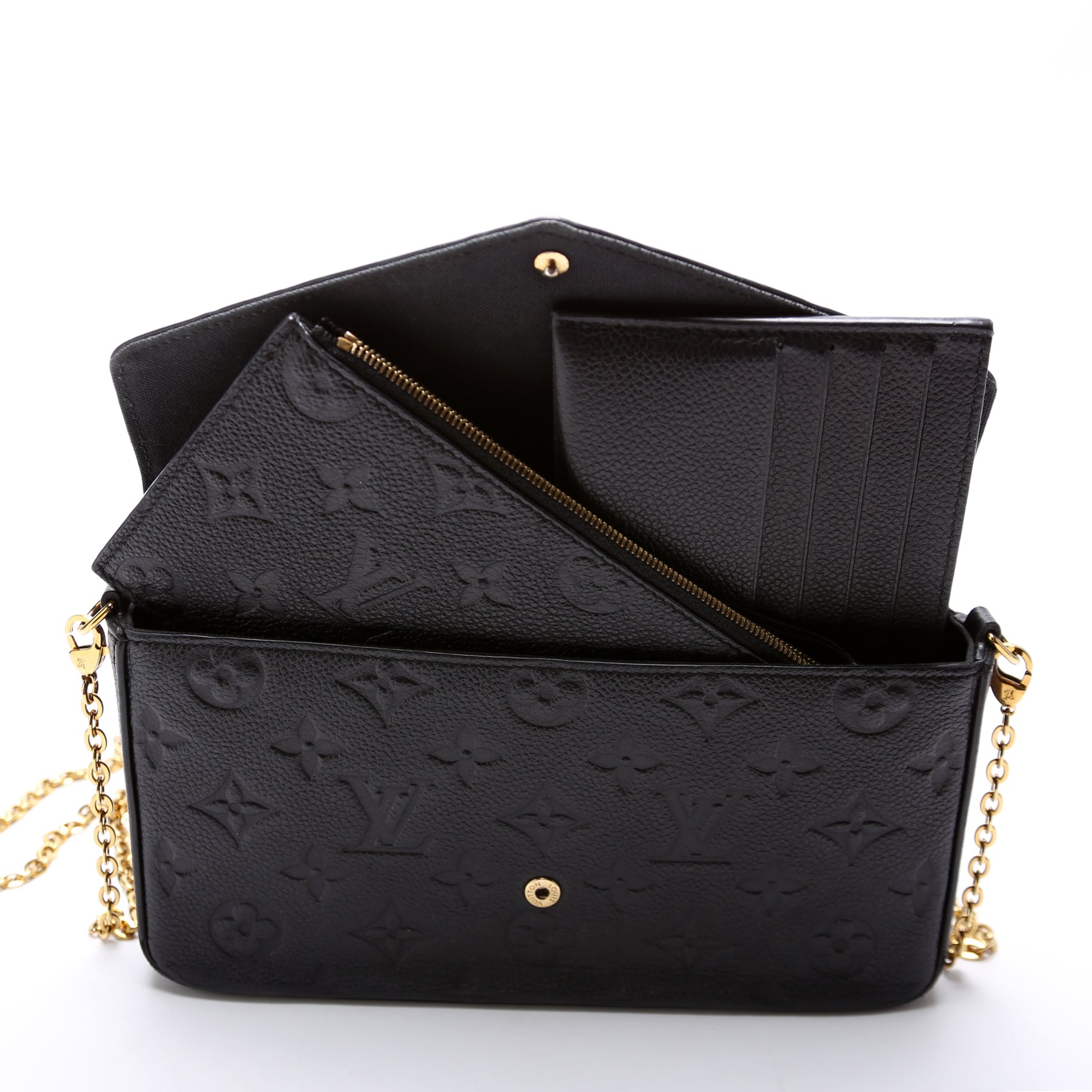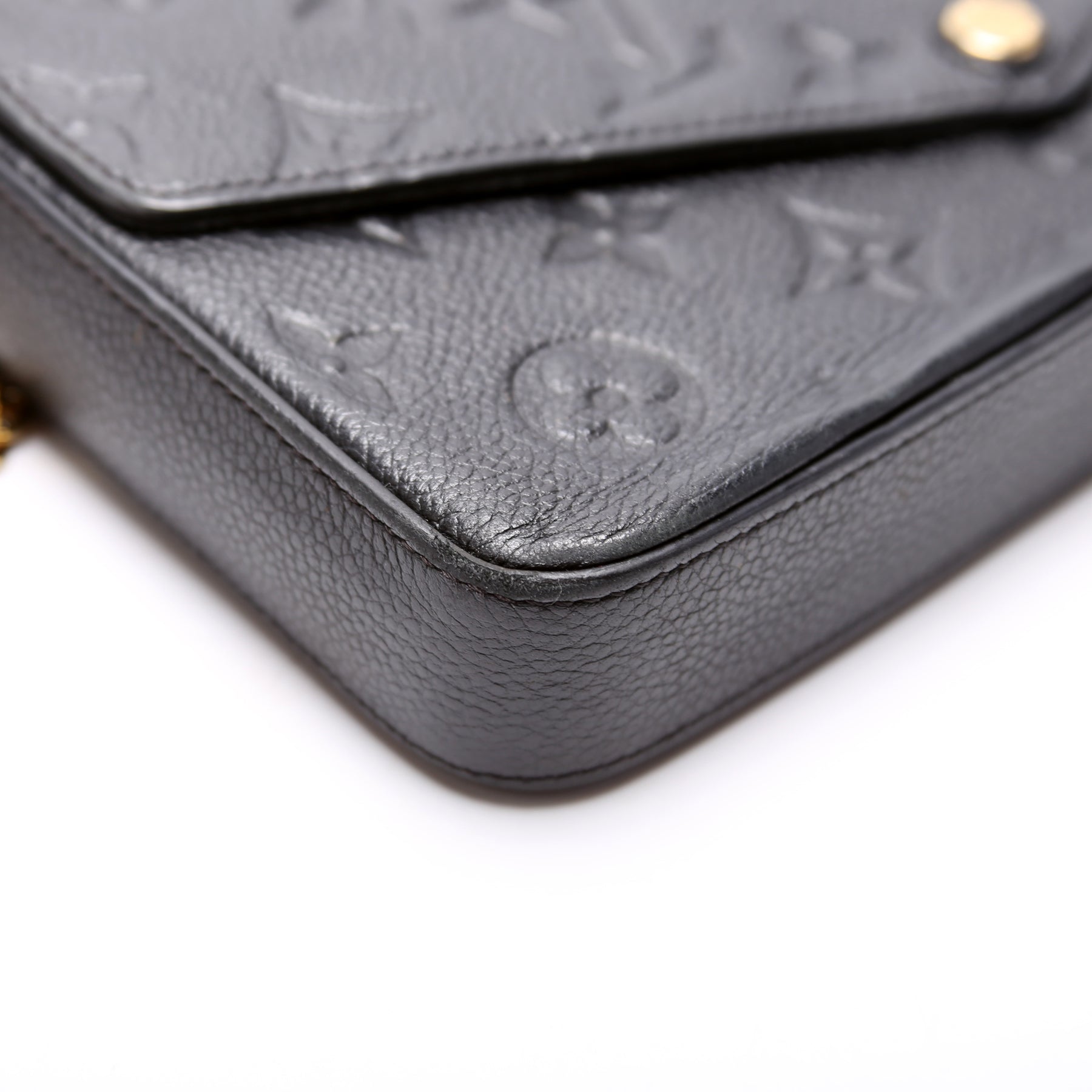 This pre-owned Louis Vuitton Pochette Felicie is guaranteed 100% authentic. The exterior is in the classic Louis Vuitton Empreinte leather.