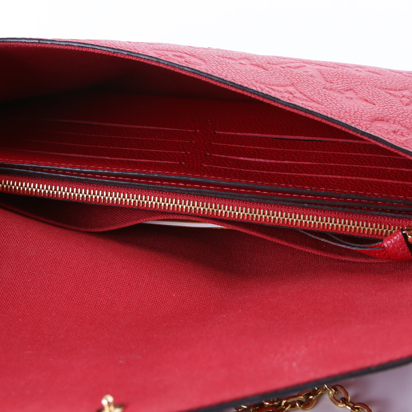This pre-owned Louis Vuitton Pochette Felicie is guaranteed 100% authentic. The exterior is in the classic Louis Vuitton Empreinte leather.