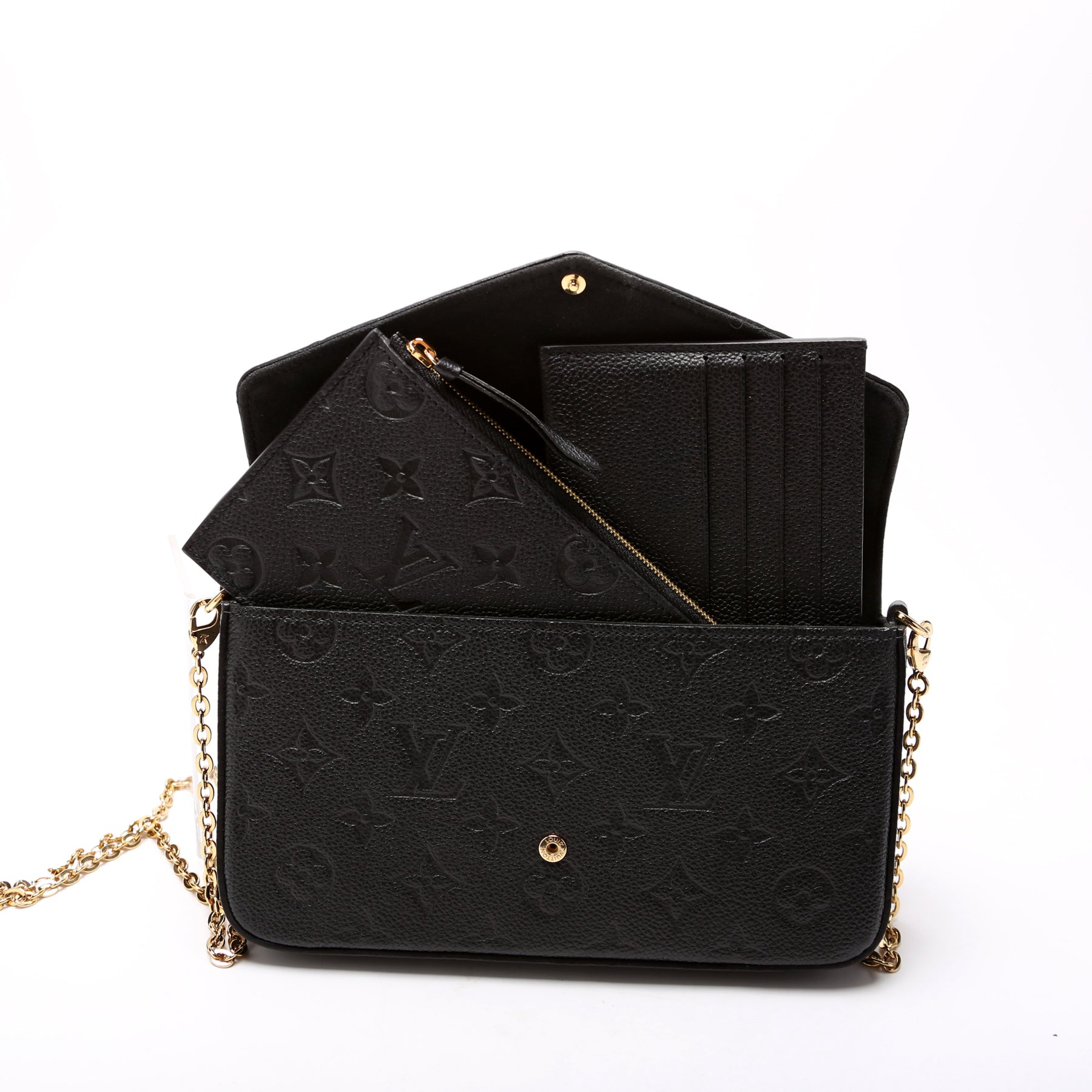 This pre-owned Louis Vuitton Pochette Felicie is guaranteed 100% authentic. The exterior is in the classic Louis Vuitton Empreinte leather.