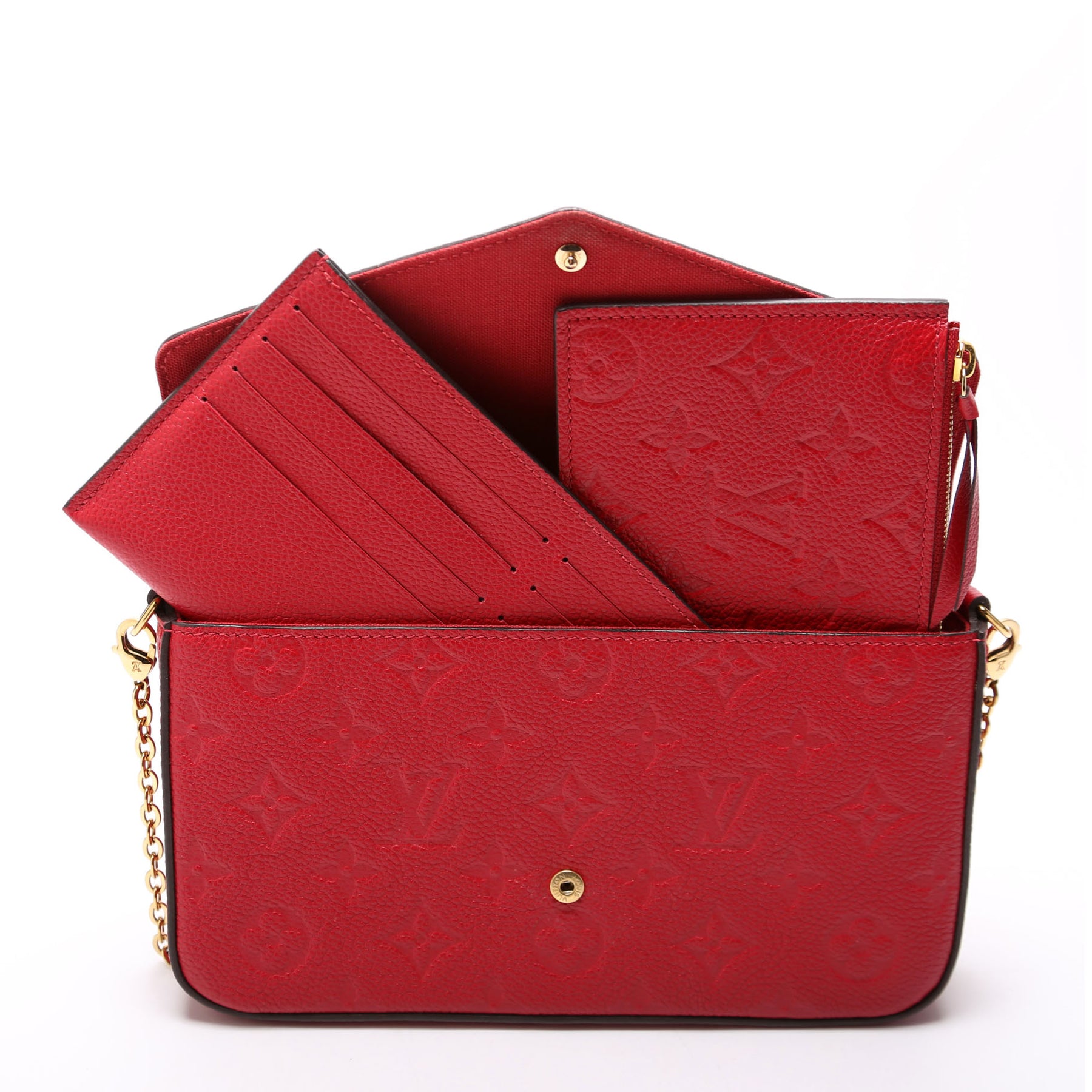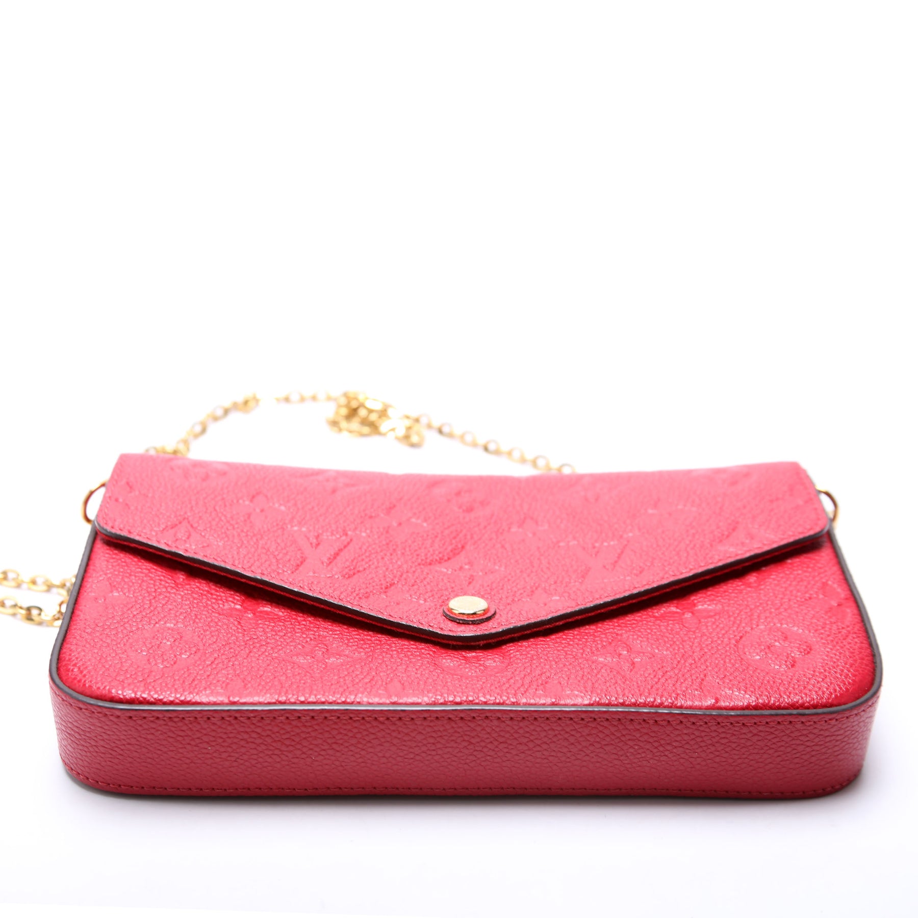 This pre-owned Louis Vuitton Pochette Felicie is guaranteed 100% authentic. The exterior is in the classic Louis Vuitton Empreinte leather.
