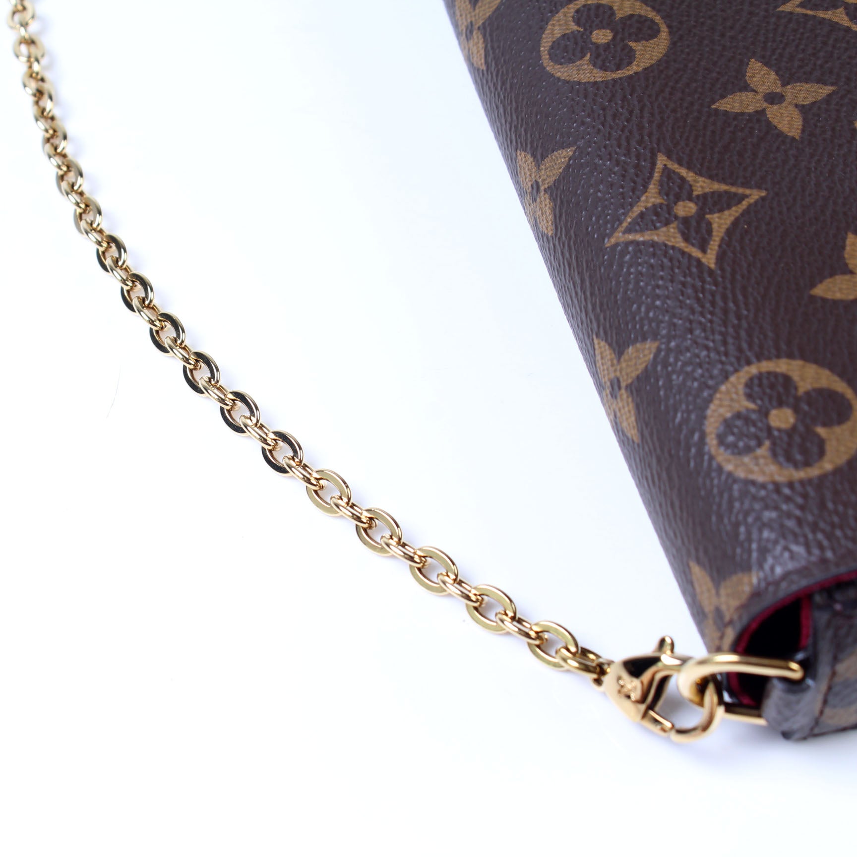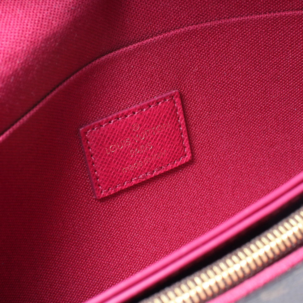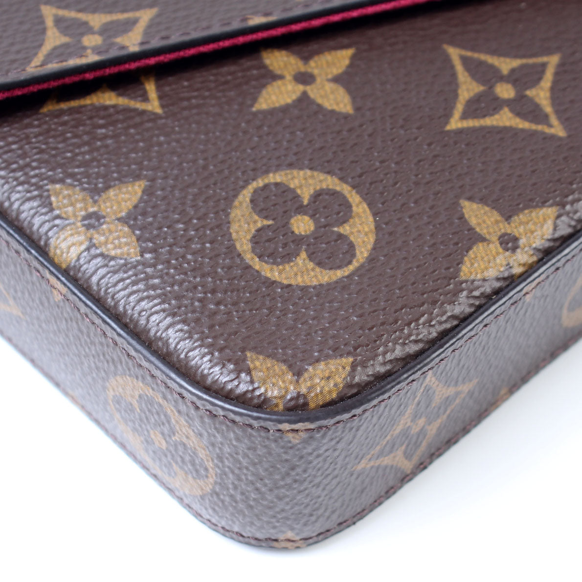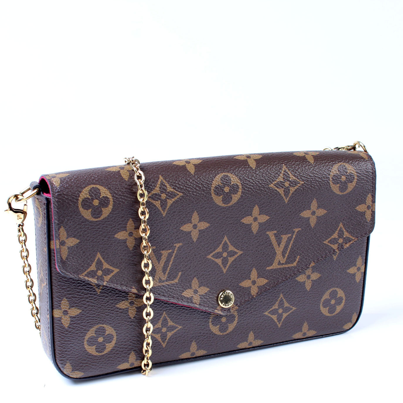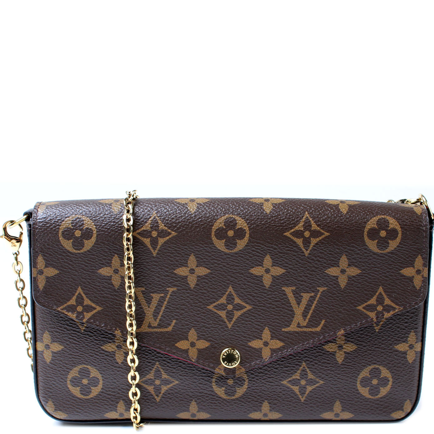 This pre-owned Louis Vuitton Pochette Felicie is guaranteed 100% authentic. The exterior is in the classic Louis Vuitton Monogram coated canvas.