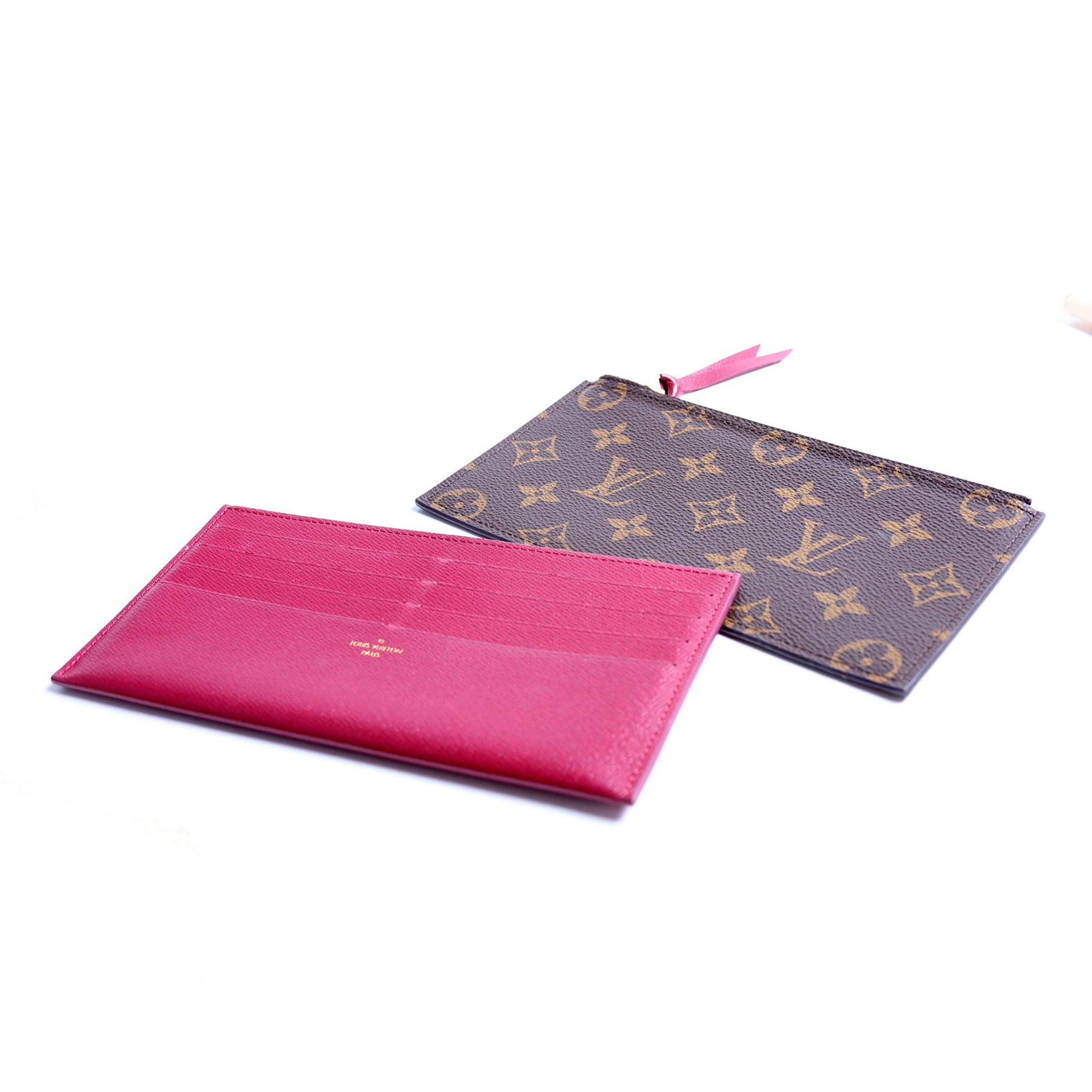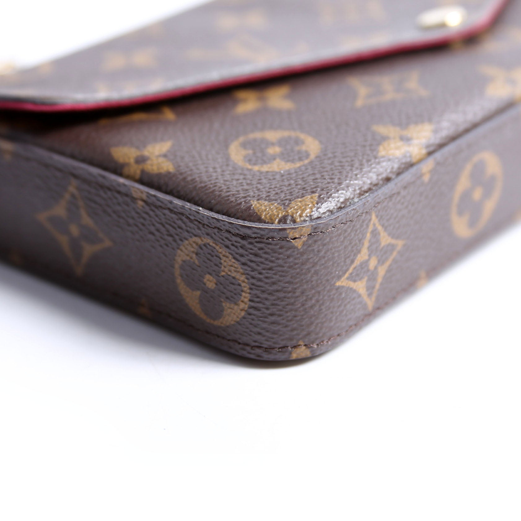 This pre-owned Louis Vuitton Pochette Felicie is guaranteed 100% authentic. The exterior is in the classic Louis Vuitton Monogram coated canvas