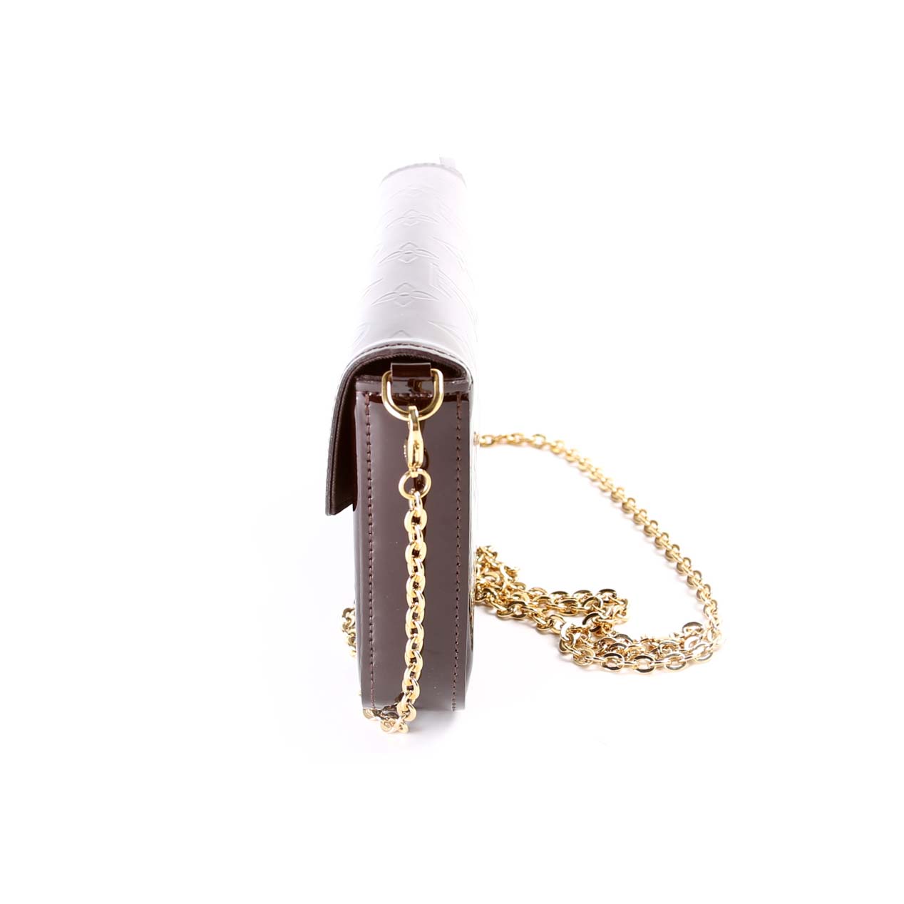 This pre-owned Louis Vuitton Pochette Felicie is guaranteed 100% authentic. The exterior is in the classic Louis Vuitton Vernis leather.