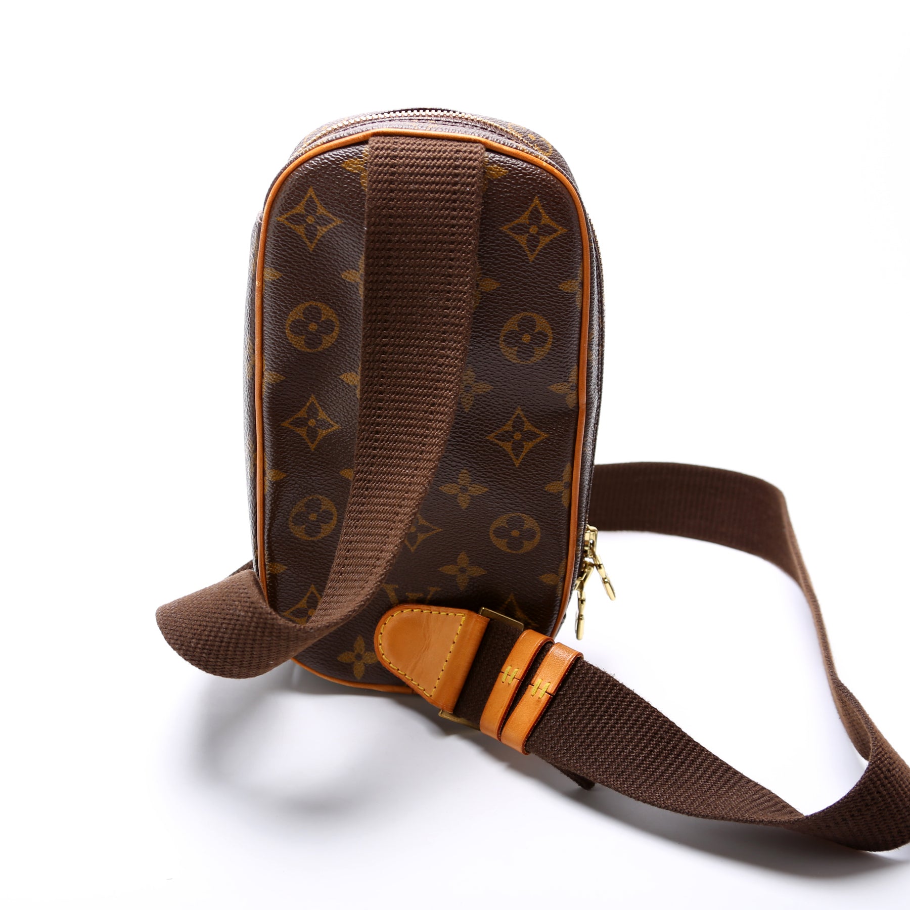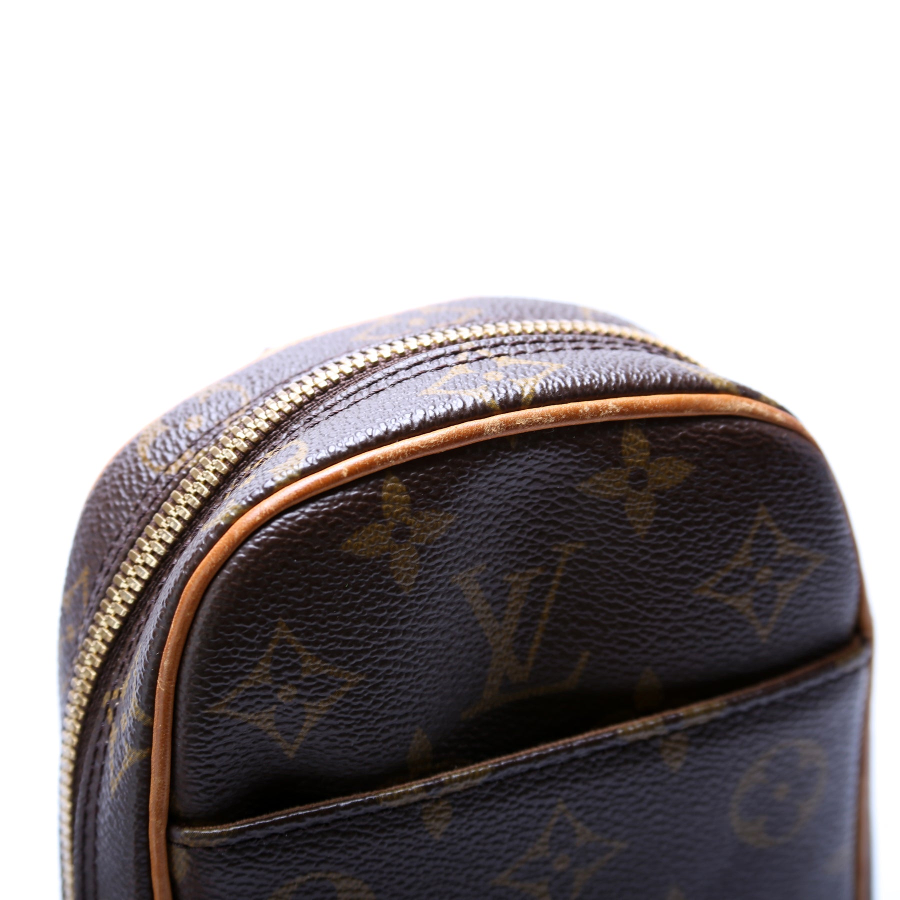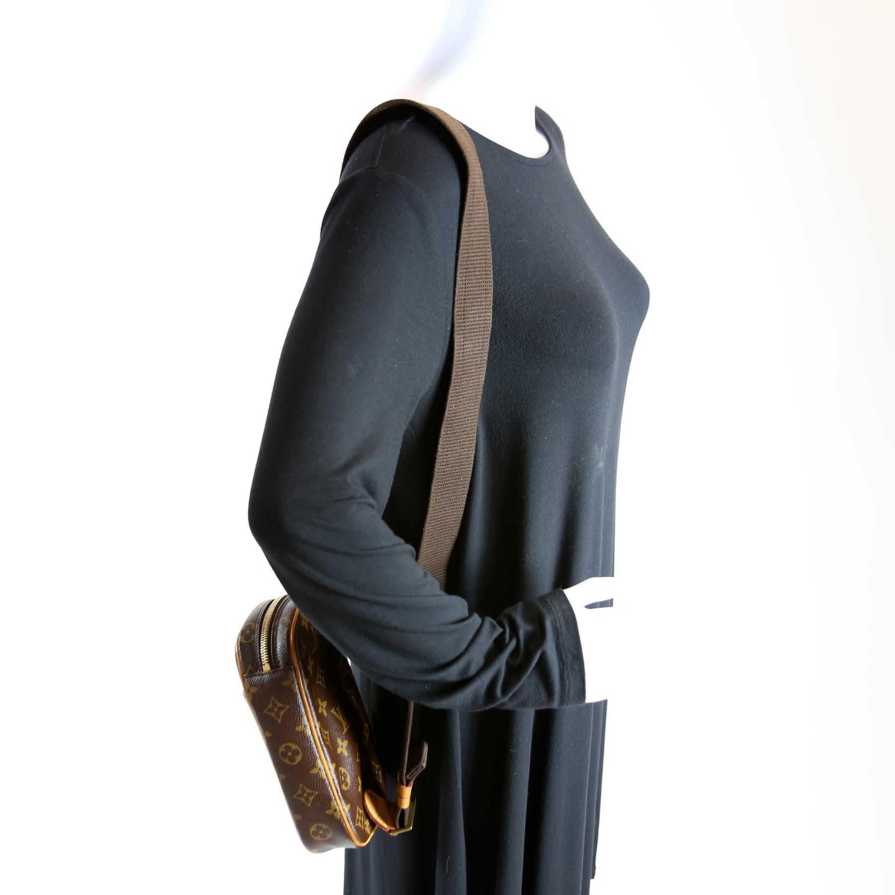 This pre-owned Louis Vuitton Pochette Gange is guaranteed 100% authentic. The exterior is in the classic Louis Vuitton Monogram coated canvas.