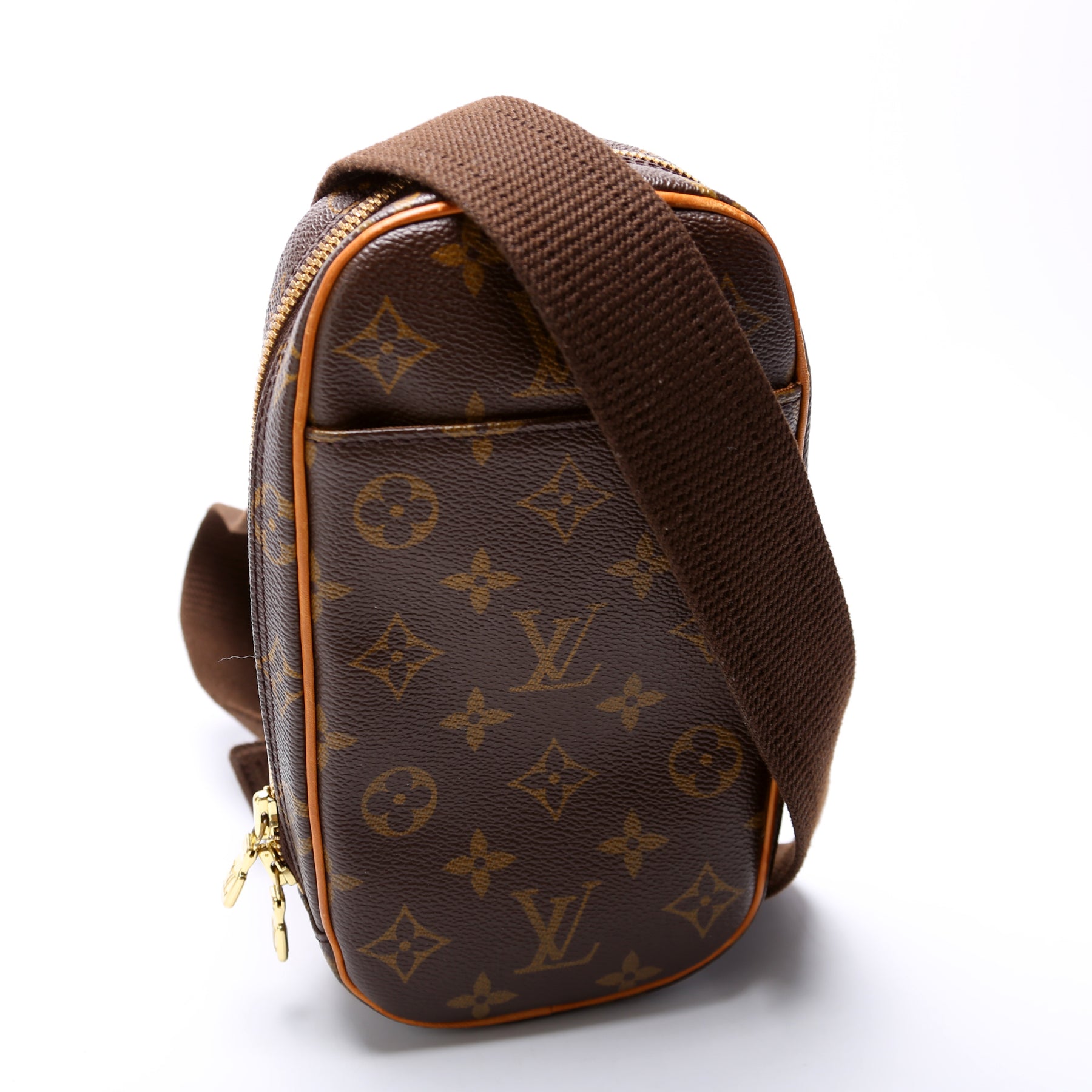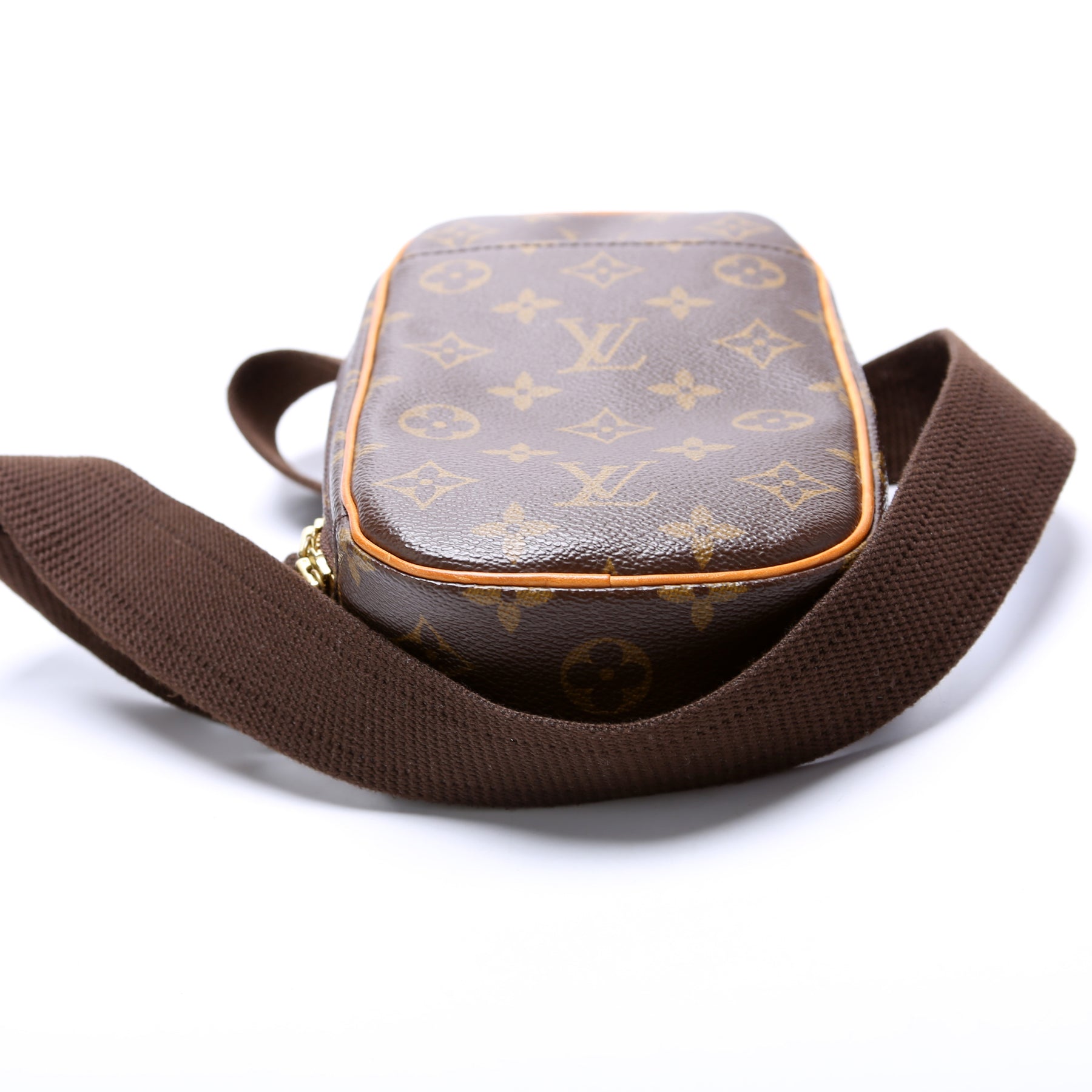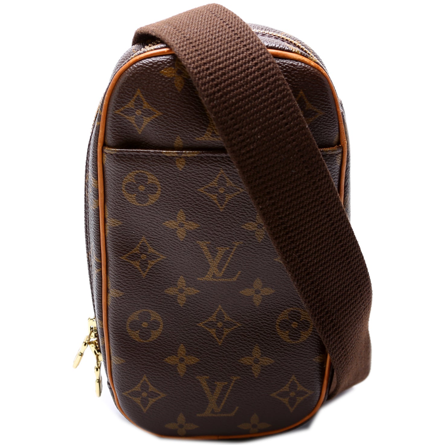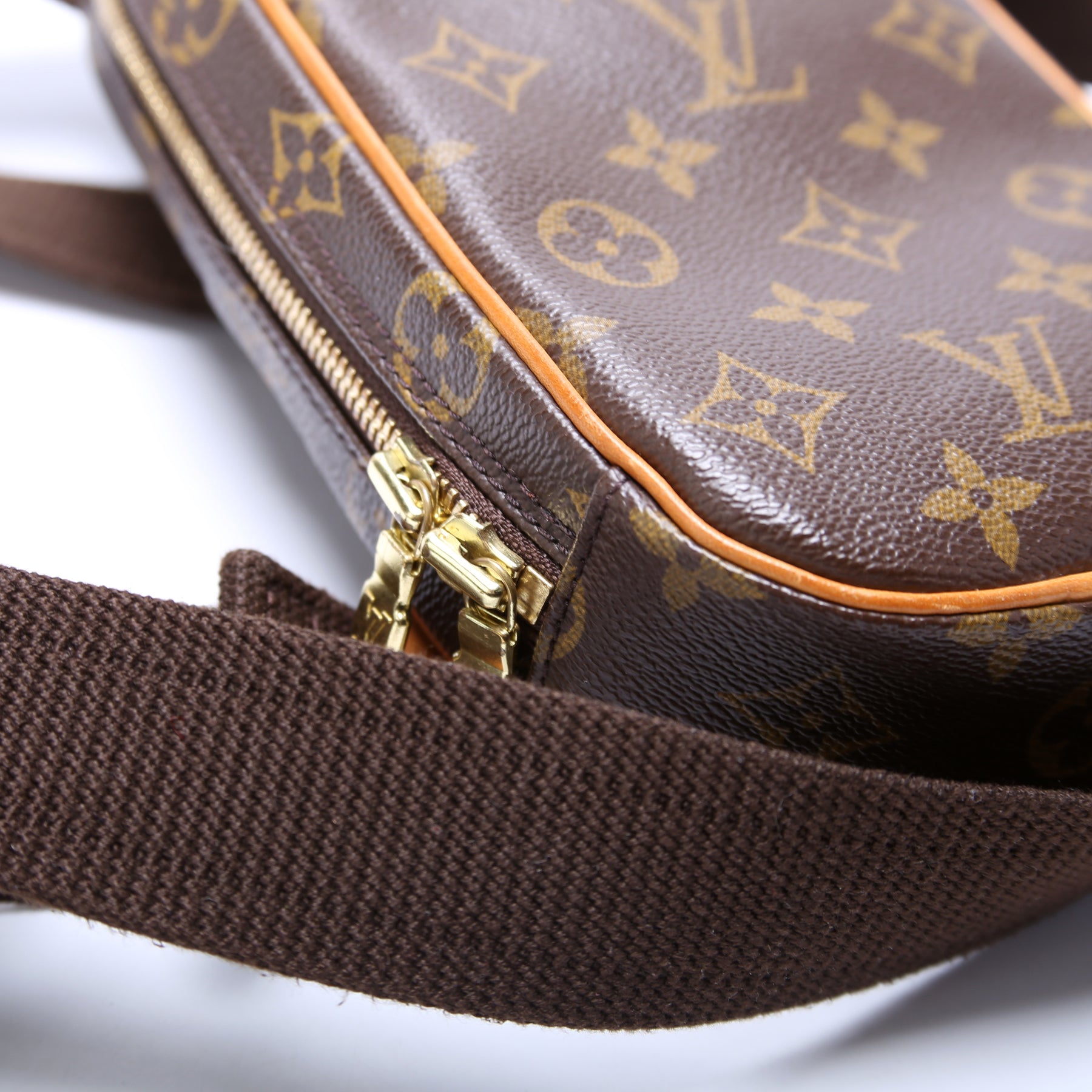 This pre-owned Louis Vuitton Pochette Gange is guaranteed 100% authentic. The exterior is in the classic Louis Vuitton Monogram coated canvas.