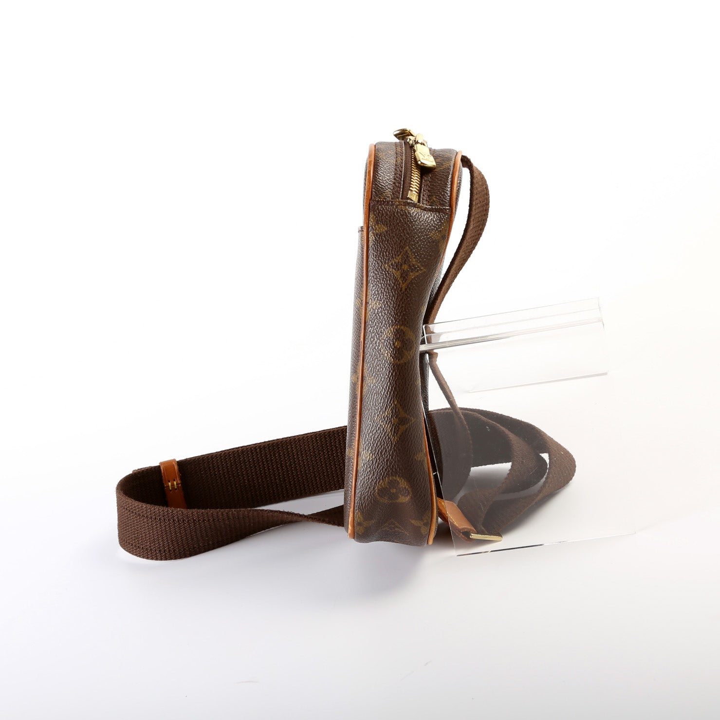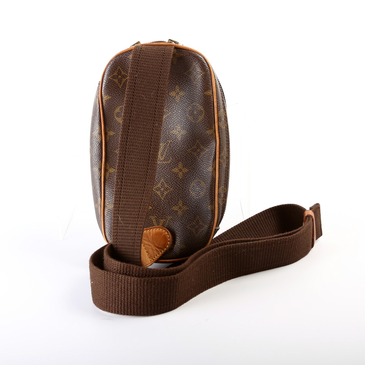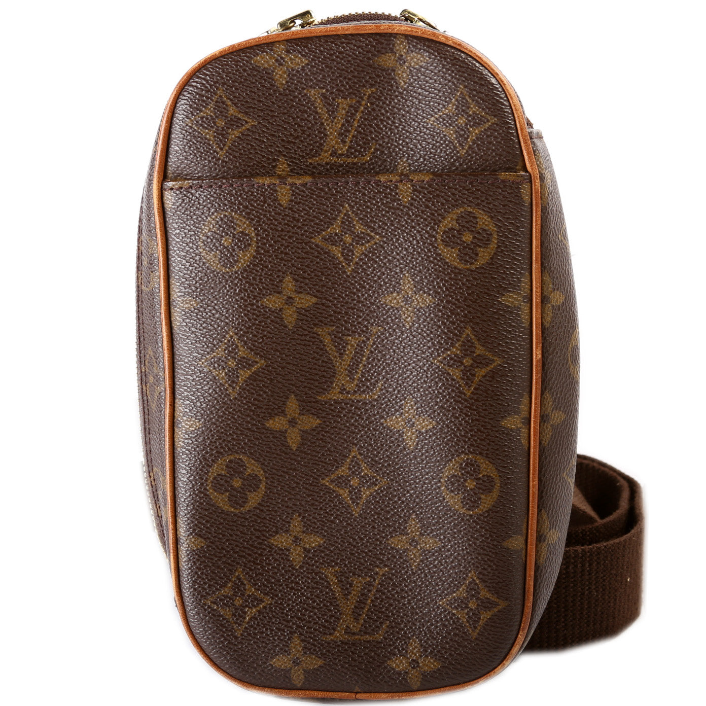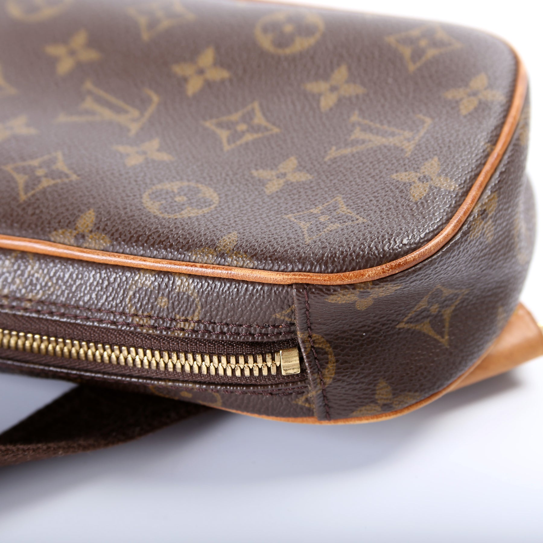 This pre-owned Louis Vuitton Pochette Gange is guaranteed 100% authentic. The exterior is in the classic Louis Vuitton Monogram coated canvas.