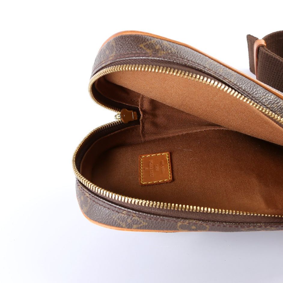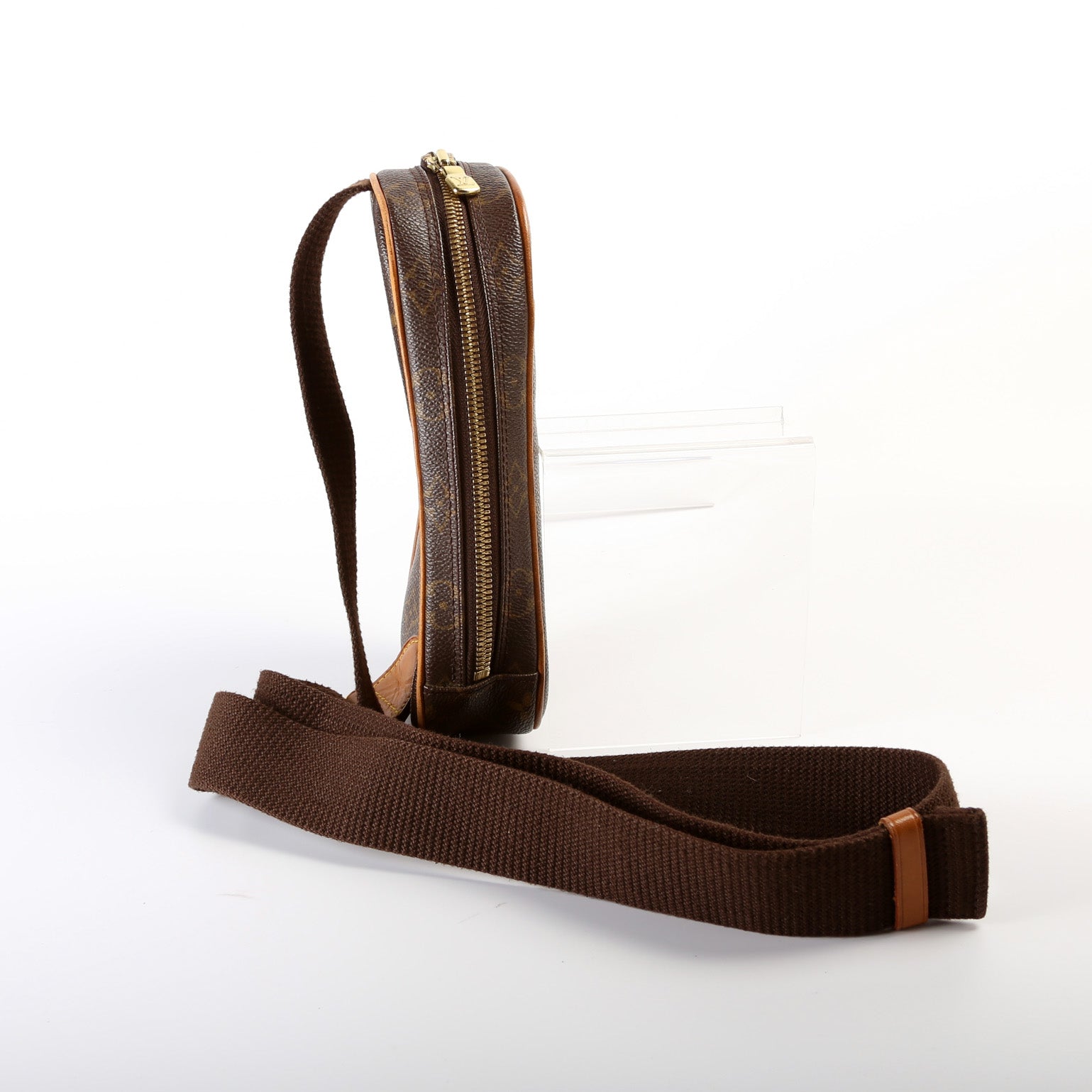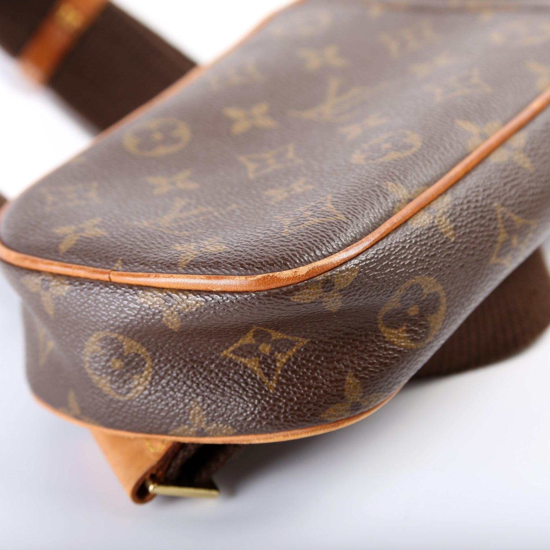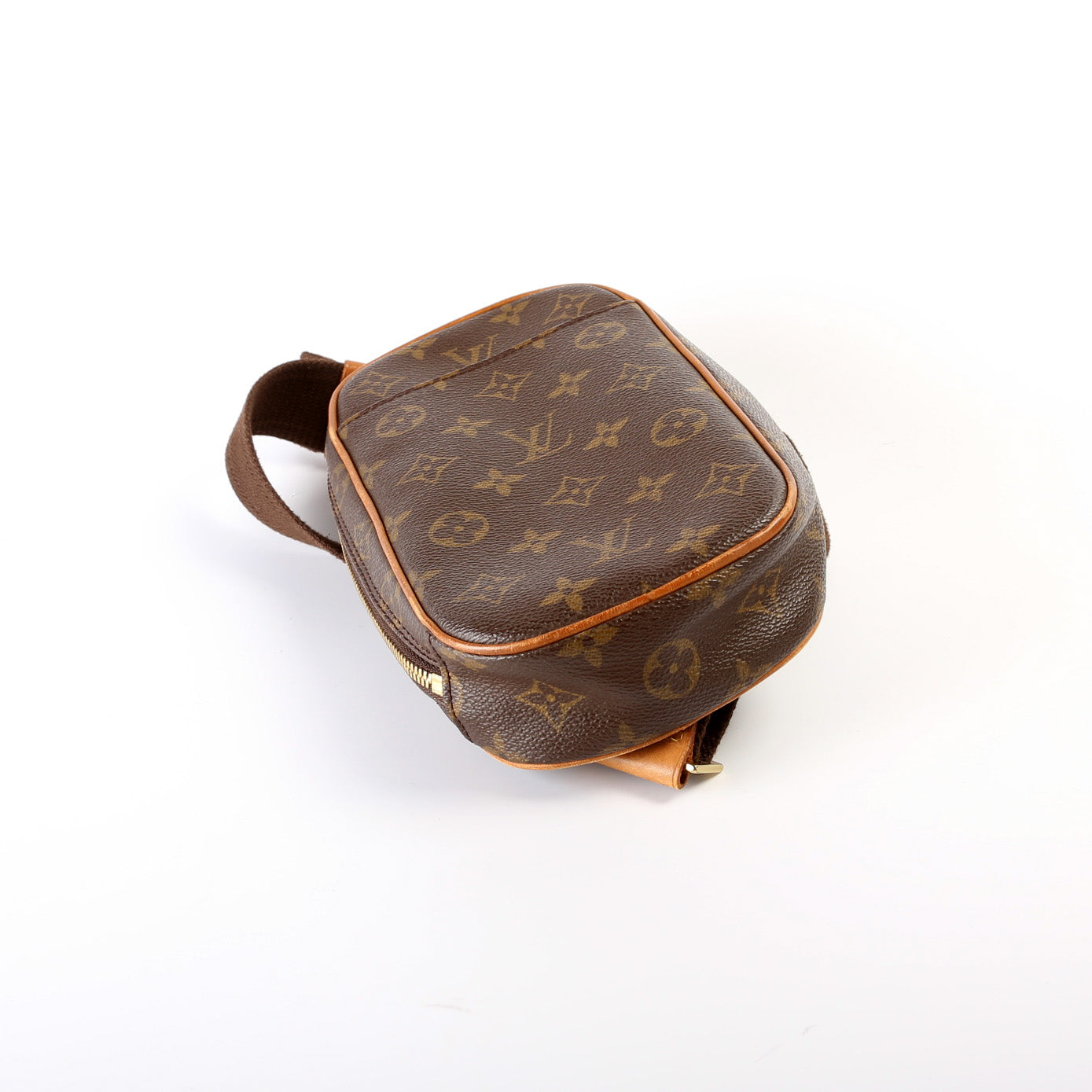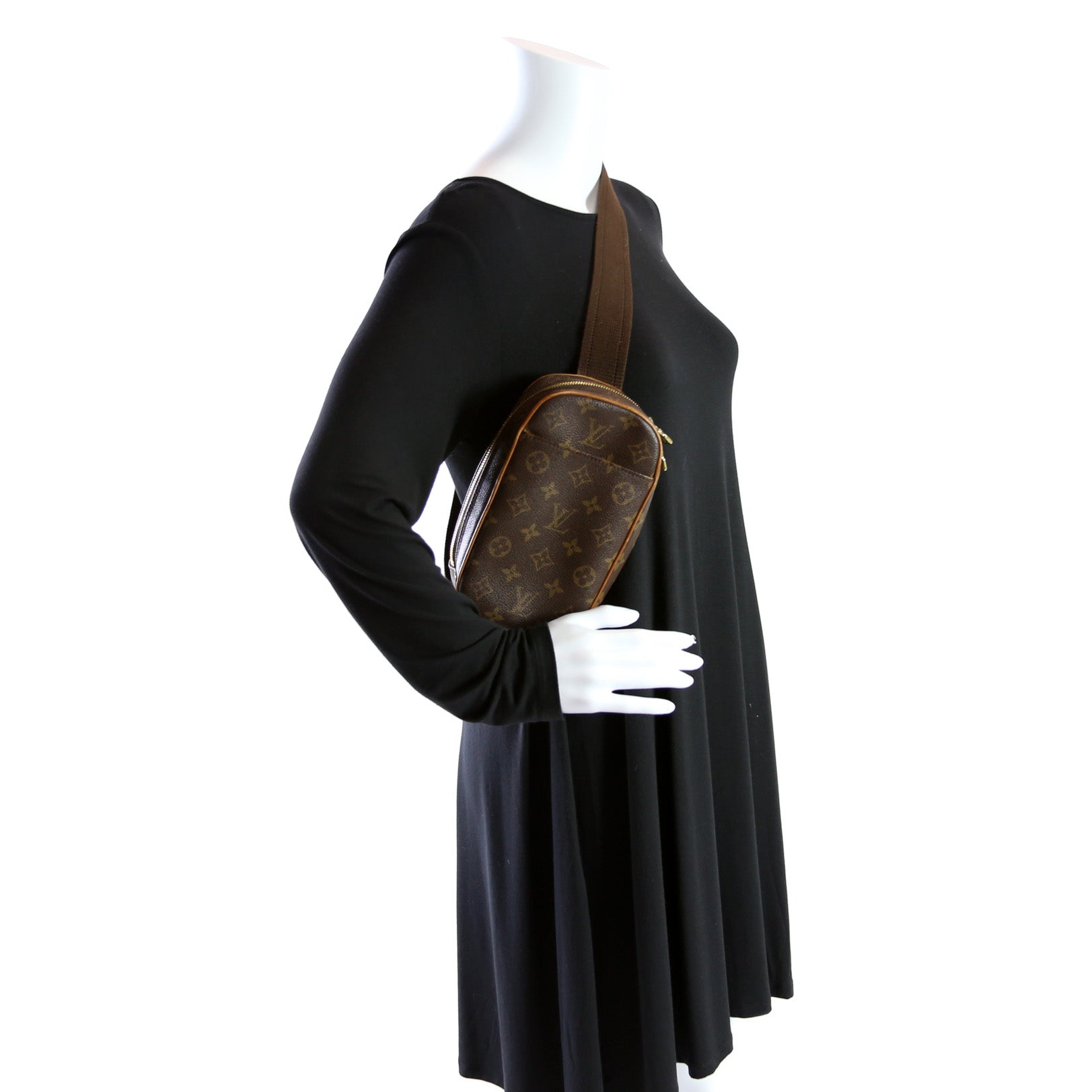 This pre-owned Louis Vuitton Pochette Gange is guaranteed 100% authentic. The exterior is in the classic Louis Vuitton Monogram coated canvas.