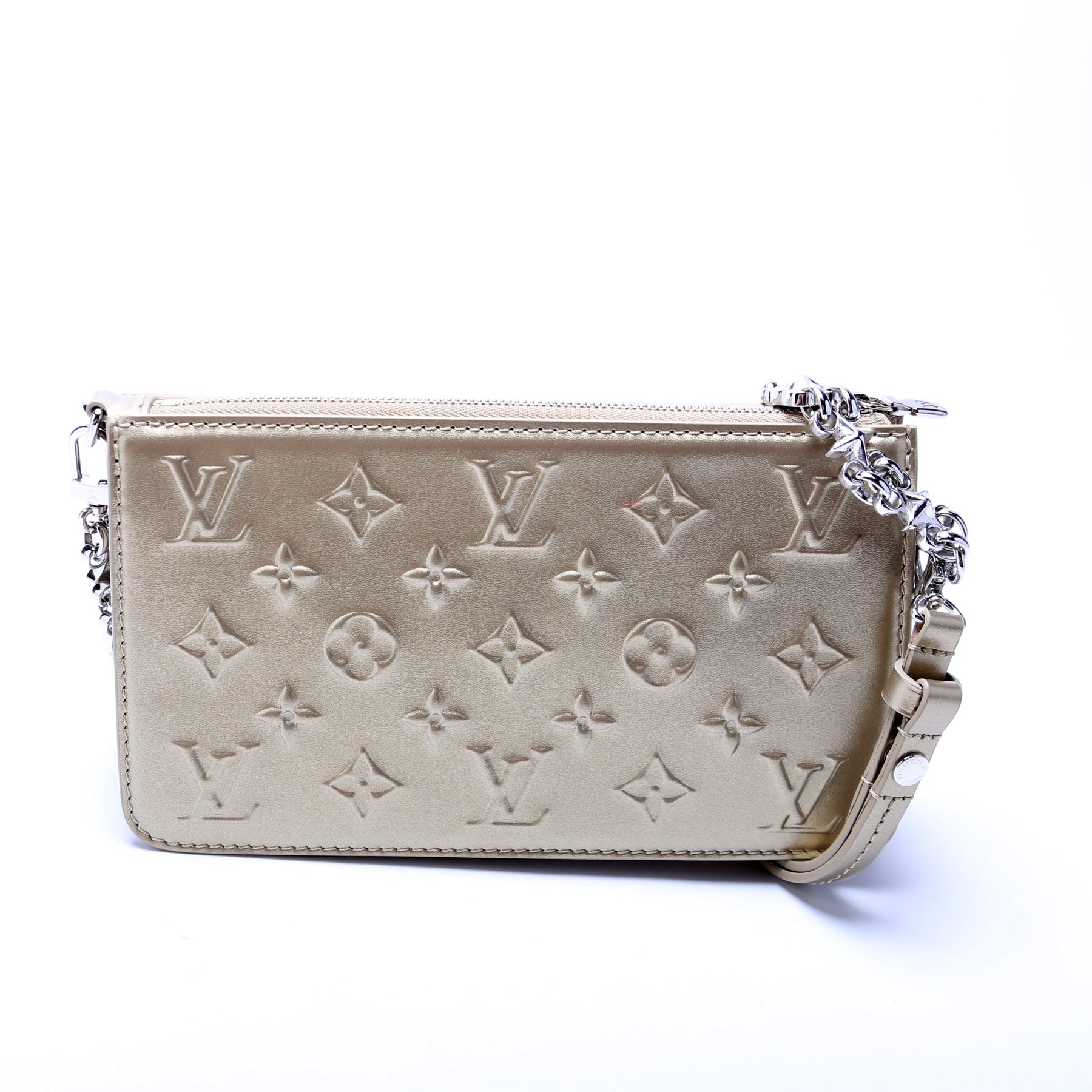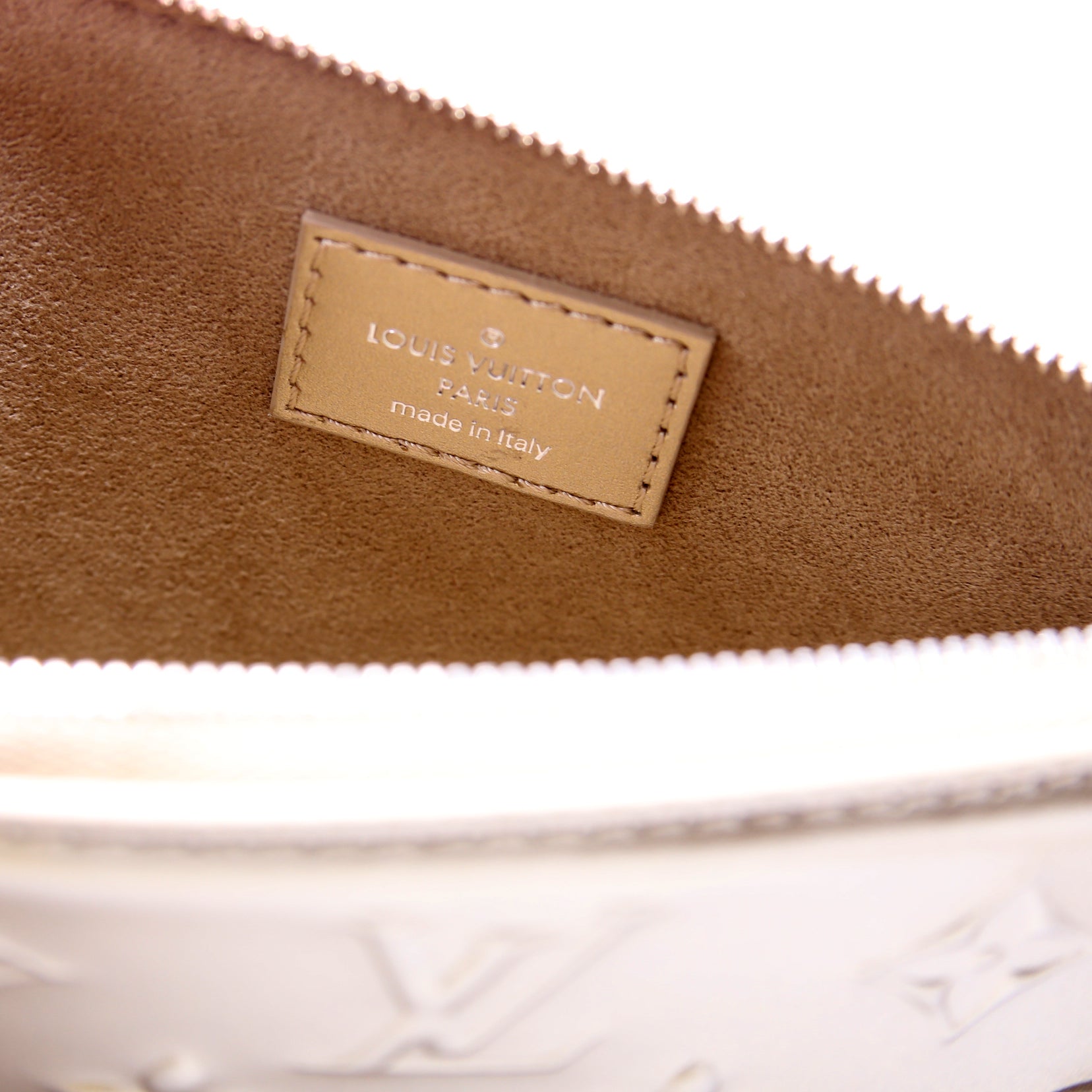 This pre-owned Louis Vuitton Pochette Lexington NV2 is guaranteed 100% authentic. The exterior is in the classic Louis Vuitton Debossed Calfskin Monogram leather.