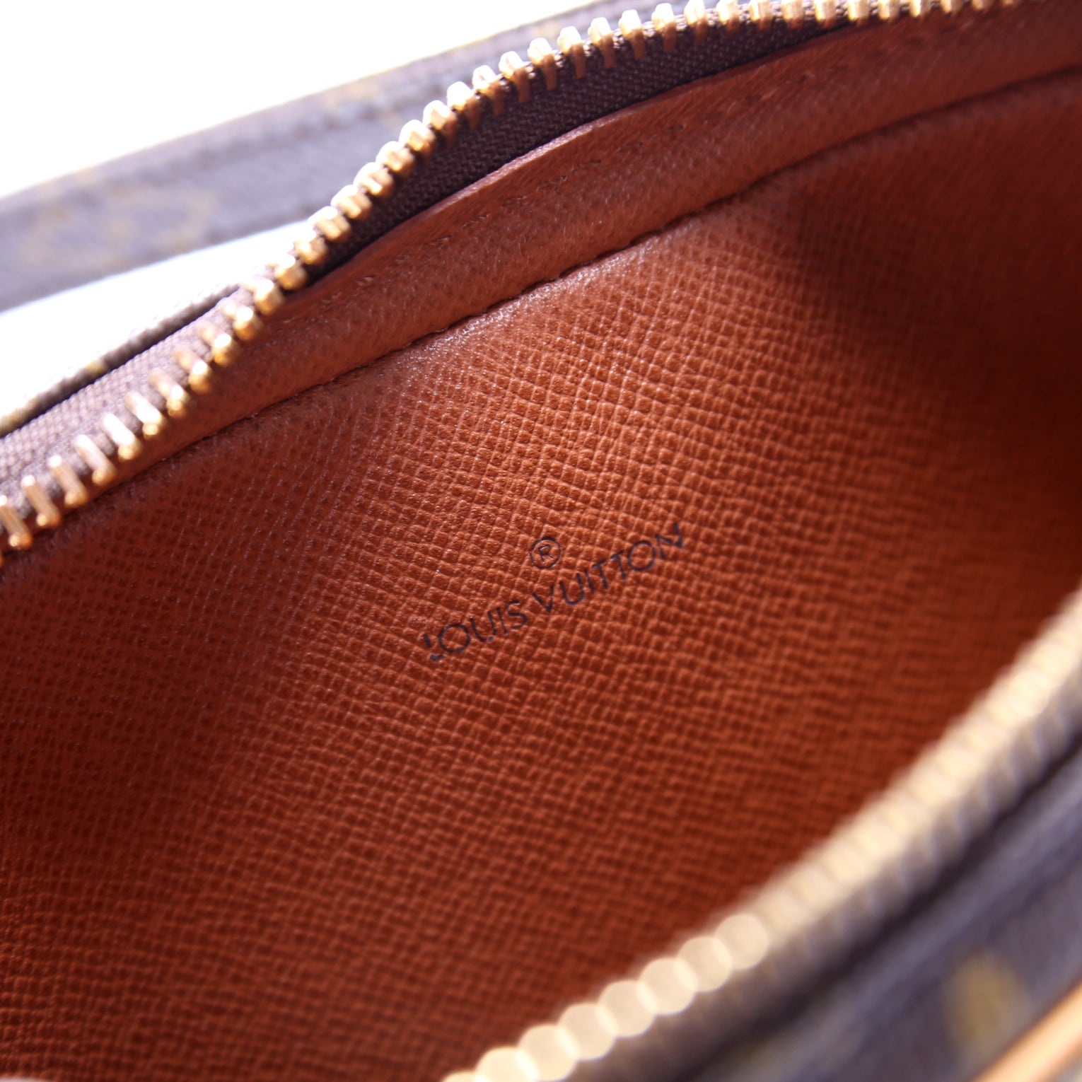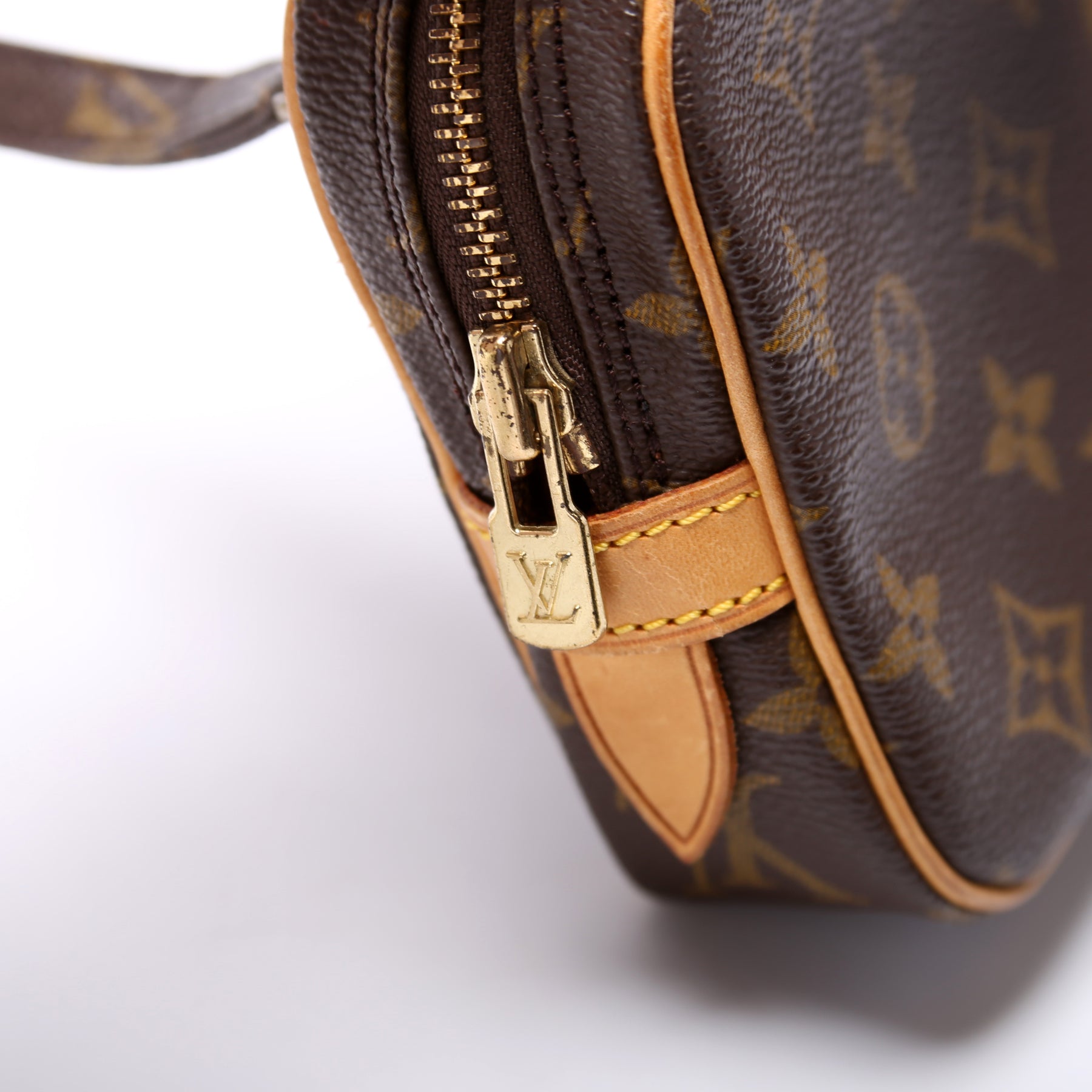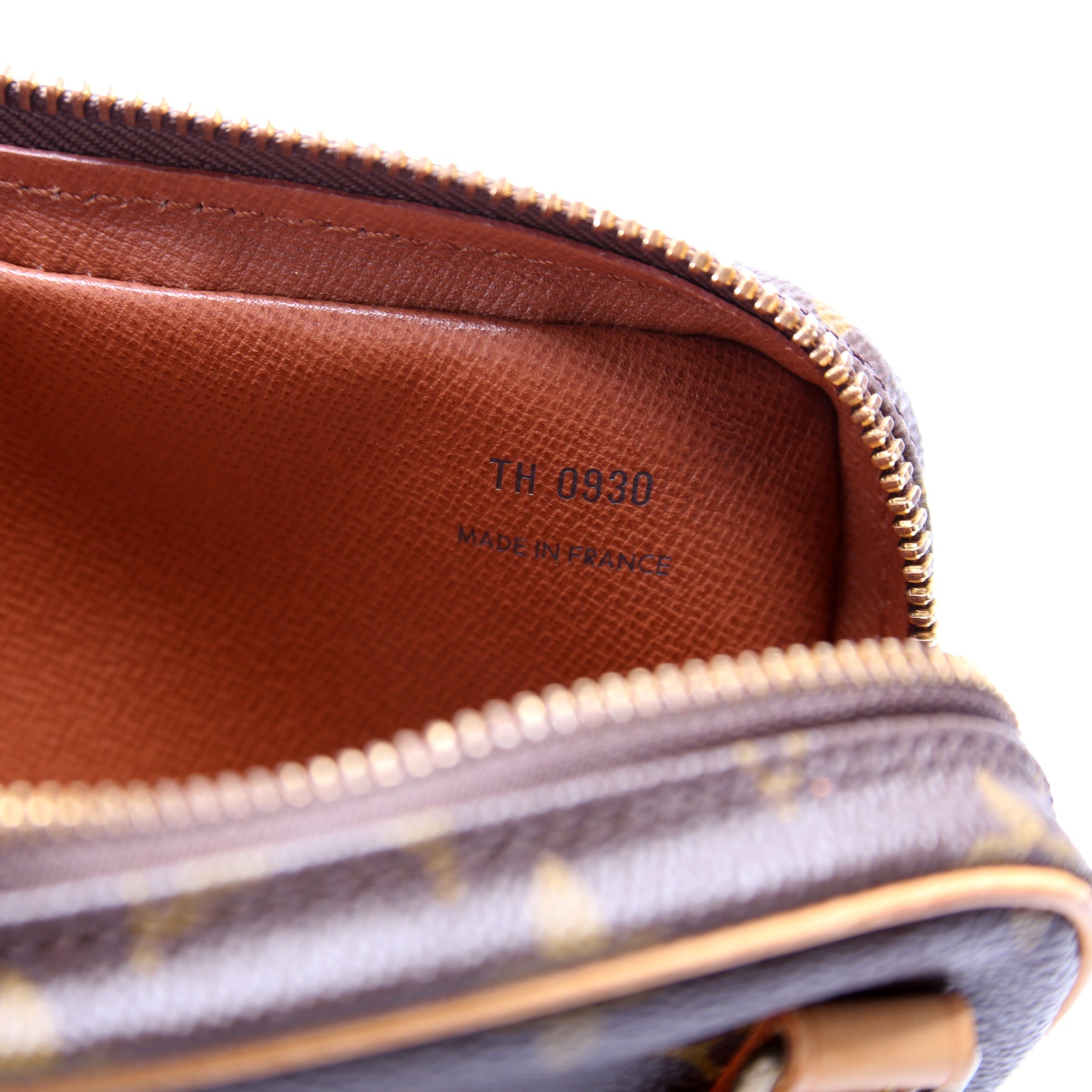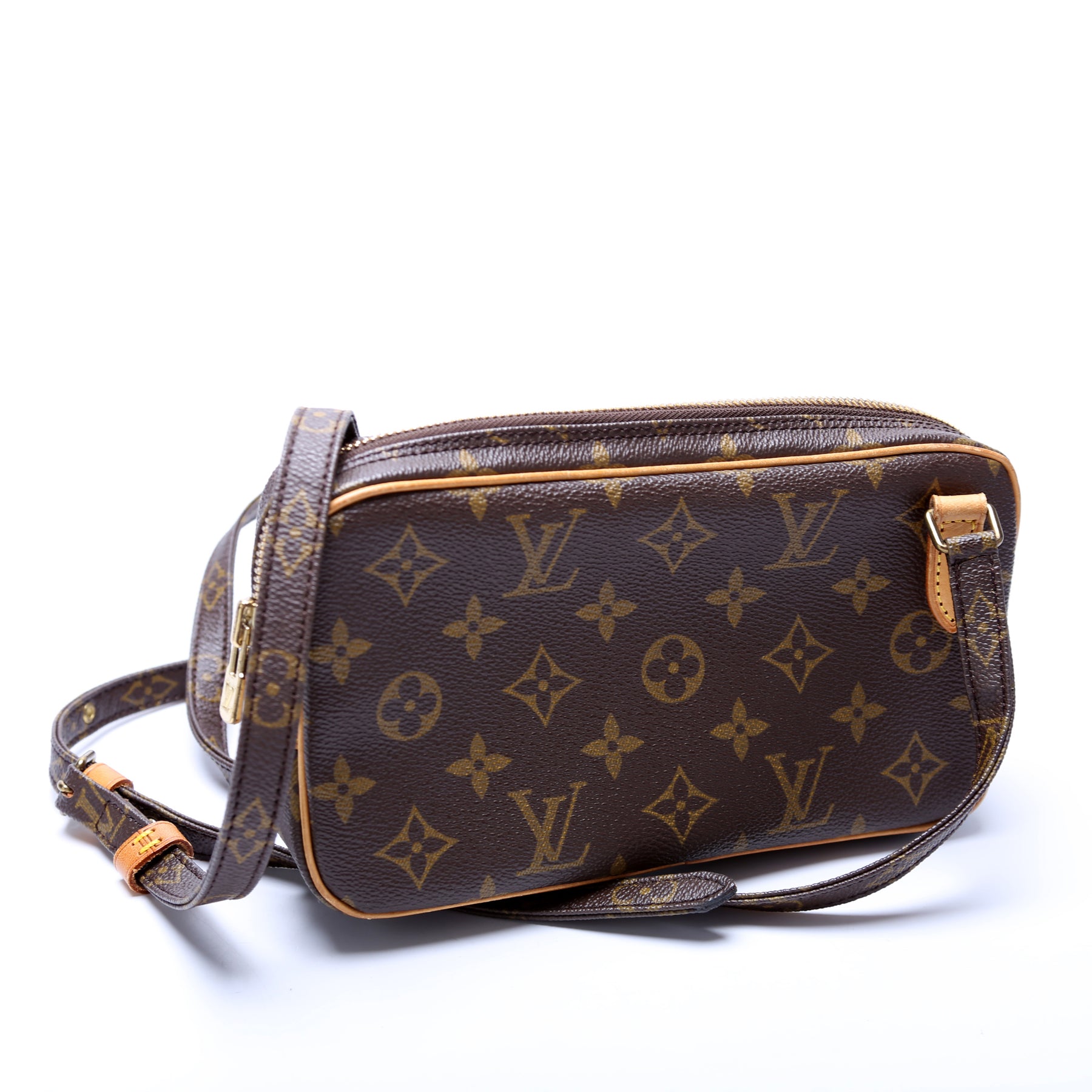 This pre-owned Louis Vuitton Pochette Marly is guaranteed 100% authentic. The exterior is in the classic Louis Vuitton Monogram coated canvas.