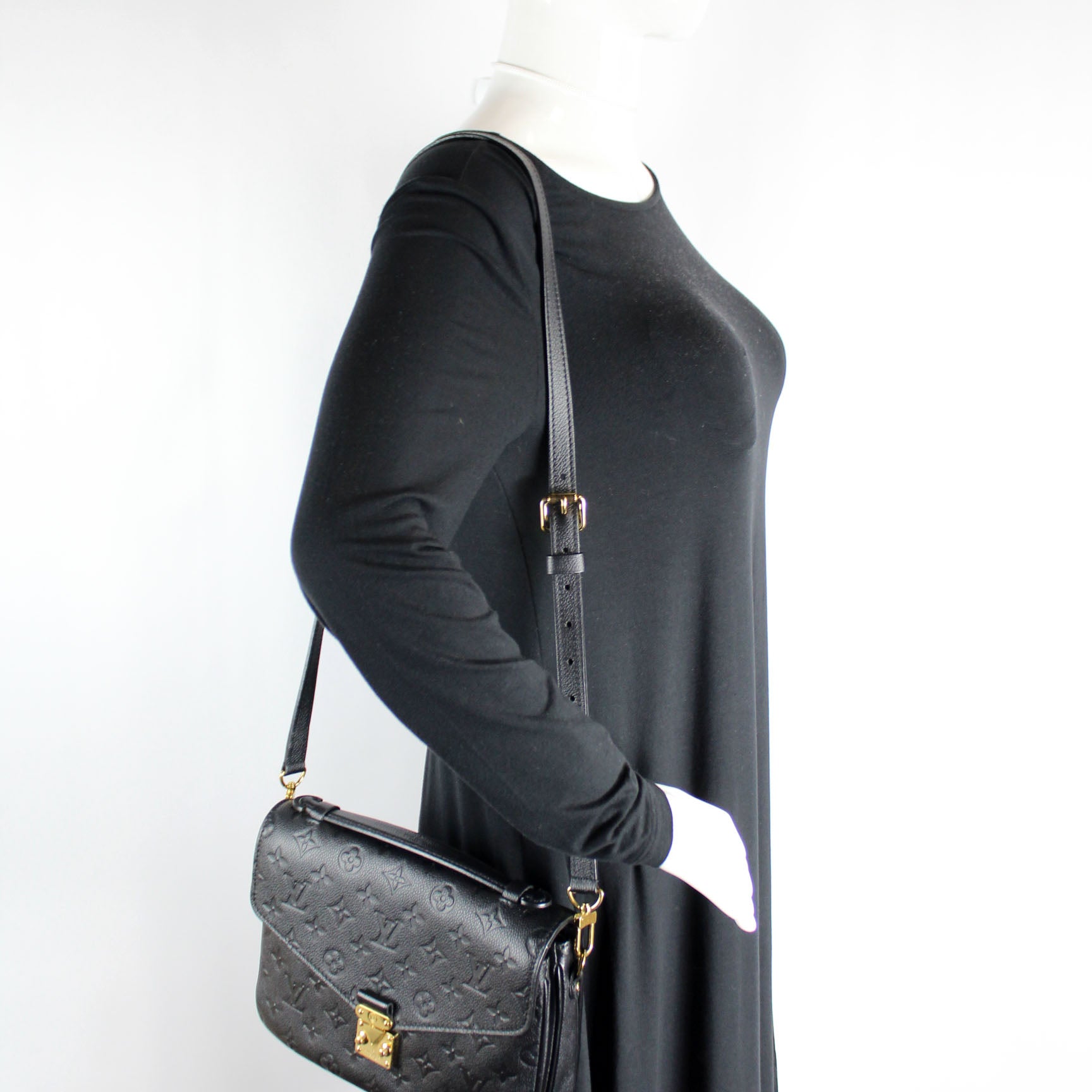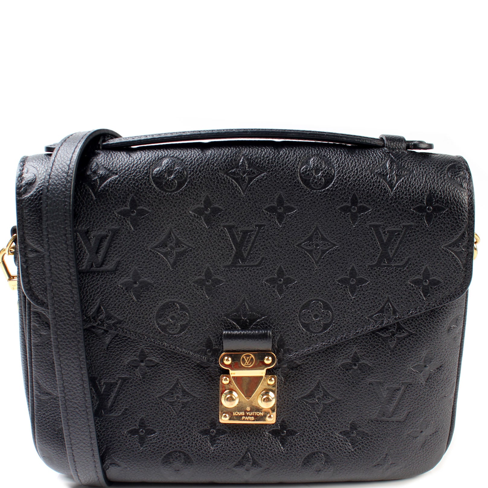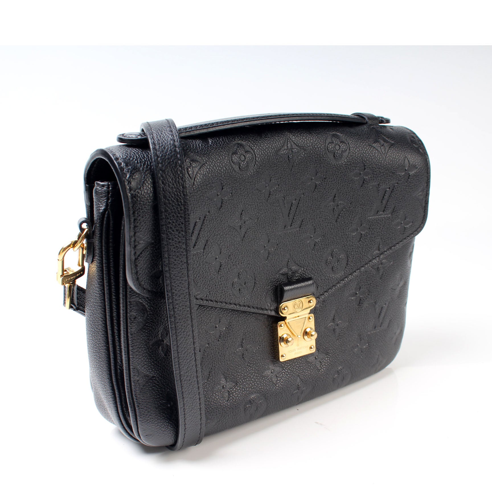 This pre-owned Louis Vuitton Pochette Metis is guaranteed 100% authentic. The exterior is in the classic Louis Vuitton Empreinte leather.